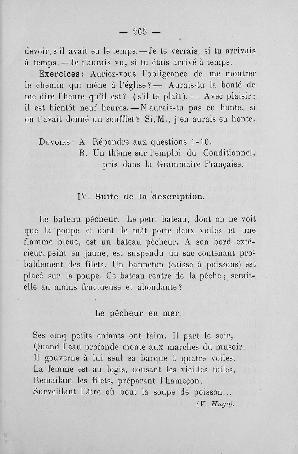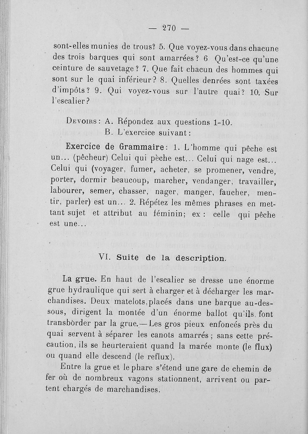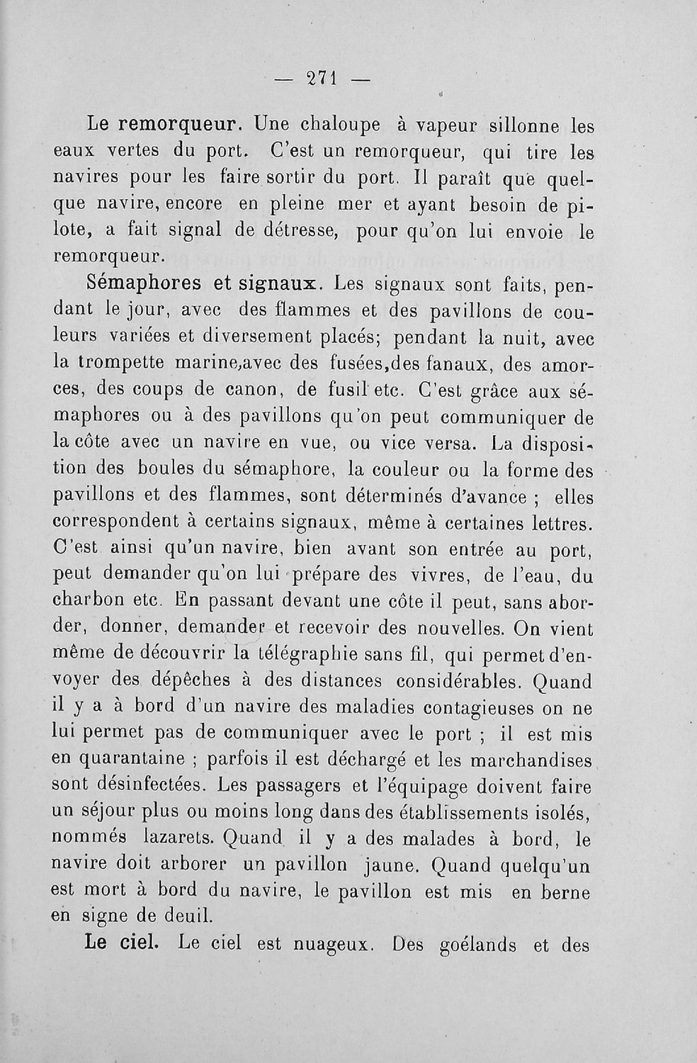 Σχολικό εγχειρίδιο Γαλλικών που περιλαμβάνει κείμενα, λεξιλόγιο και ασκήσεις. Ο συγγραφέας ήταν καθηγητής της Δημόσιας Εμπορικής Σχολής Αθηνών και του Αρσακείου.