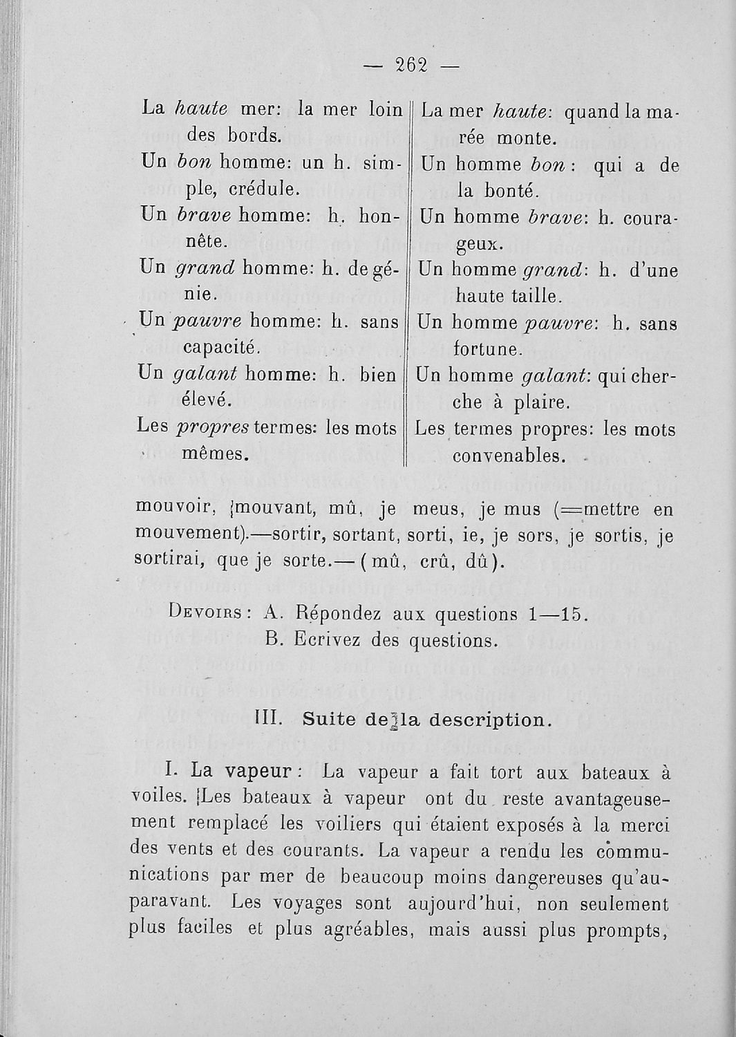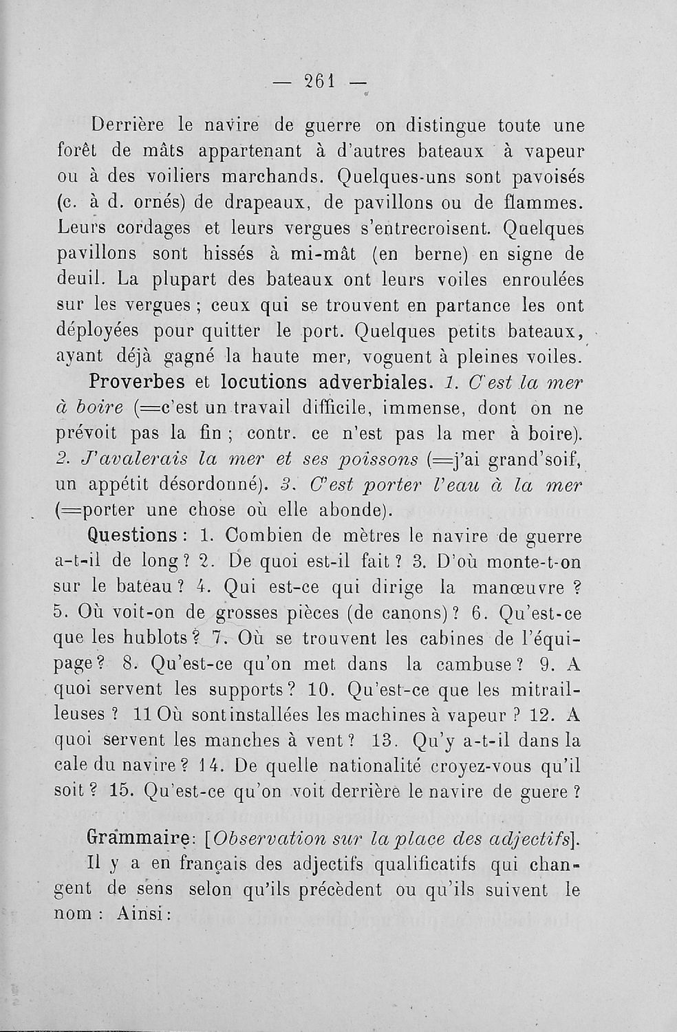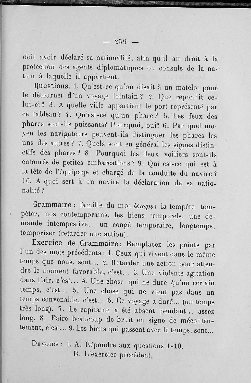Σχολικό εγχειρίδιο Γαλλικών που περιλαμβάνει κείμενα, λεξιλόγιο και ασκήσεις. Ο συγγραφέας ήταν καθηγητής της Δημόσιας Εμπορικής Σχολής Αθηνών και του Αρσακείου.