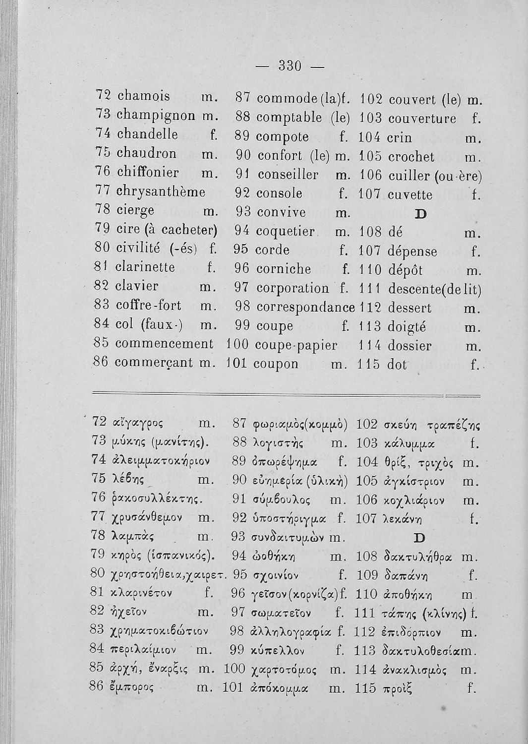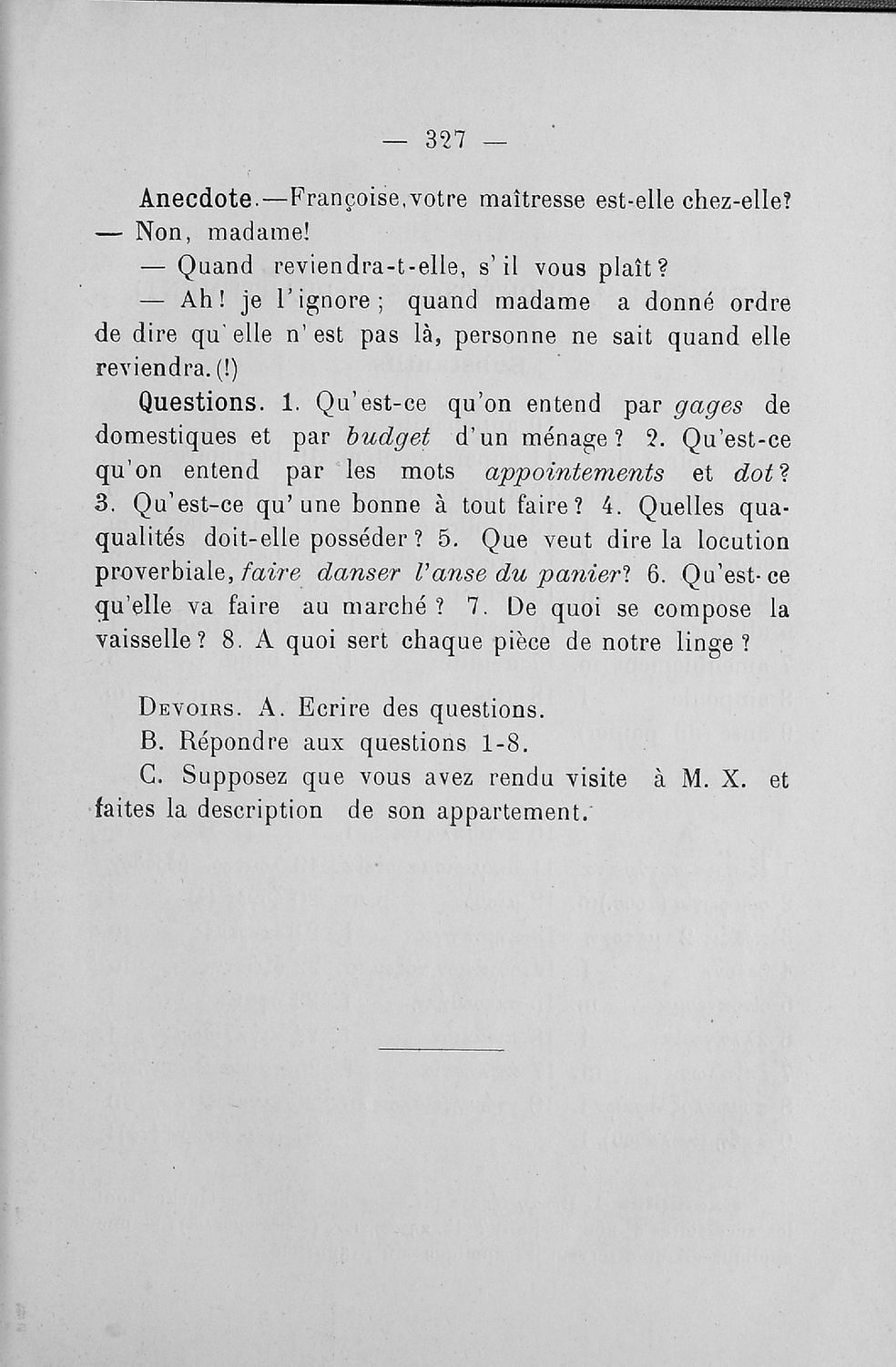 Σχολικό εγχειρίδιο Γαλλικών που περιλαμβάνει κείμενα, λεξιλόγιο και ασκήσεις. Ο συγγραφέας ήταν καθηγητής της Δημόσιας Εμπορικής Σχολής Αθηνών και του Αρσακείου.