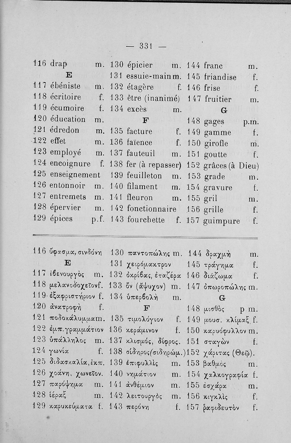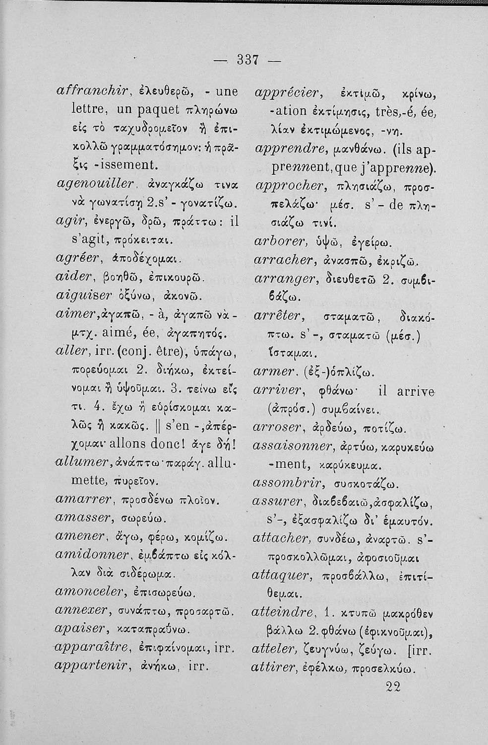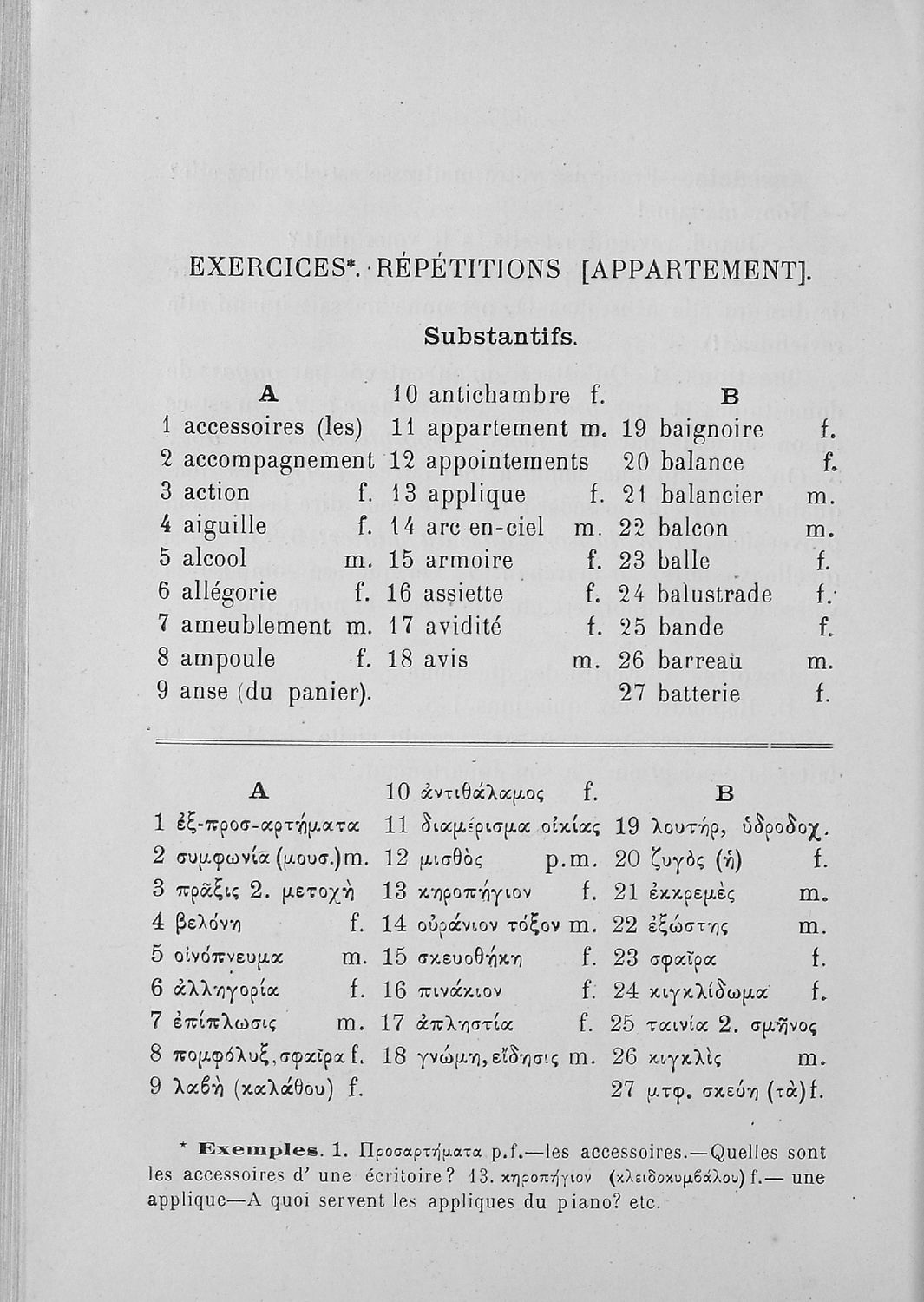 Γραμματική της Γαλλικής γλώσσας για τα Τετρατάξια Γυμνάσια, τη Γ΄ τάξη των Αστικών Σχολείων Θηλέων και τα Διδασκαλεία της Δημοτικής Εκπαίδευσης που περιλαμβάνει θεωρία, ασκήσεις και λεξιλόγιο.