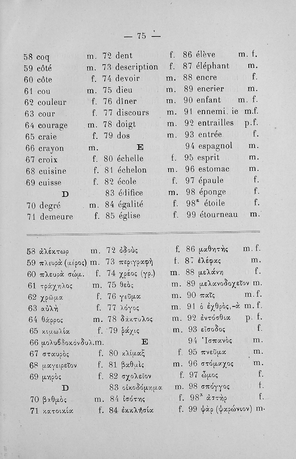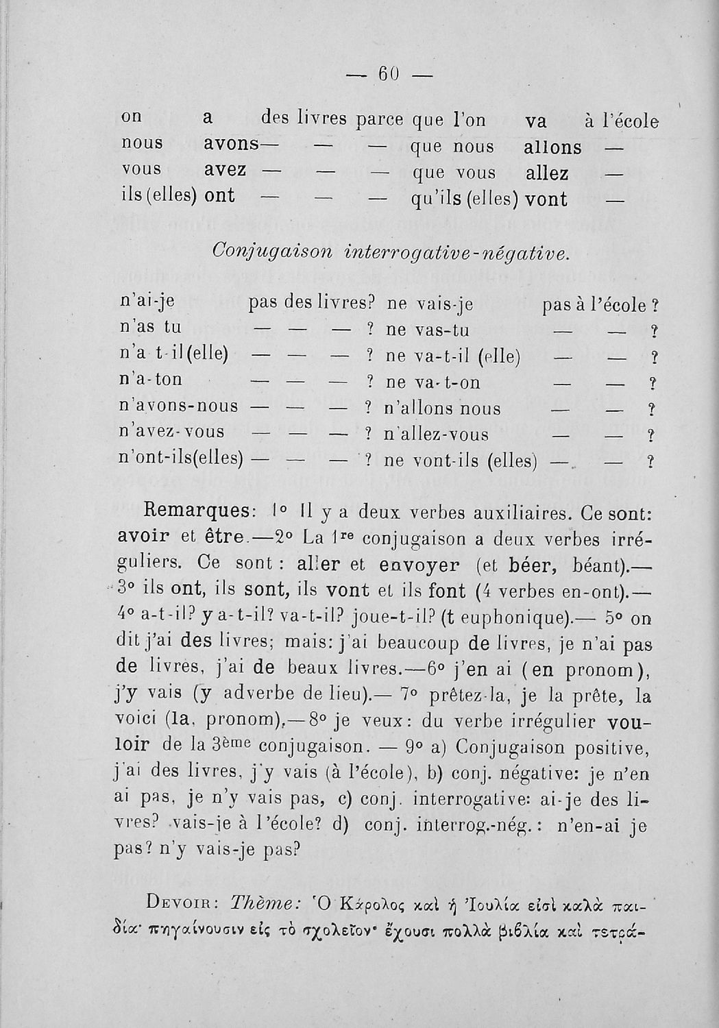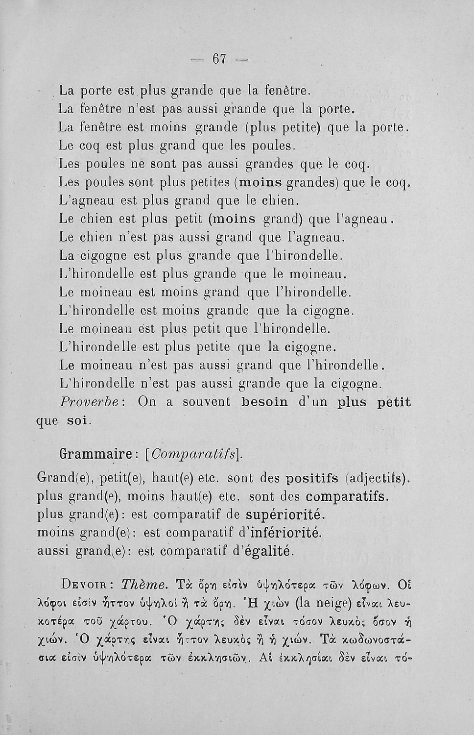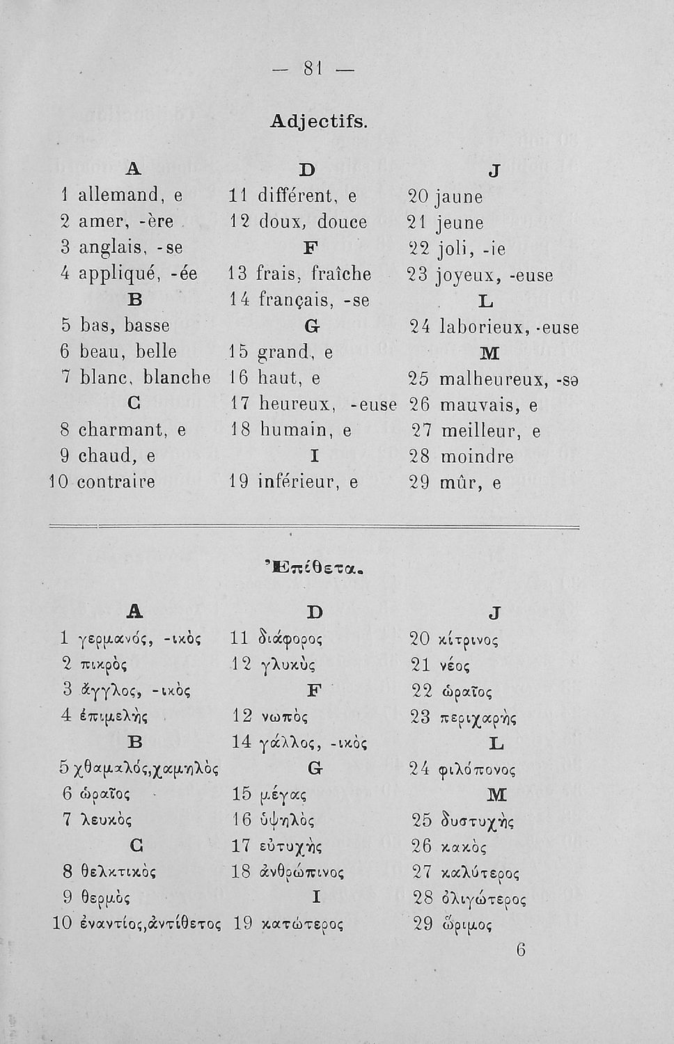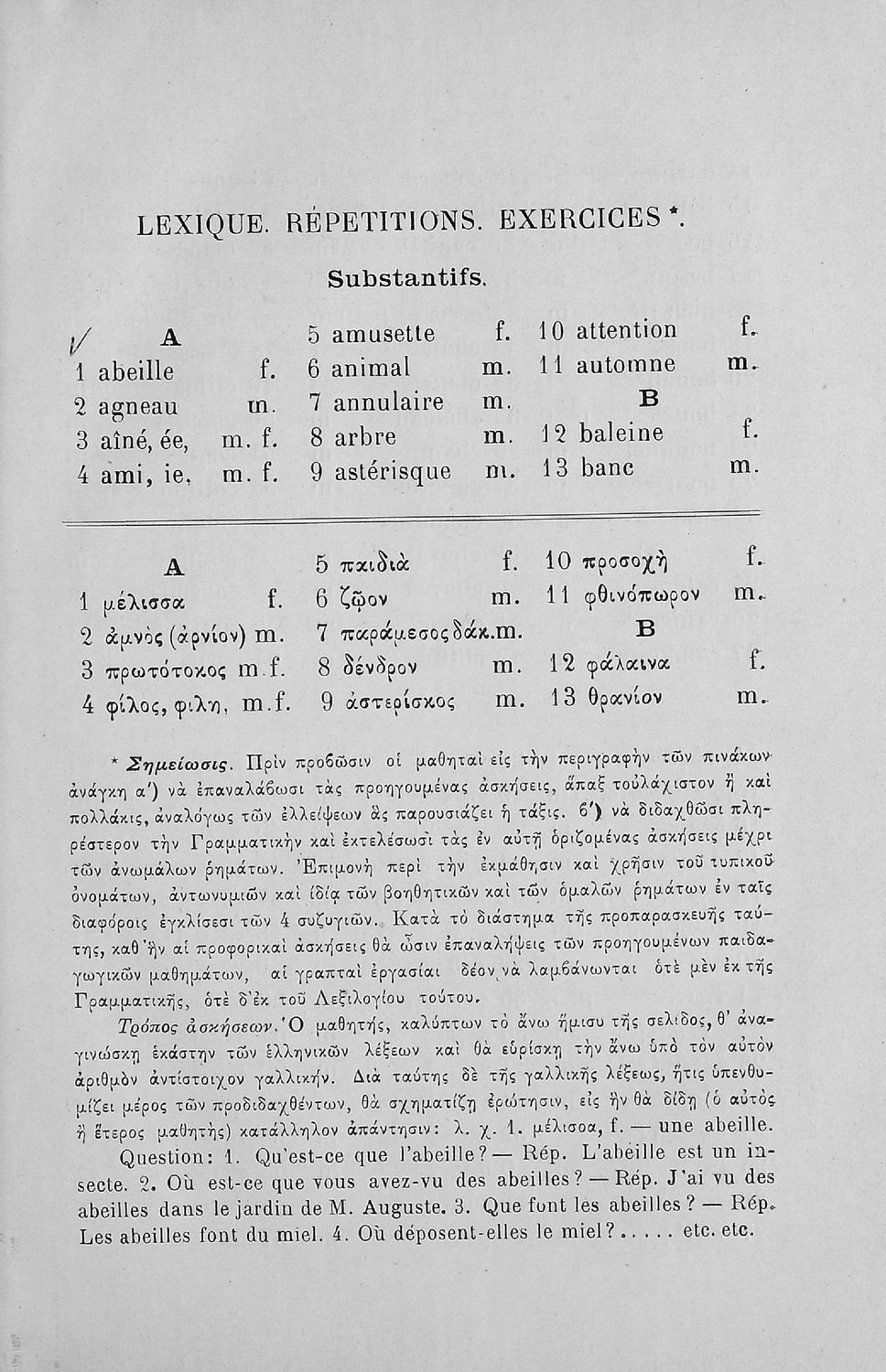 Γραμματική της Γαλλικής γλώσσας για τα Τετρατάξια Γυμνάσια, τη Γ΄ τάξη των Αστικών Σχολείων Θηλέων και τα Διδασκαλεία της Δημοτικής Εκπαίδευσης που περιλαμβάνει θεωρία, ασκήσεις και λεξιλόγιο.