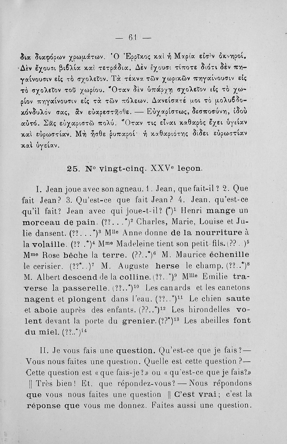Μέθοδος προς εποπτικήν και πρακτικήν διδασκαλίαν της γαλλικής γλώσσης δια τας κατωτέρας τάξεις των Γυμνασίων του Βαρβακείου Λυκείου και των εμπορικών σχολών επί τη βάσει των εικόνων του Ed. Holzel.