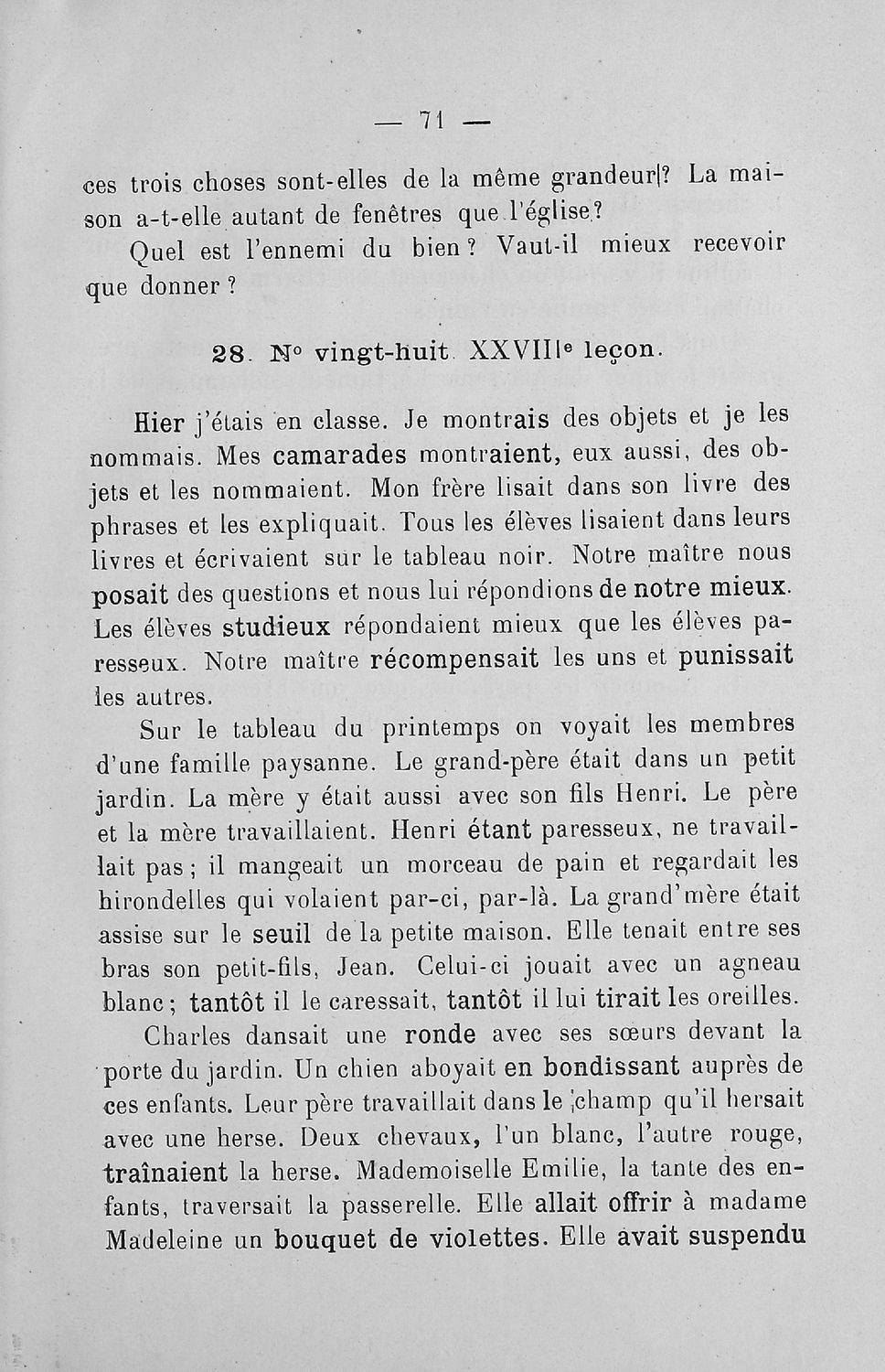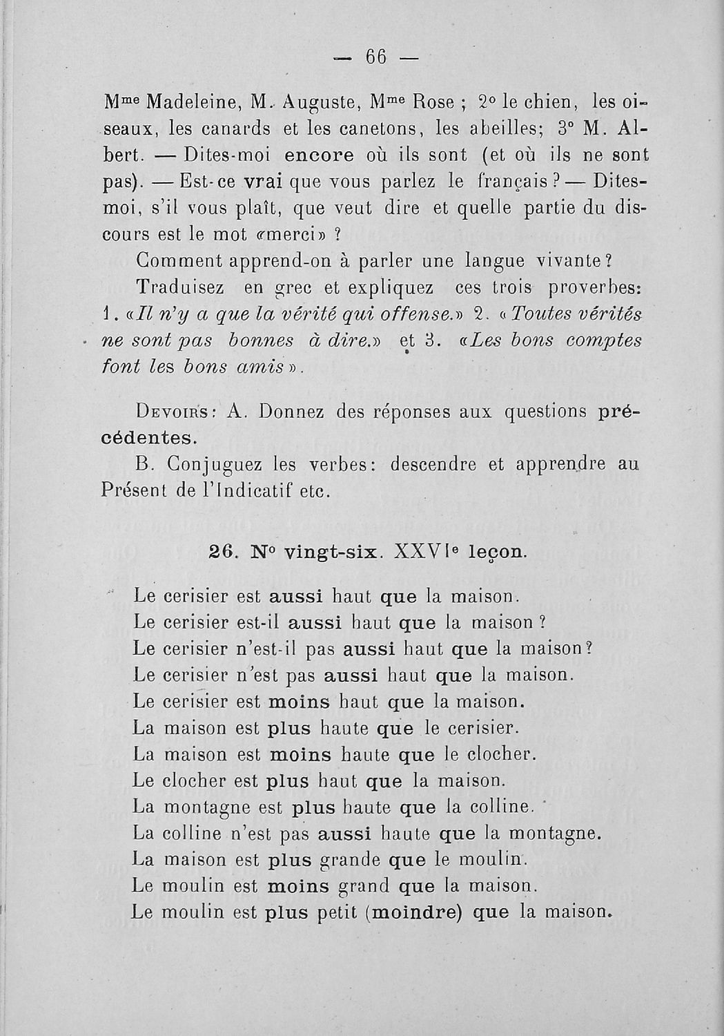Σχολικό εγχειρίδιο Γαλλικών που περιλαμβάνει κείμενα, λεξιλόγιο και ασκήσεις. Ο συγγραφέας ήταν καθηγητής της Δημόσιας Εμπορικής Σχολής Αθηνών και του Αρσακείου.