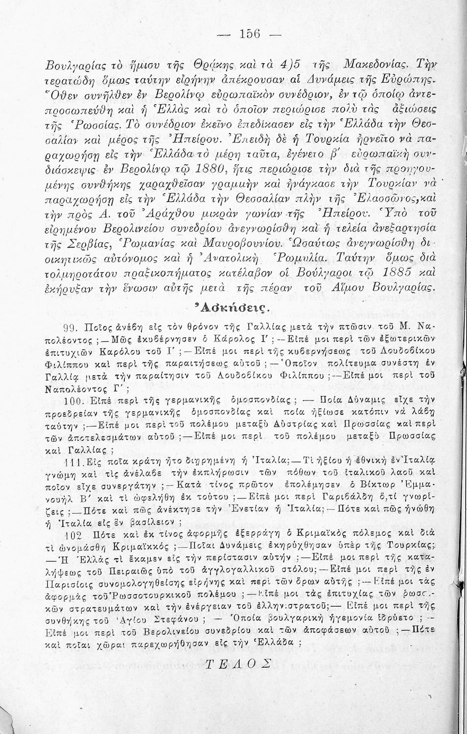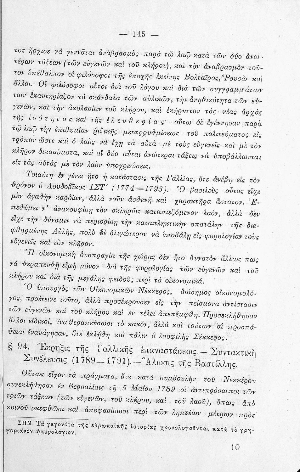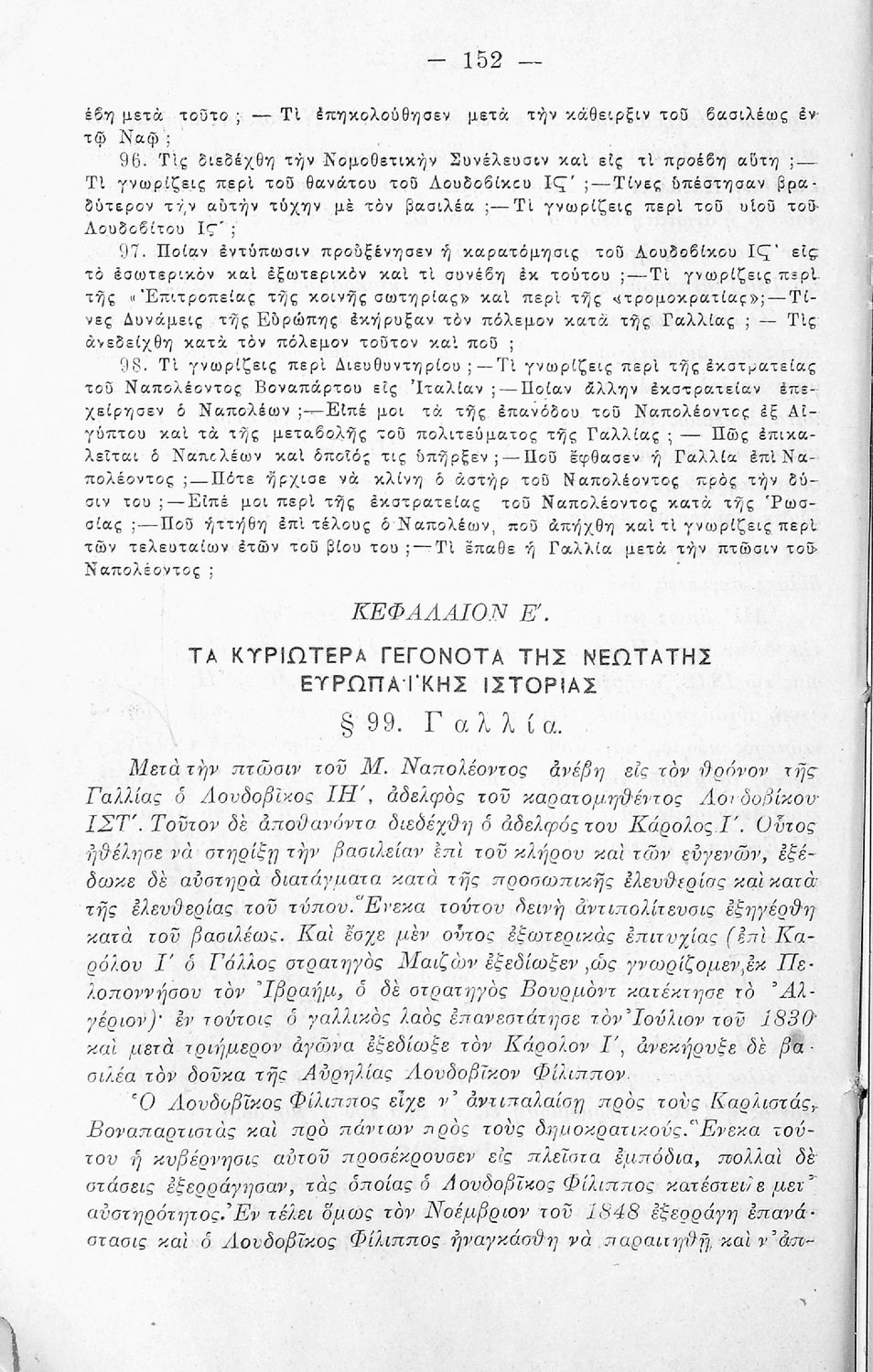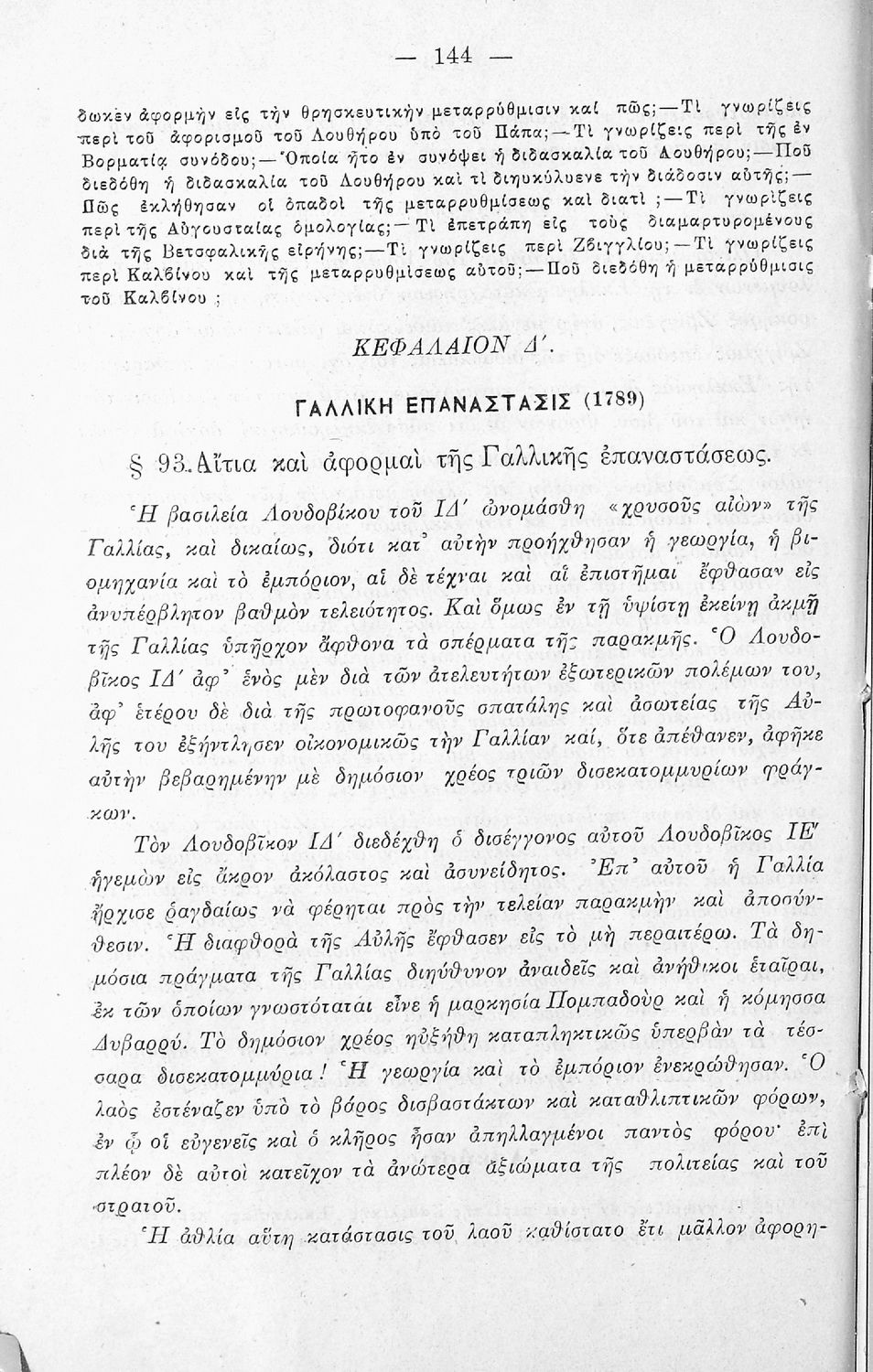 Βαθμίδα εκπαίδευσης: Δευτεροβάθμια Τάξη: Γ' Ελληνικού Σχολείου Μάθημα: Ιστορία Γλώσσα: Καθαρεύουσα Παρουσίαση περιεχομένου: Σχολικό εγχειρίδιο της Γ΄ Τάξης του Ελληνικού Σχολείου για το μάθημα της Ιστορίας. Καλύπτει τα ιστορικά γεγονότα από την άλωσης της Κωνσταντινούπολης από τους Φράγκους και μετά τους Τούρκους, τη διοίκηση των ελληνορθόδοξων κοινοτήτων υπό των Οθωμανών. |
