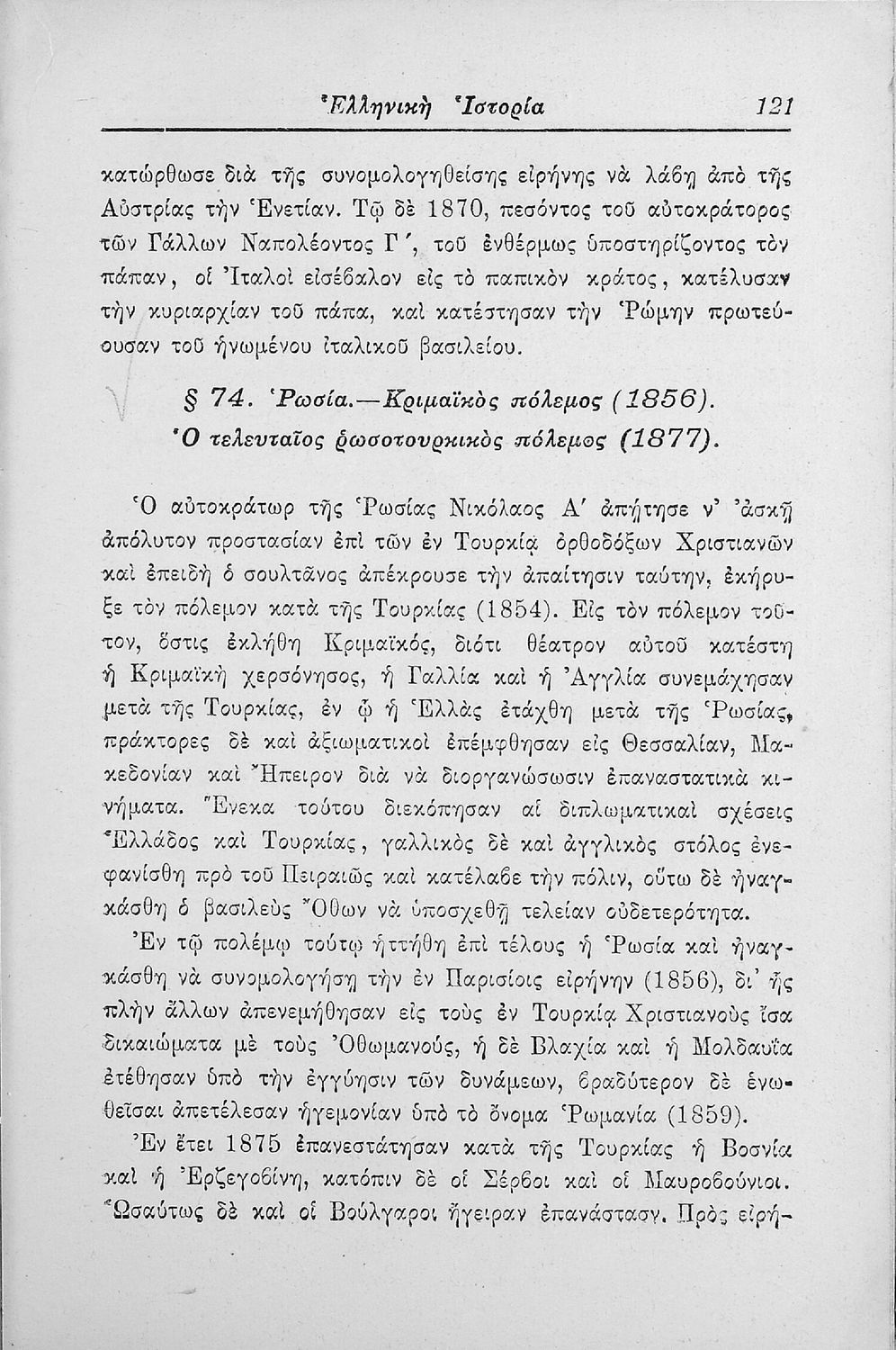 Ελληνική Ιστορία Από της αλώσεως της Κωνσταντινουπόλεως υπό των Φράγκων μέχρι των καθ΄ ημάς χρόνων δια την Γ΄ Τάξιν των Ελληνικών Σχολείων