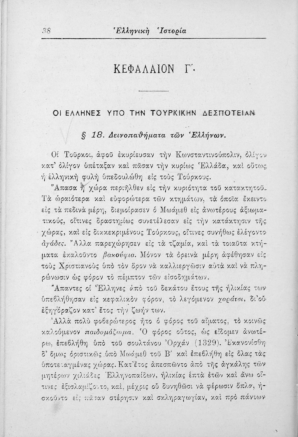 Ελληνική Ιστορία Από της αλώσεως της Κωνσταντινουπόλεως υπό των Φράγκων μέχρι των καθ΄ ημάς χρόνων δια την Γ΄ Τάξιν των Ελληνικών Σχολείων