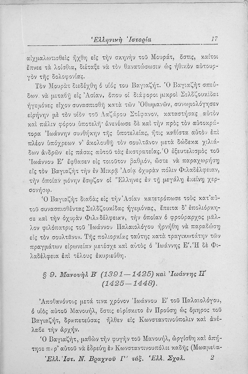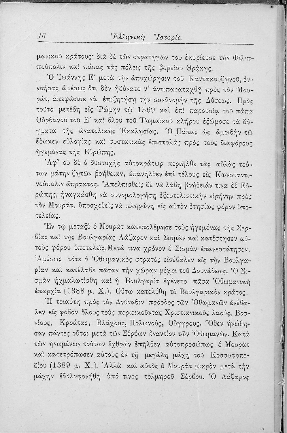 Ελληνική Ιστορία Από της αλώσεως της Κωνσταντινουπόλεως υπό των Φράγκων μέχρι των καθ΄ ημάς χρόνων δια την Γ΄ Τάξιν των Ελληνικών Σχολείων