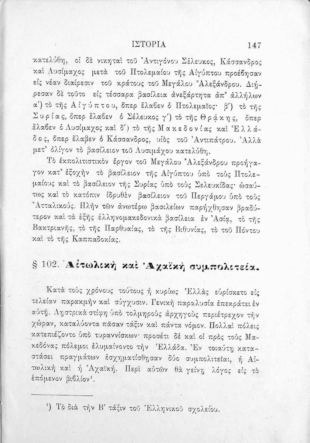 Τίτλος: Ελληνική ιστορία από των αρχαιοτάτων χρόνων μέχρι της Αχαϊκής Συμπολιτείας διά την Α΄ τάξιν των Ελληνικών Σχολείων