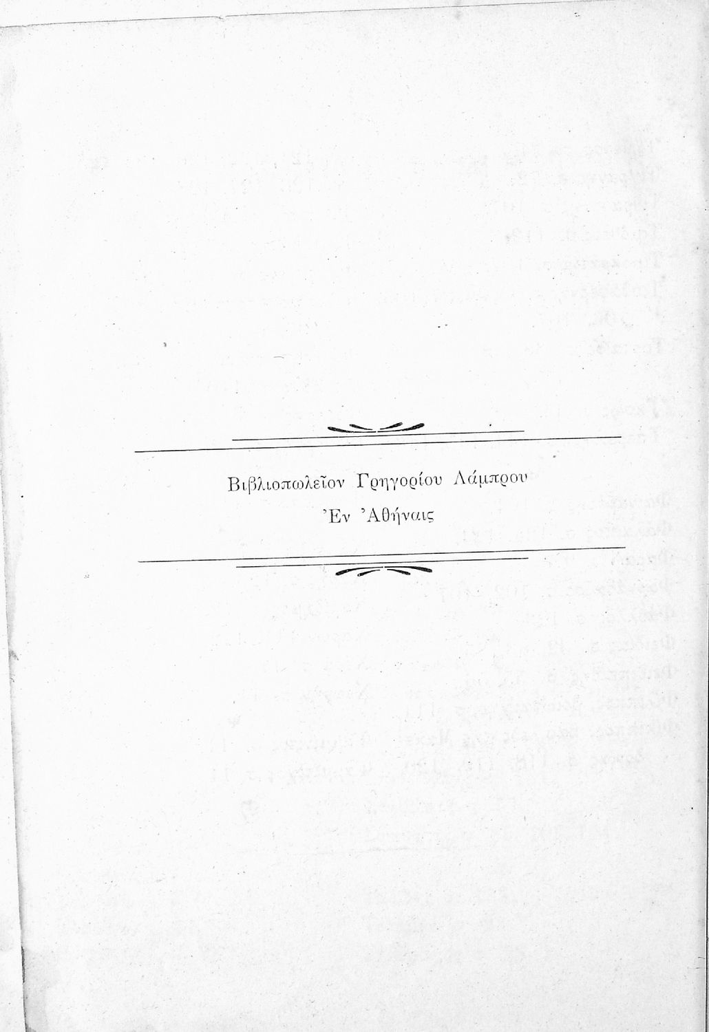 Εκδότης: Κατάστημα: Γρηγόρης Λάμπρου Έτος έκδοσης: 1910 Τόπος έκδοσης: Αθήνα |