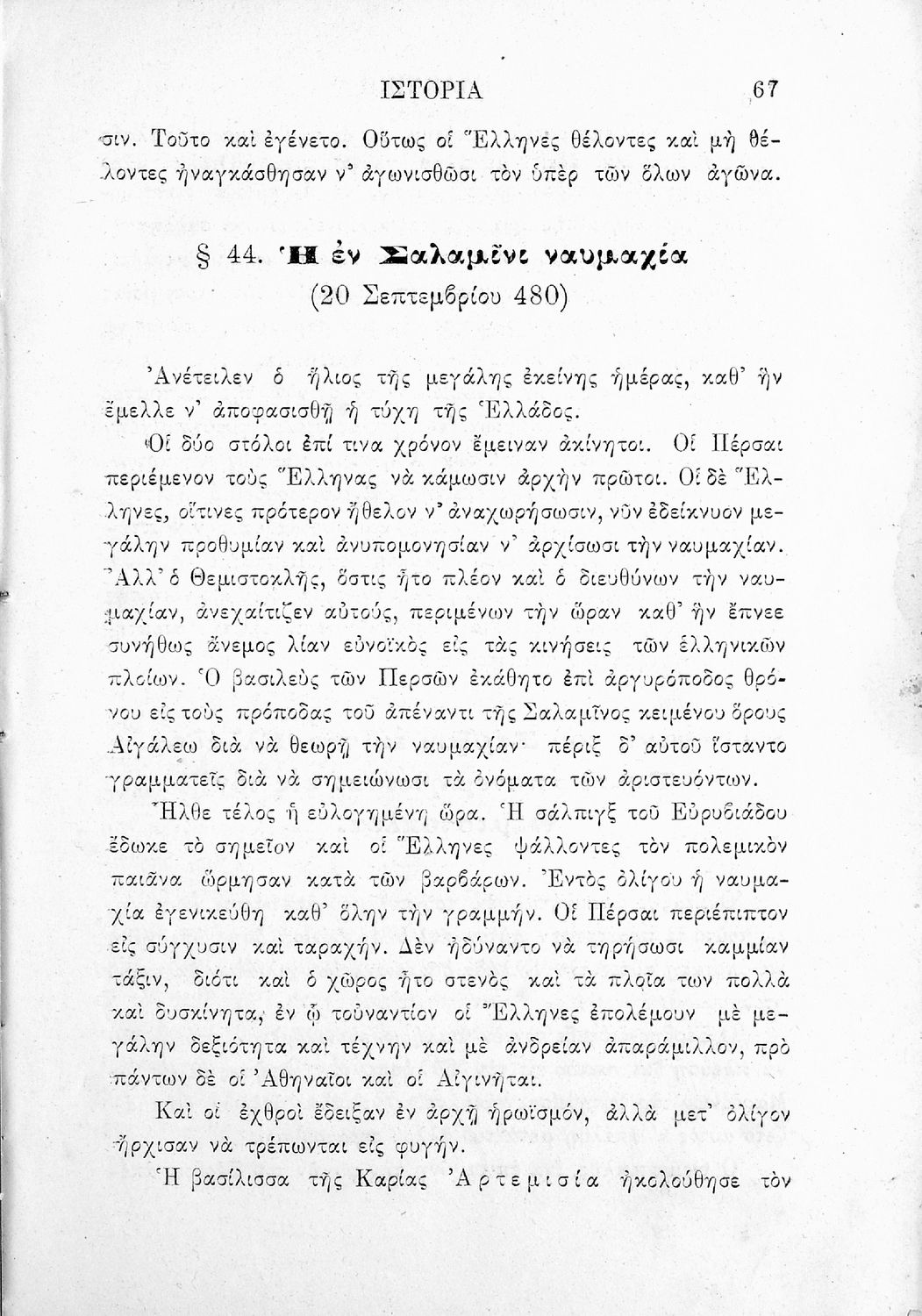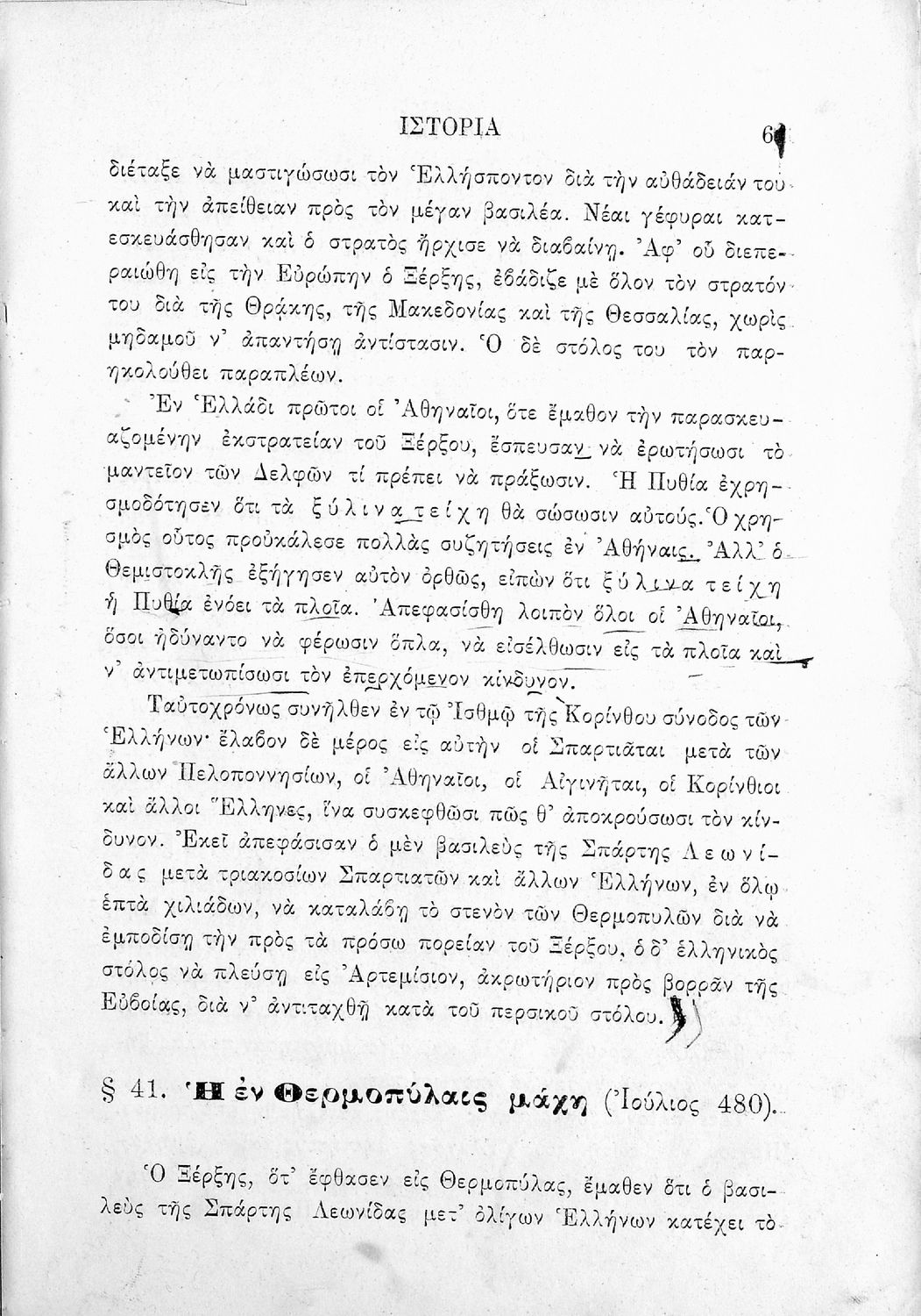 Σχολικό εγχειρίδιο Ιστορίας Α΄ Ελληνικού και Παρθεναγωγείου που καλύπτει την περίοδο από τους μυθικούς και ηρωικούς χρόνους μέχρι την μάχη της Μαντινείας και τον θάνατο του Επαμεινώνδα.