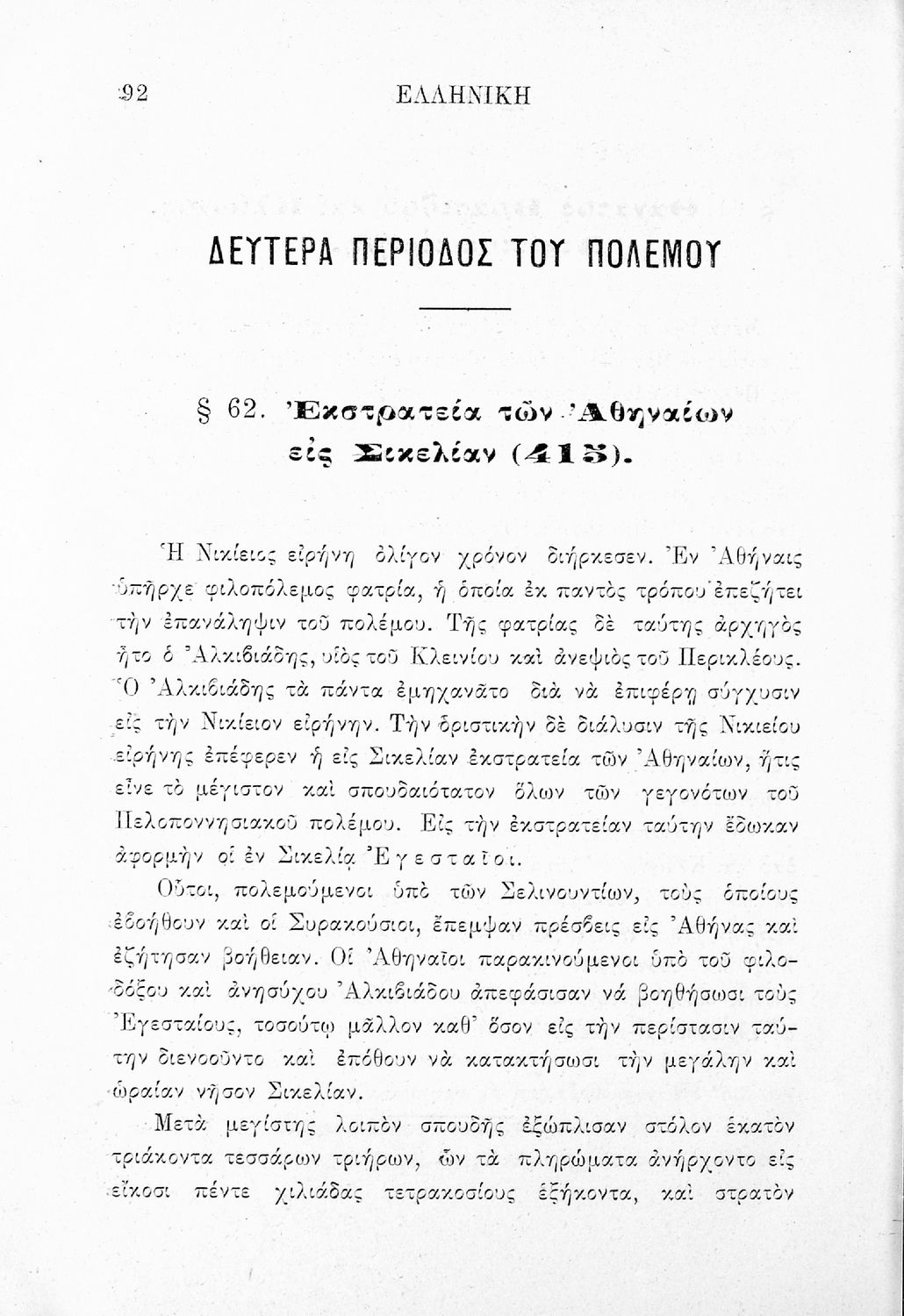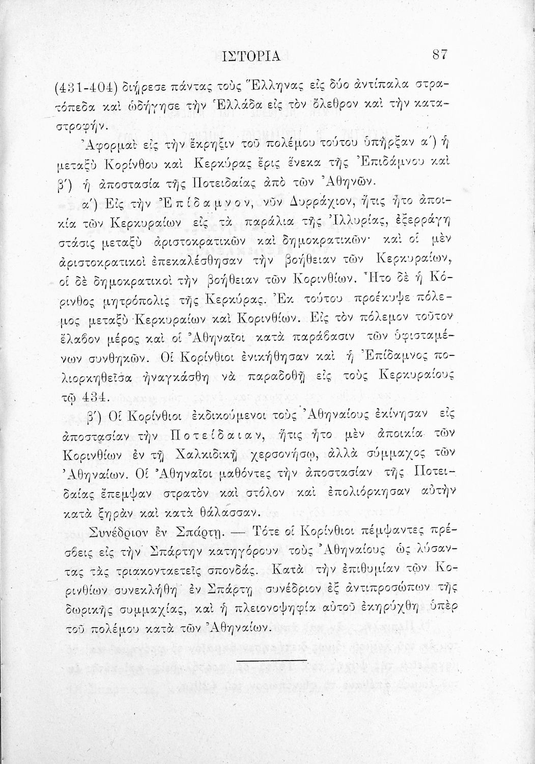 Σχολικό εγχειρίδιο Ιστορίας Α΄ Ελληνικού και Παρθεναγωγείου που καλύπτει την περίοδο από τους μυθικούς και ηρωικούς χρόνους μέχρι την μάχη της Μαντινείας και τον θάνατο του Επαμεινώνδα.