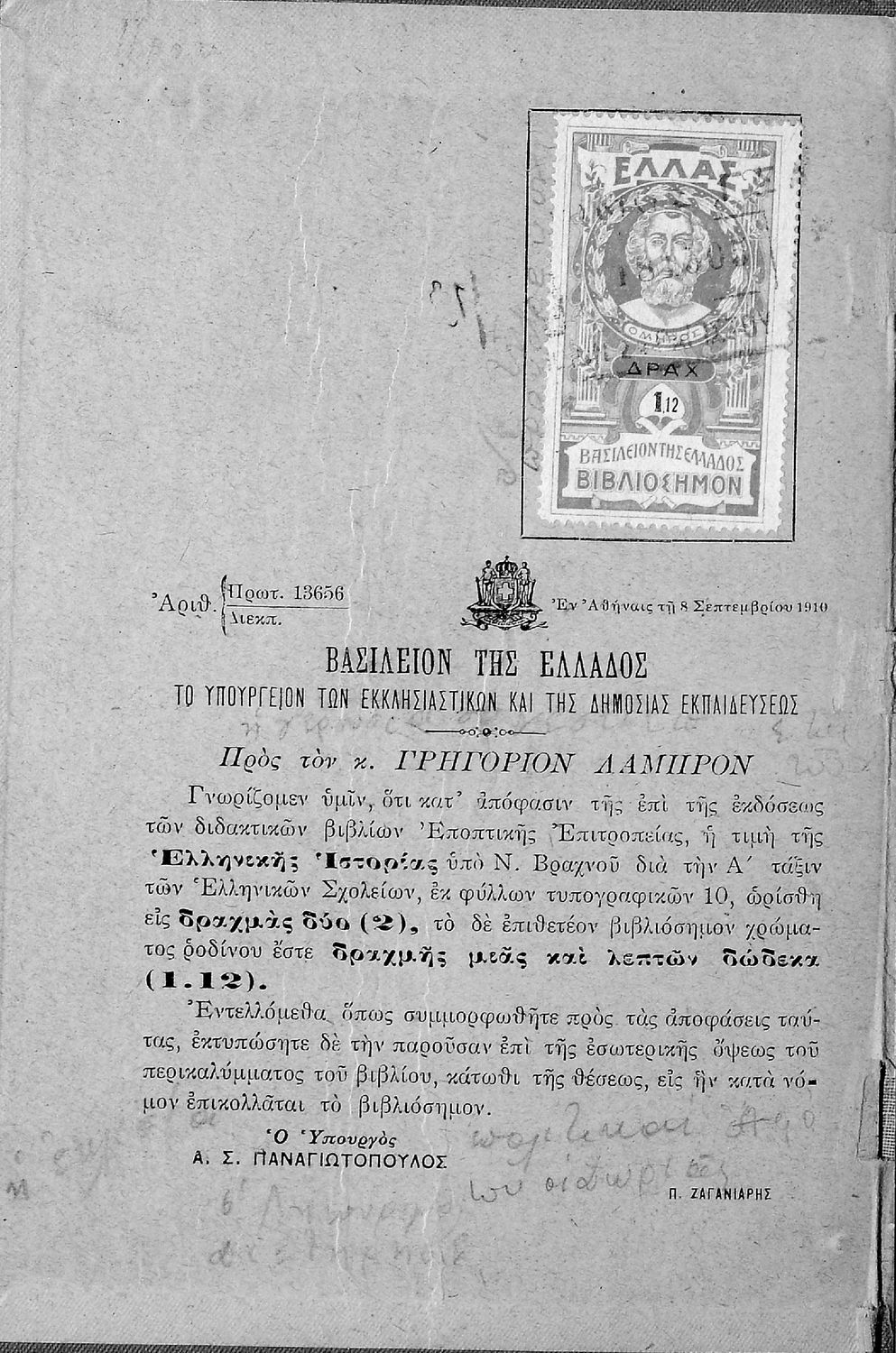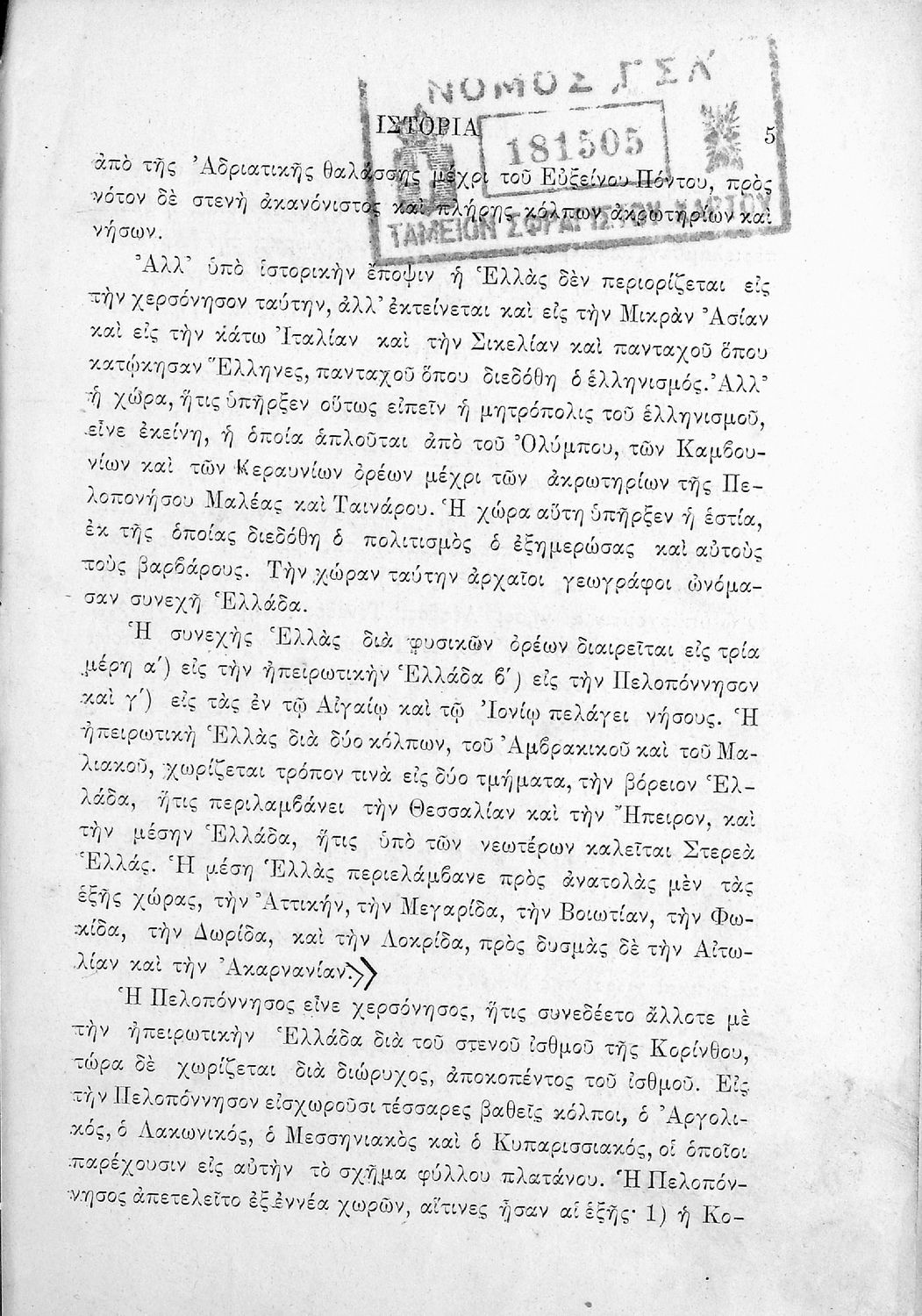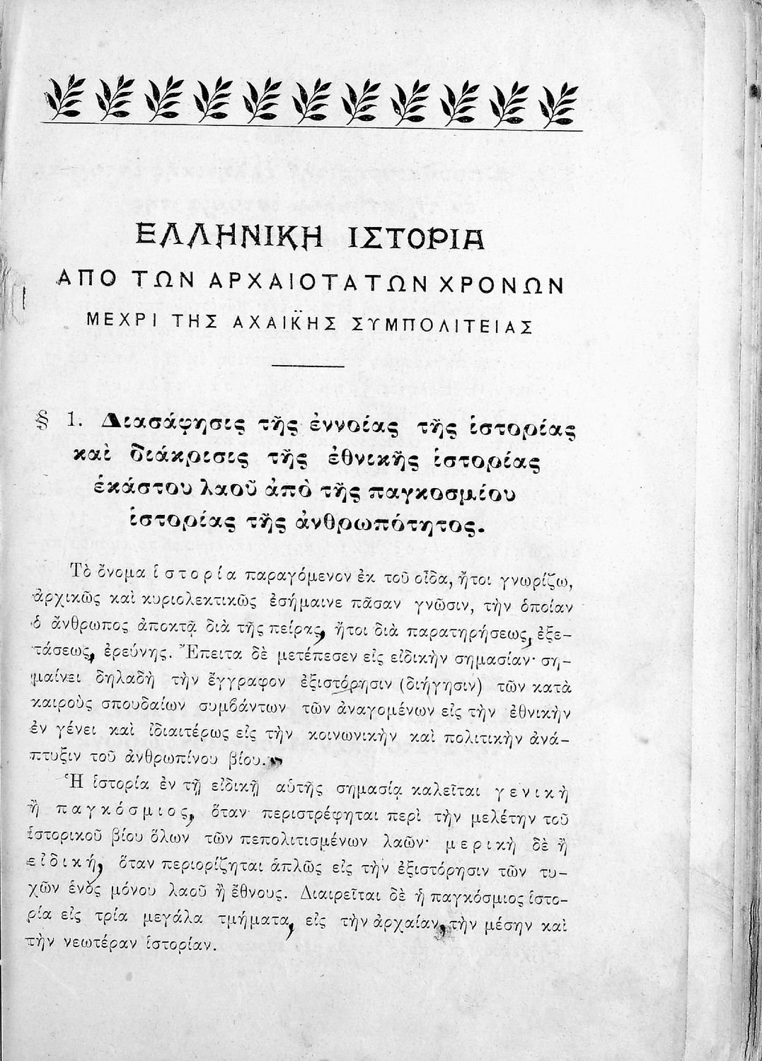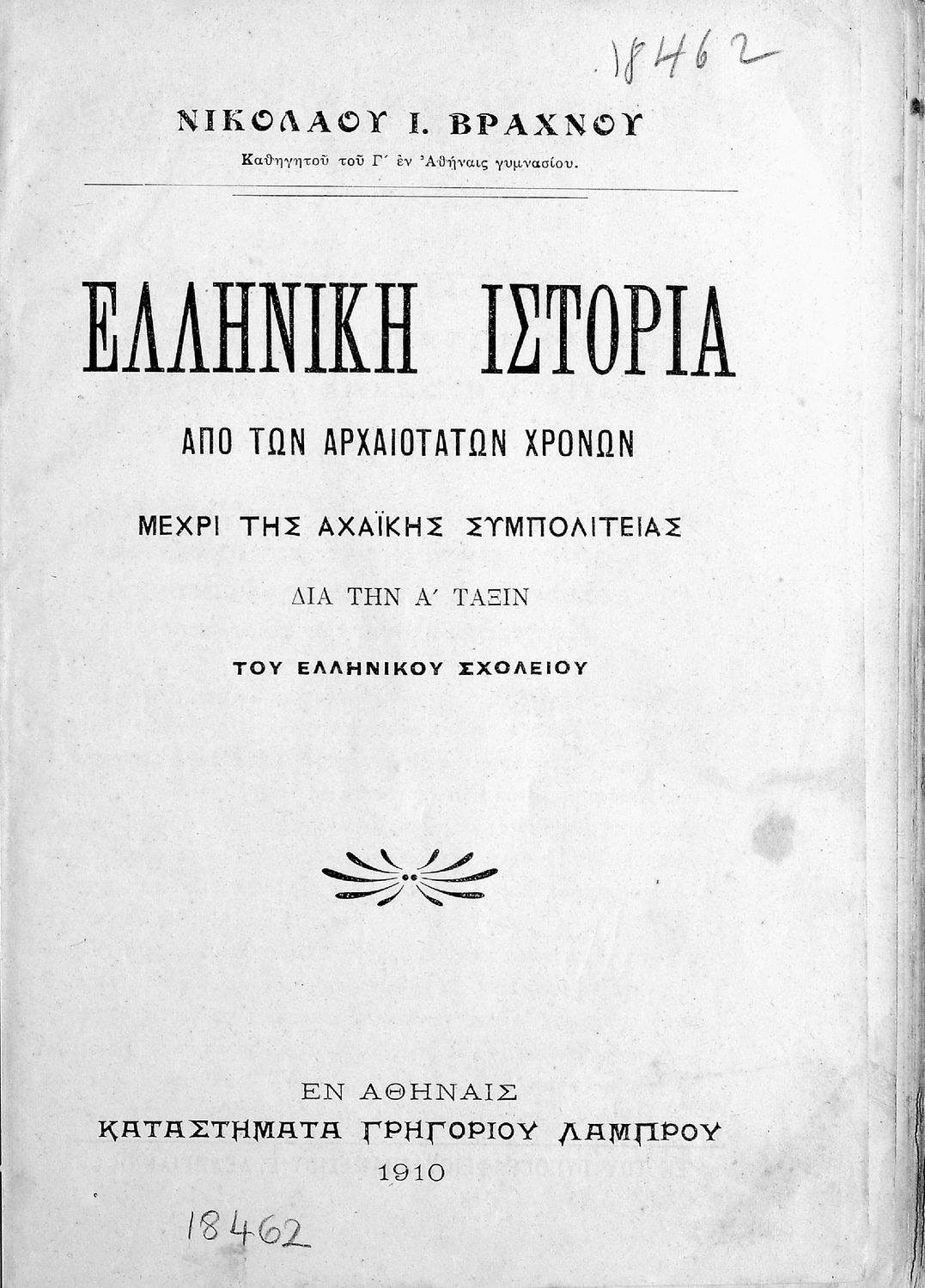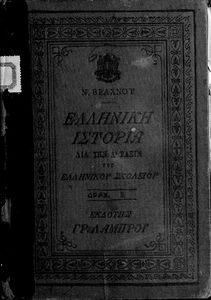 Τίτλος: Ελληνική ιστορία από των αρχαιοτάτων χρόνων μέχρι της Αχαϊκής Συμπολιτείας διά την Α΄ τάξιν των Ελληνικών Σχολείων
