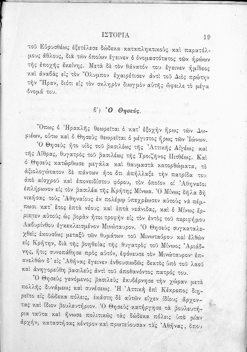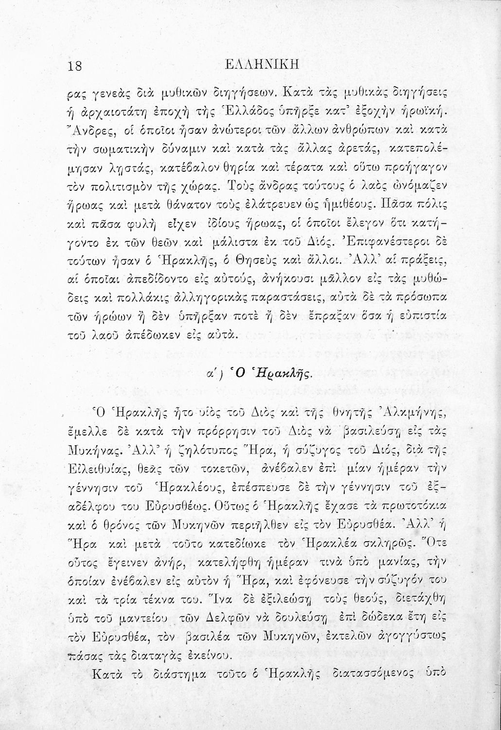 Σχολικό εγχειρίδιο Ιστορίας Α΄ Ελληνικού και Παρθεναγωγείου που καλύπτει την περίοδο από τους μυθικούς και ηρωικούς χρόνους μέχρι την μάχη της Μαντινείας και τον θάνατο του Επαμεινώνδα.