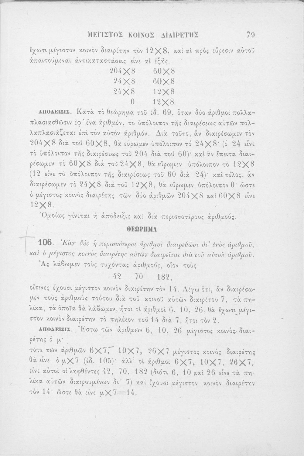Σχολικό εγχειρίδιο Αριθμητικής Γυμνασίου που είναι χωρισμένο σε θεωρήματα και ασκήσεις και εστιάζει στις αριθμητικές πράξεις και τις ιδιότητές τους.