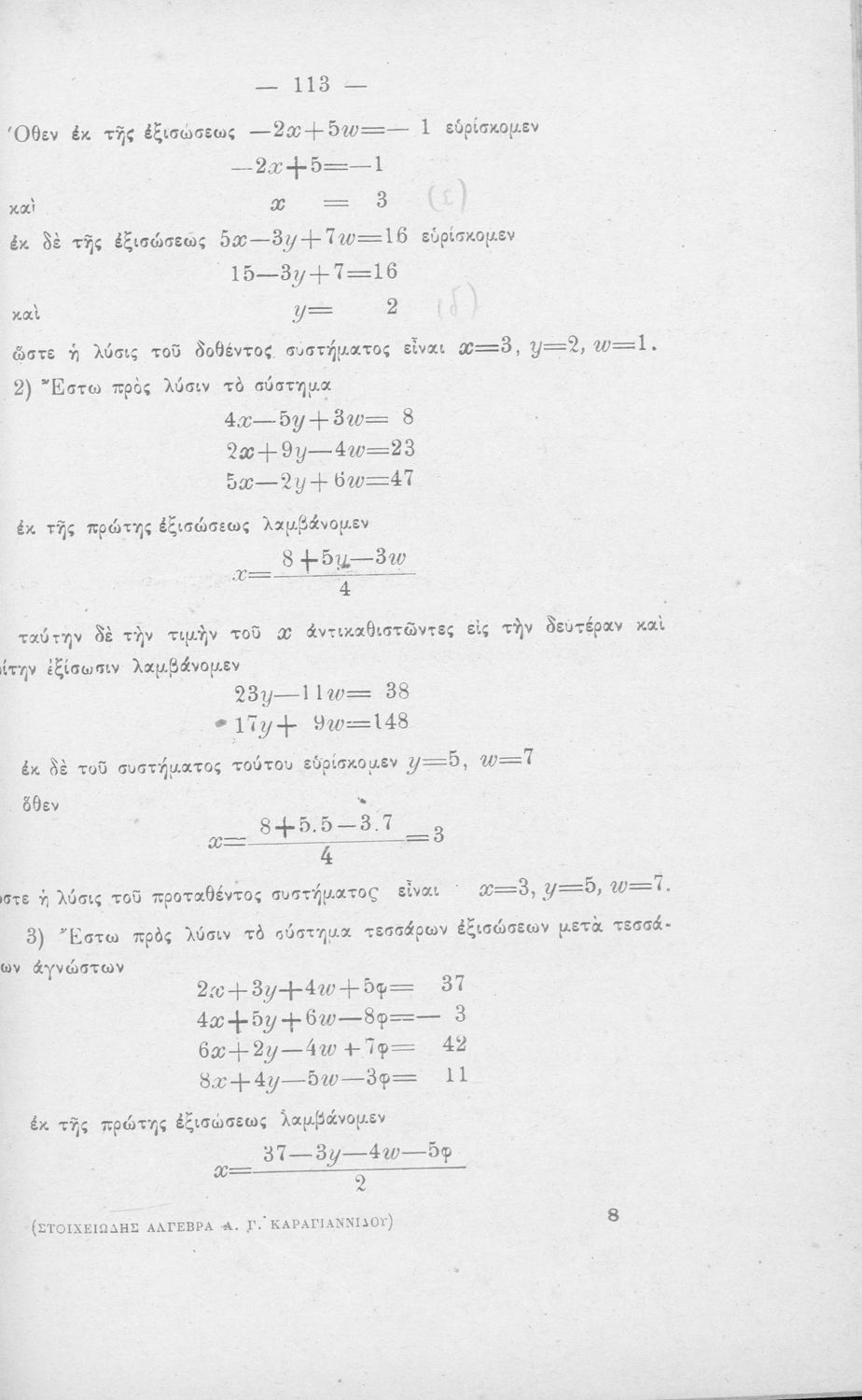 Σχολικό εγχειρίδιο Άλγεβρας Γυμνασίου που περιέχει θεωρία και ασκήσεις. Ο συγγραφέας ήταν υφηγητής στο Εθνικό Πανεπιστήμιο.
