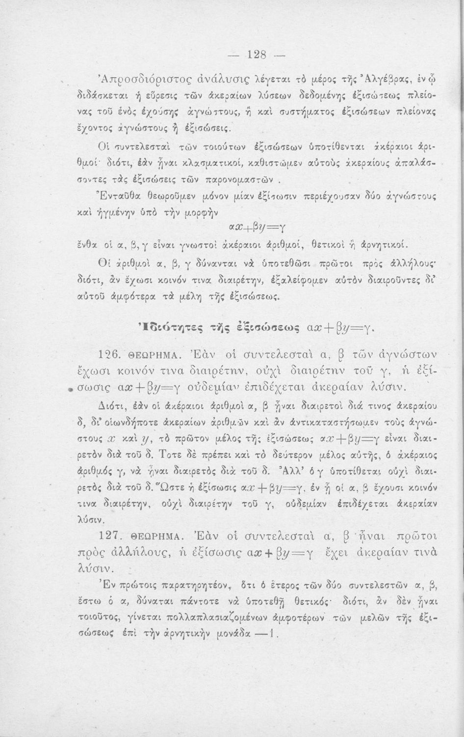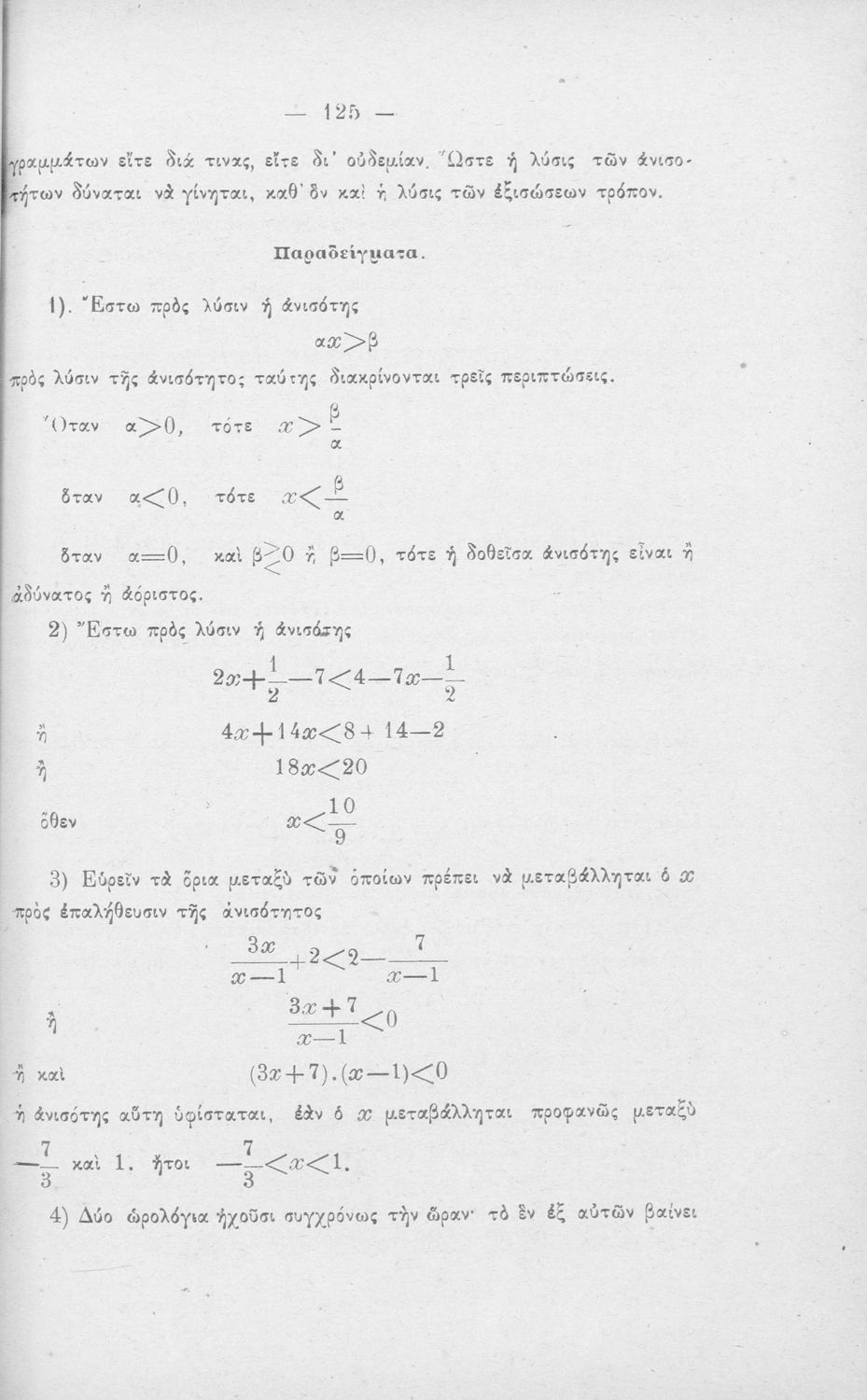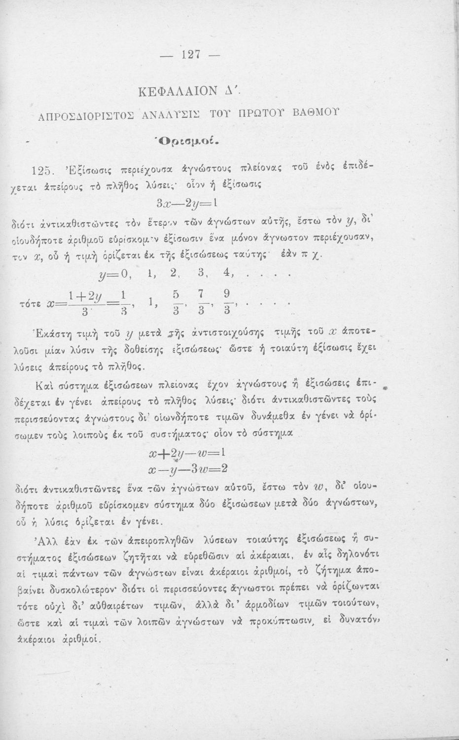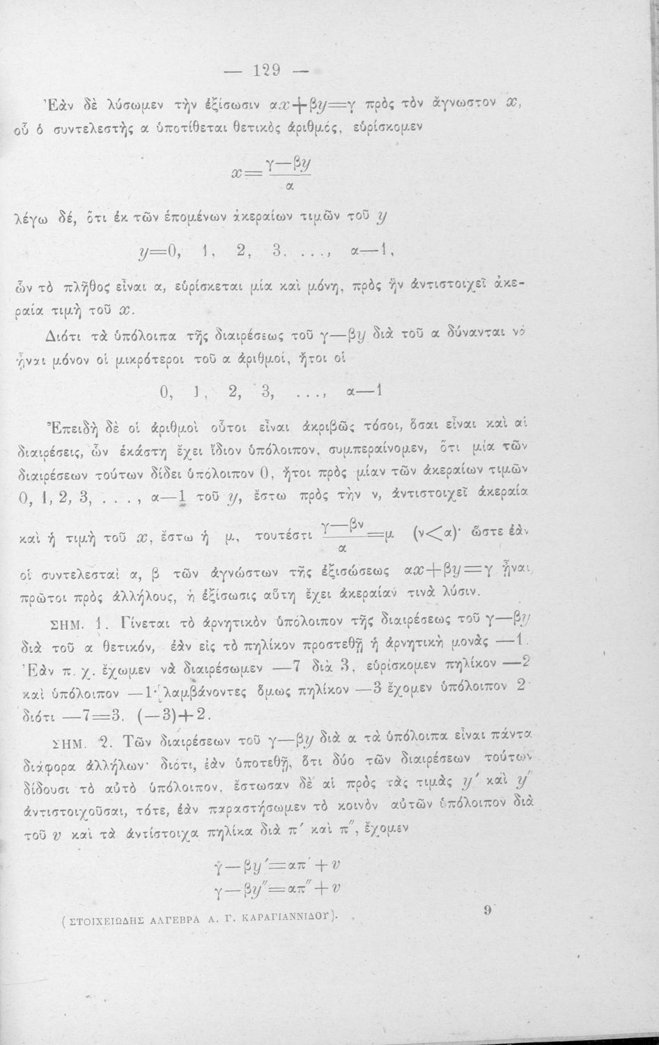 Σχολικό εγχειρίδιο Άλγεβρας Γυμνασίου που περιέχει θεωρία και ασκήσεις. Ο συγγραφέας ήταν υφηγητής στο Εθνικό Πανεπιστήμιο.