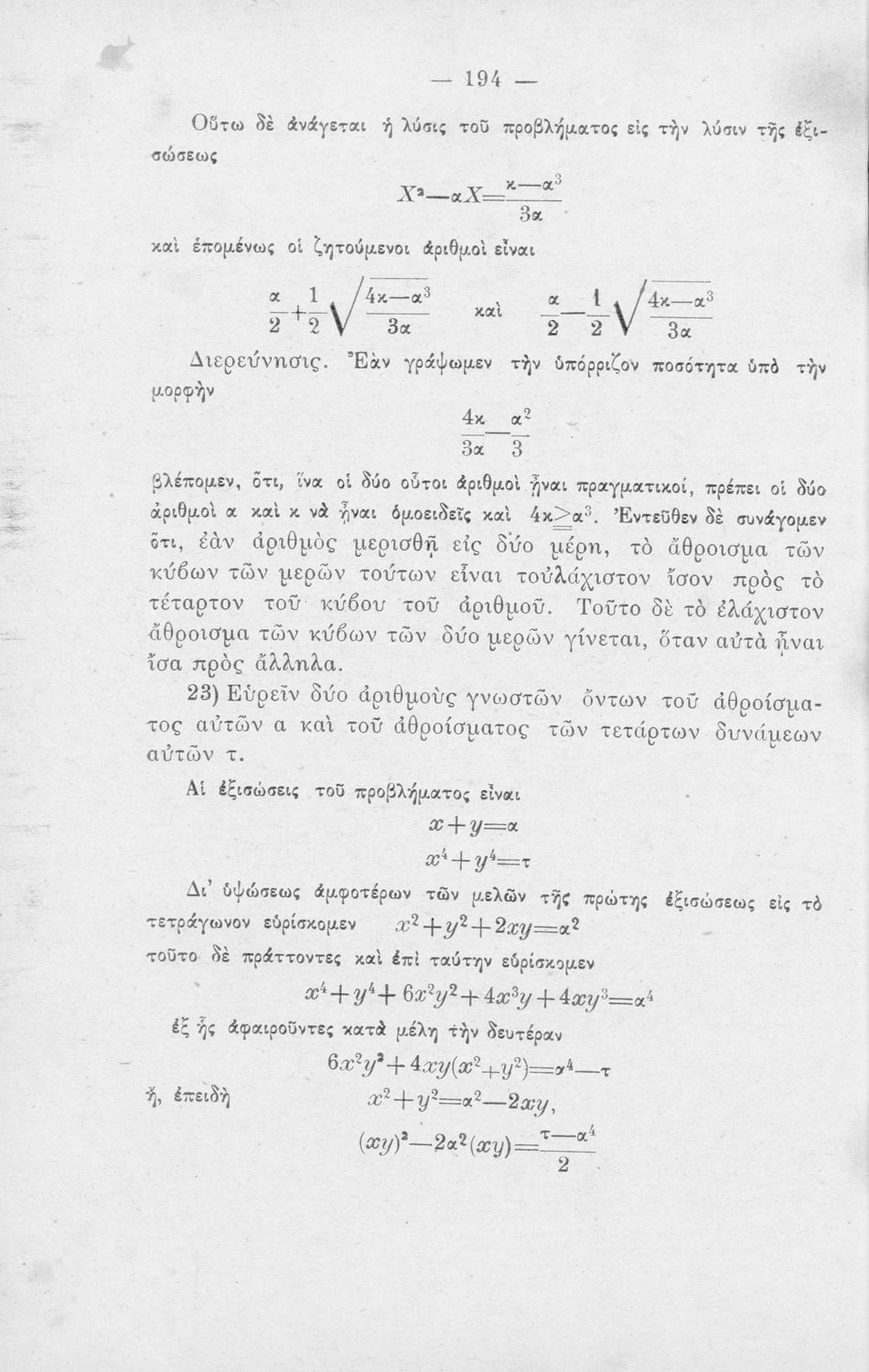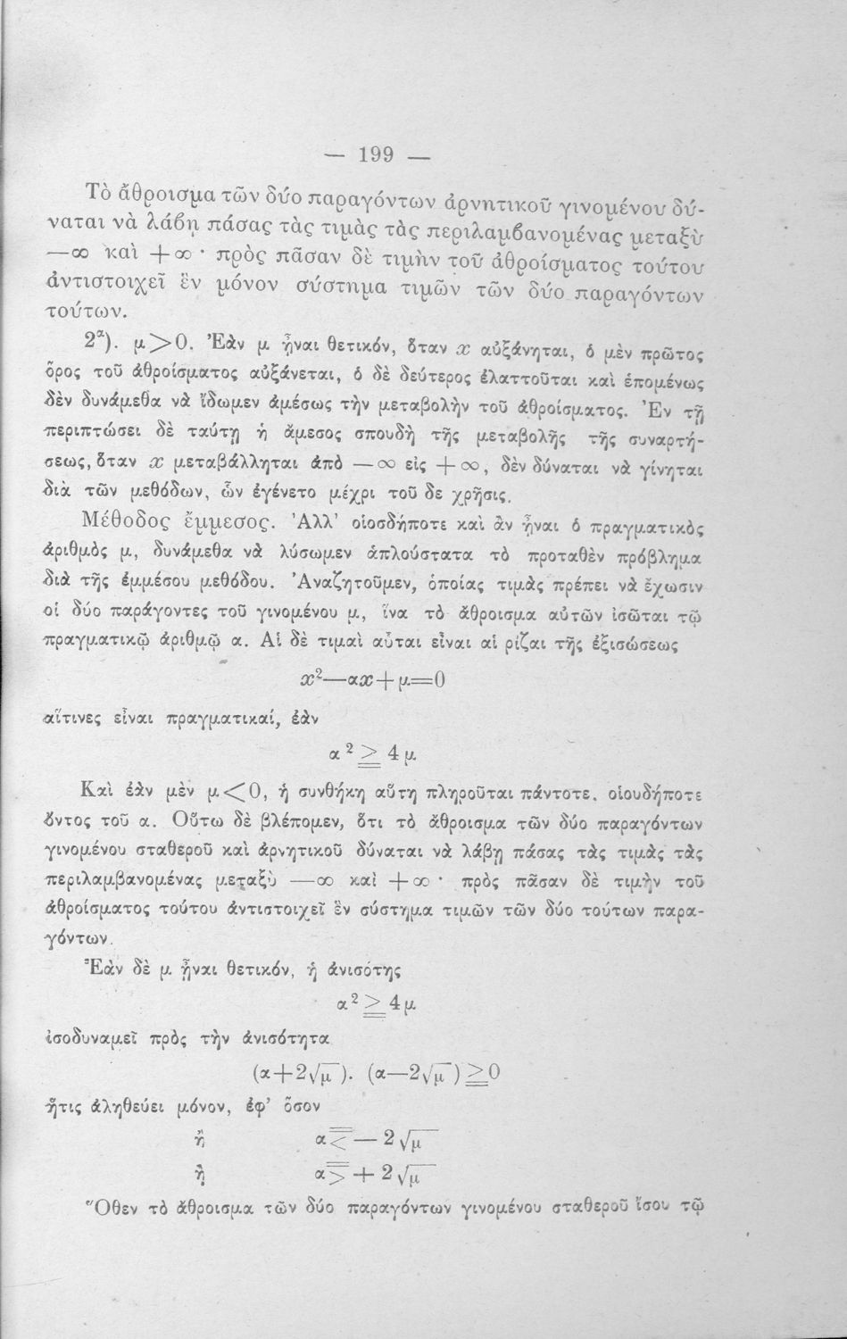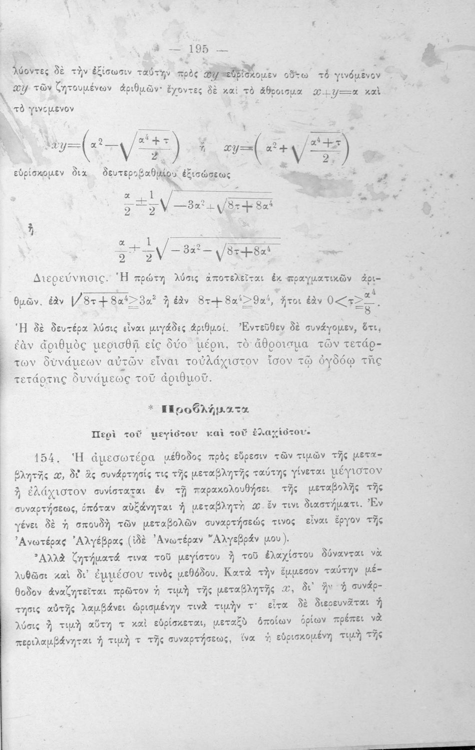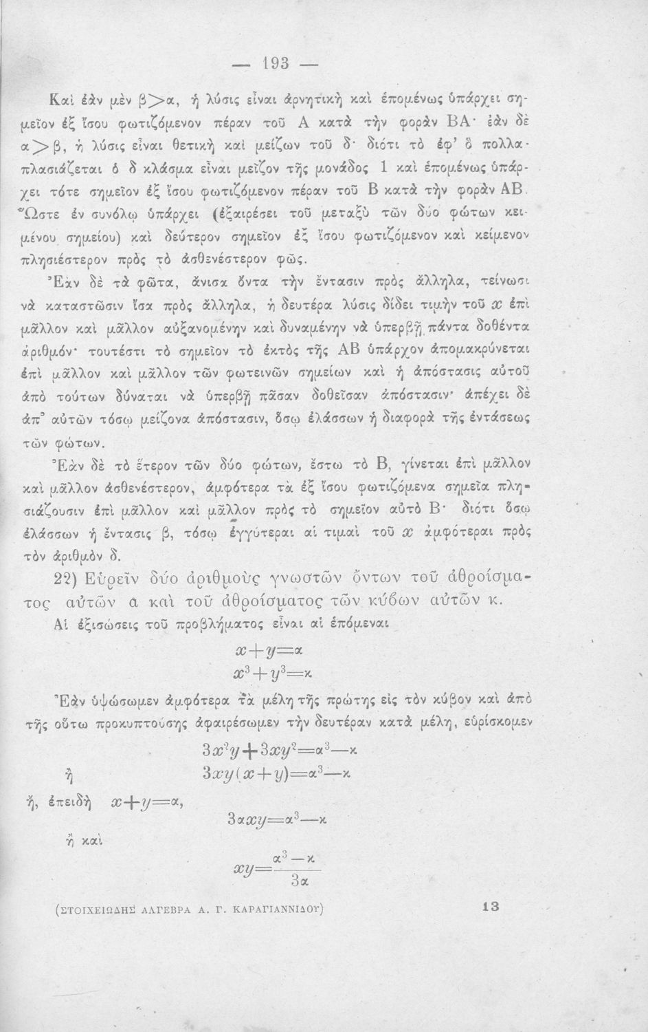 Σχολικό εγχειρίδιο Άλγεβρας Γυμνασίου που περιέχει θεωρία και ασκήσεις. Ο συγγραφέας ήταν υφηγητής στο Εθνικό Πανεπιστήμιο.