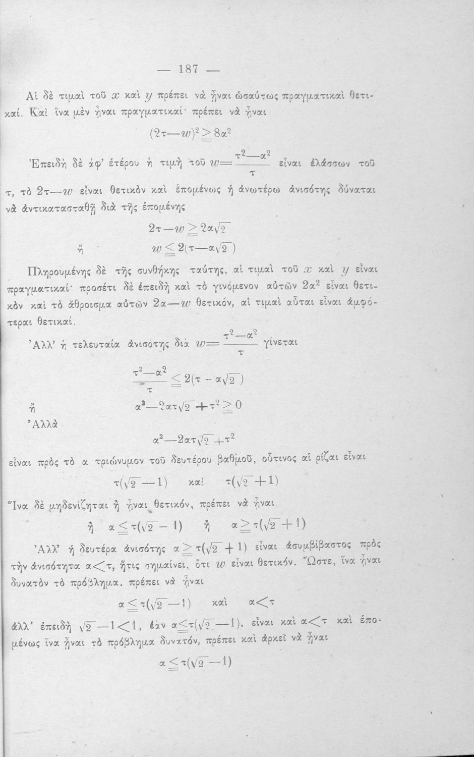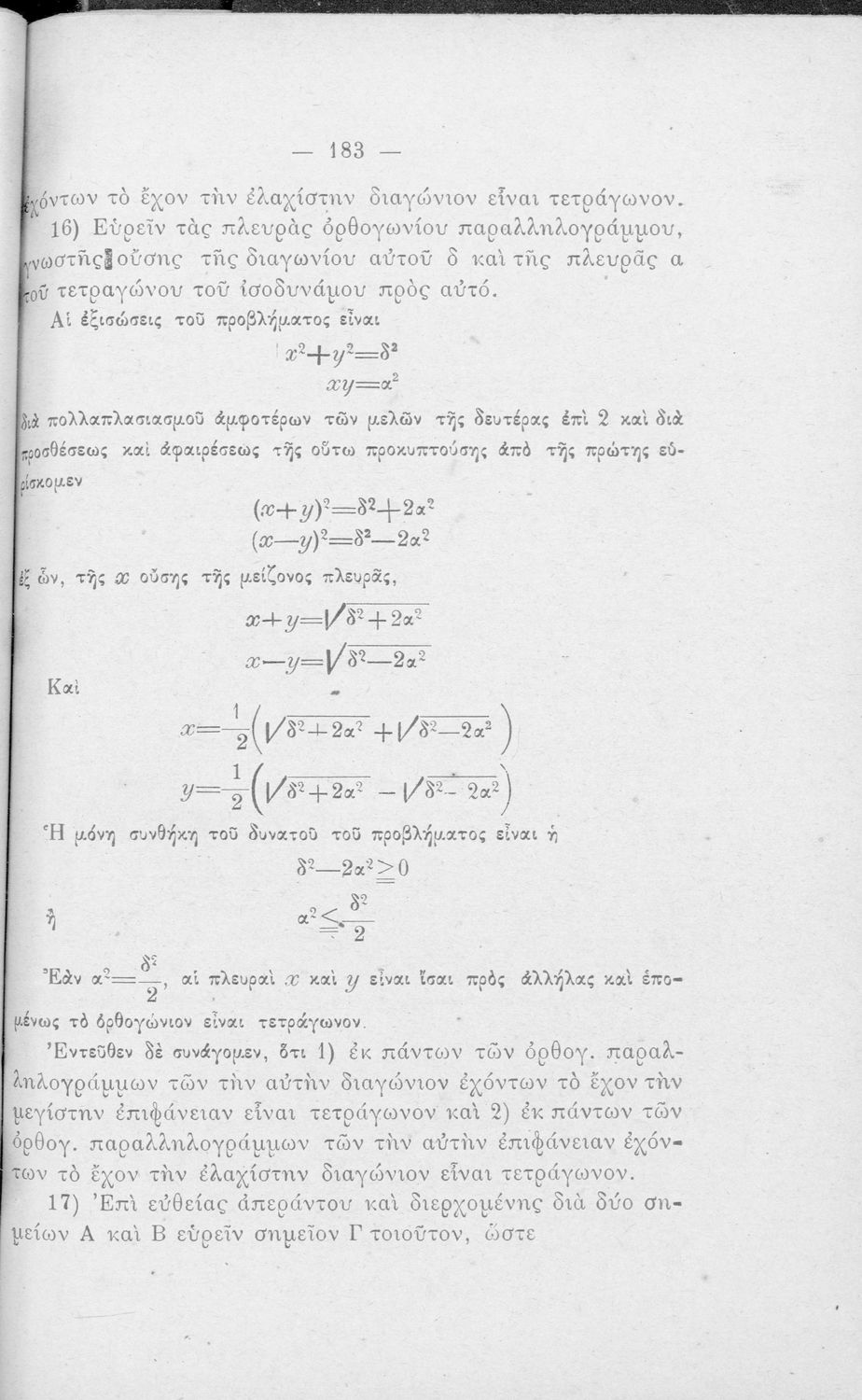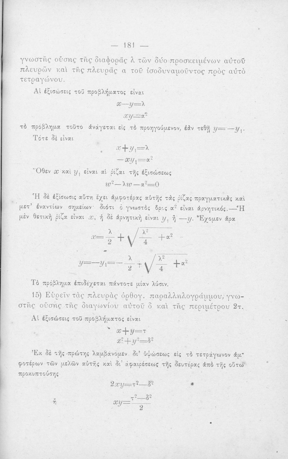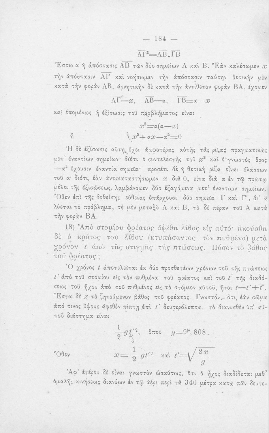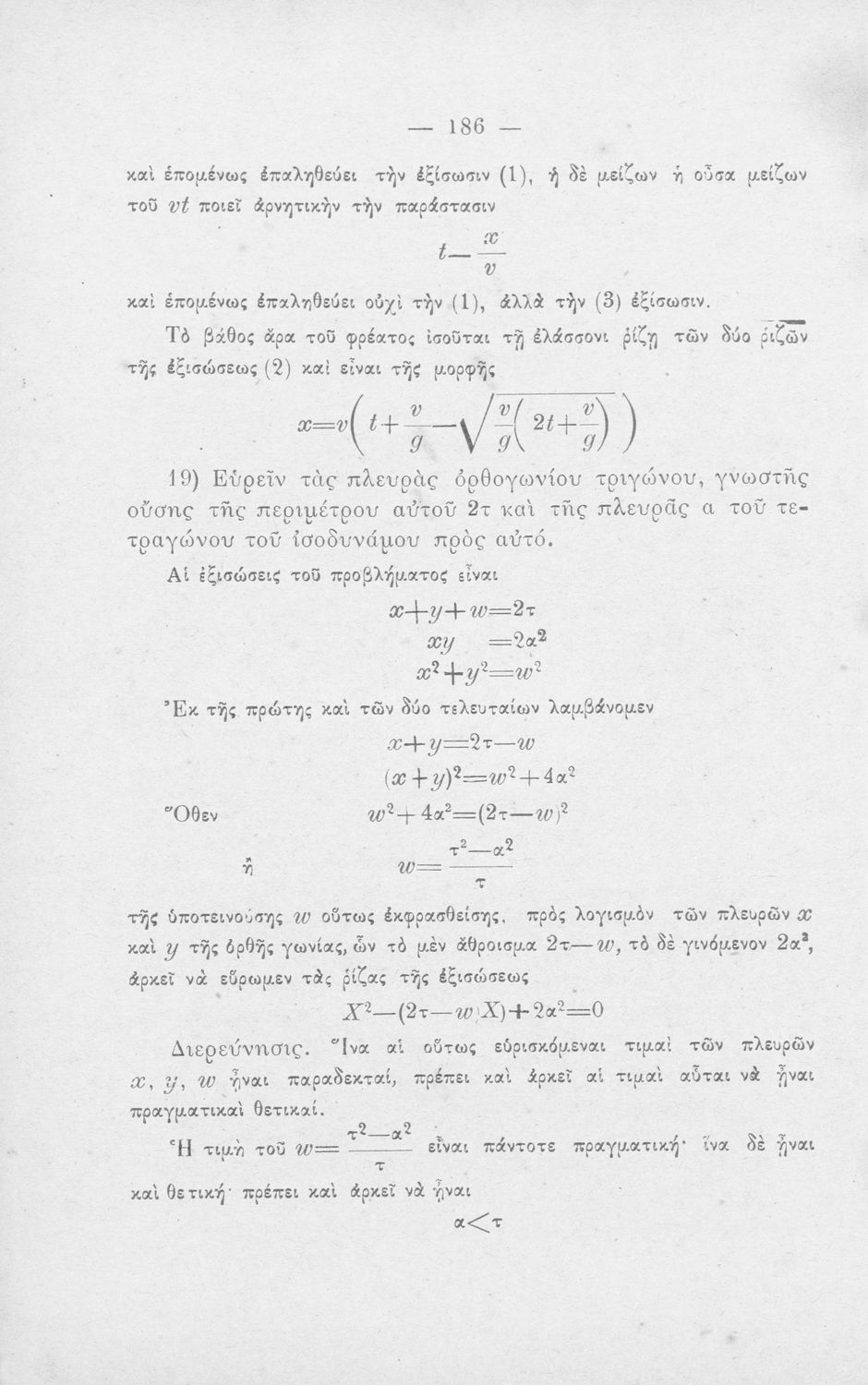 Σχολικό εγχειρίδιο Άλγεβρας Γυμνασίου που περιέχει θεωρία και ασκήσεις. Ο συγγραφέας ήταν υφηγητής στο Εθνικό Πανεπιστήμιο.