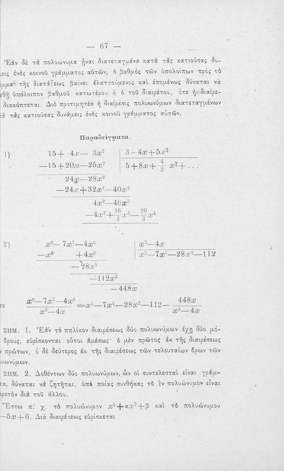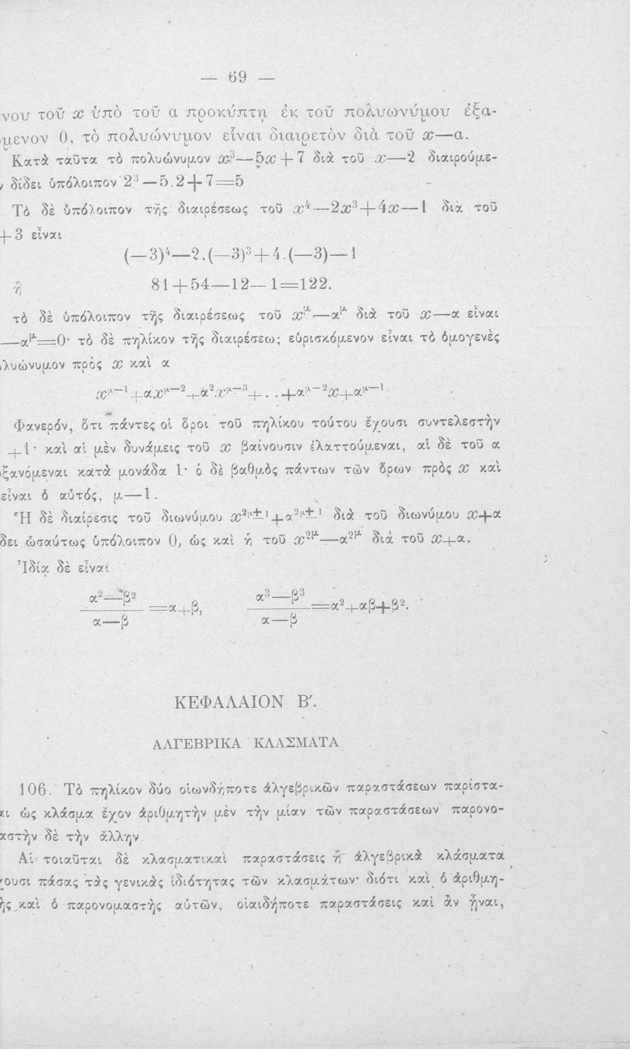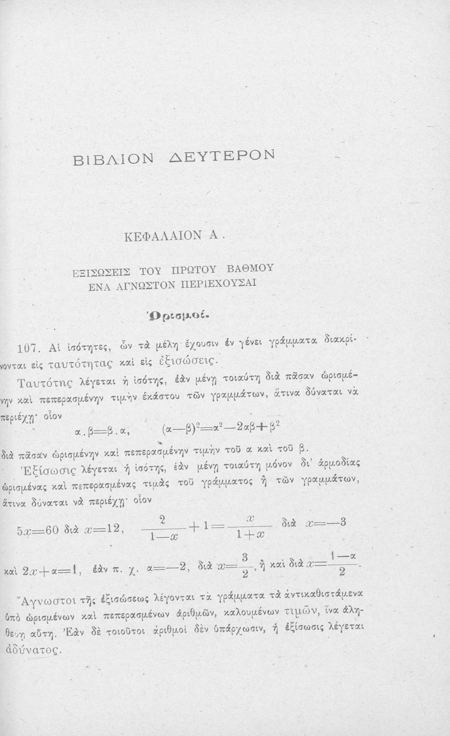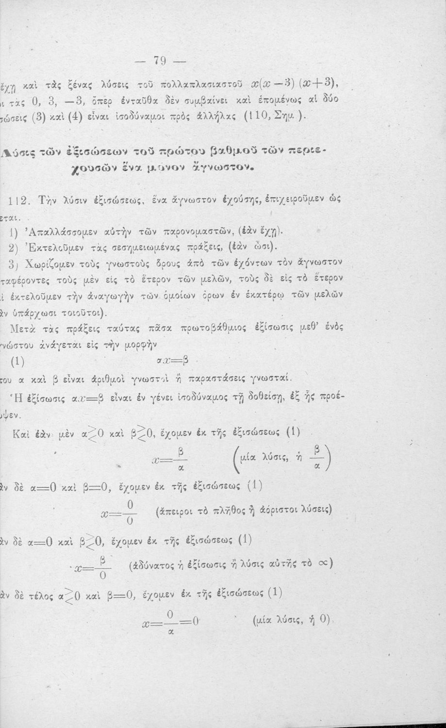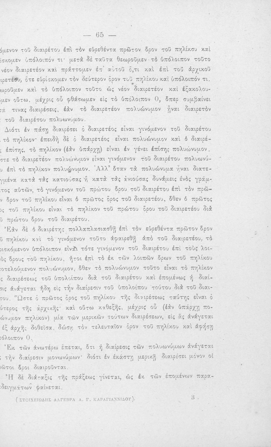 Σχολικό εγχειρίδιο Άλγεβρας Γυμνασίου που περιέχει θεωρία και ασκήσεις. Ο συγγραφέας ήταν υφηγητής στο Εθνικό Πανεπιστήμιο.