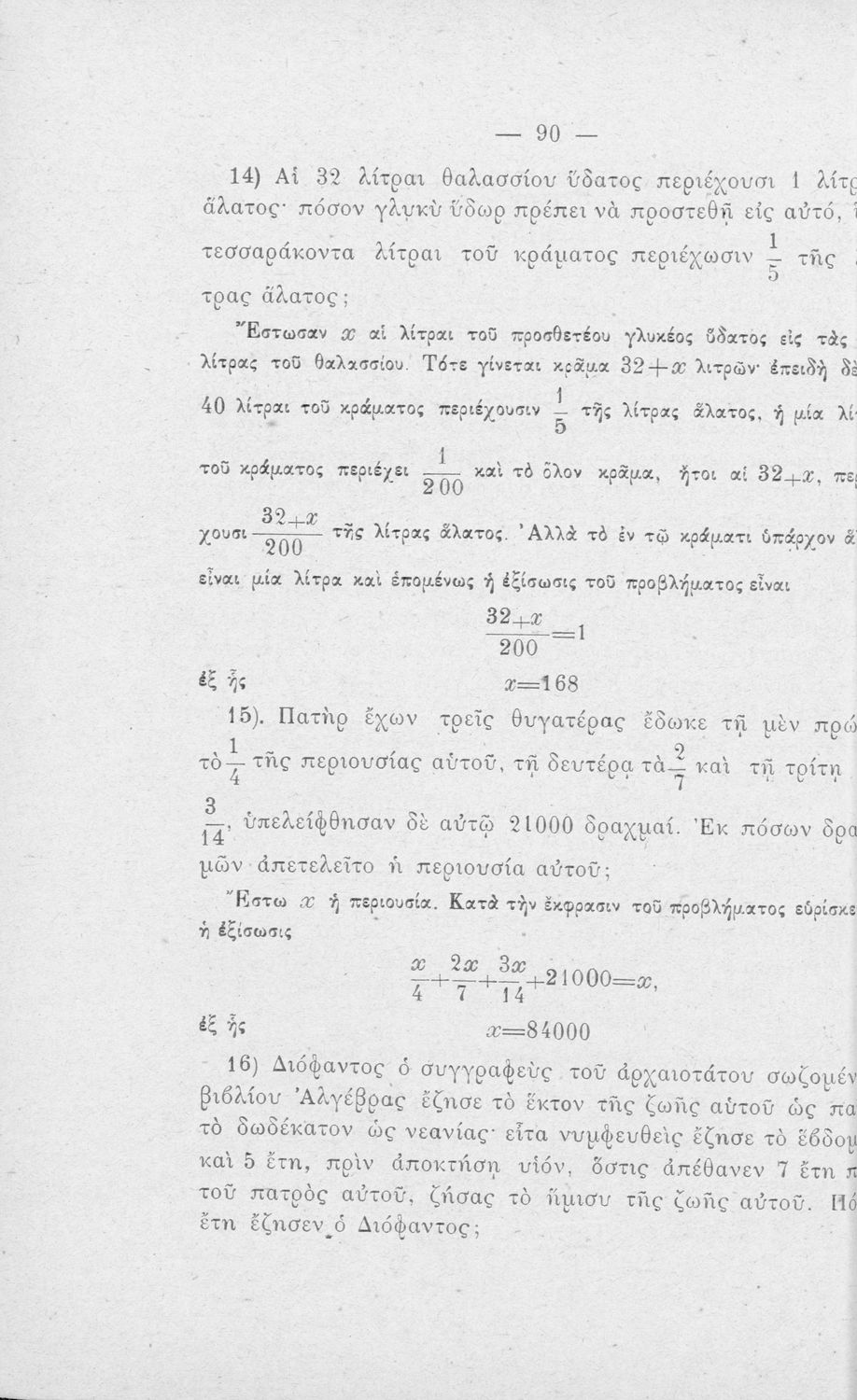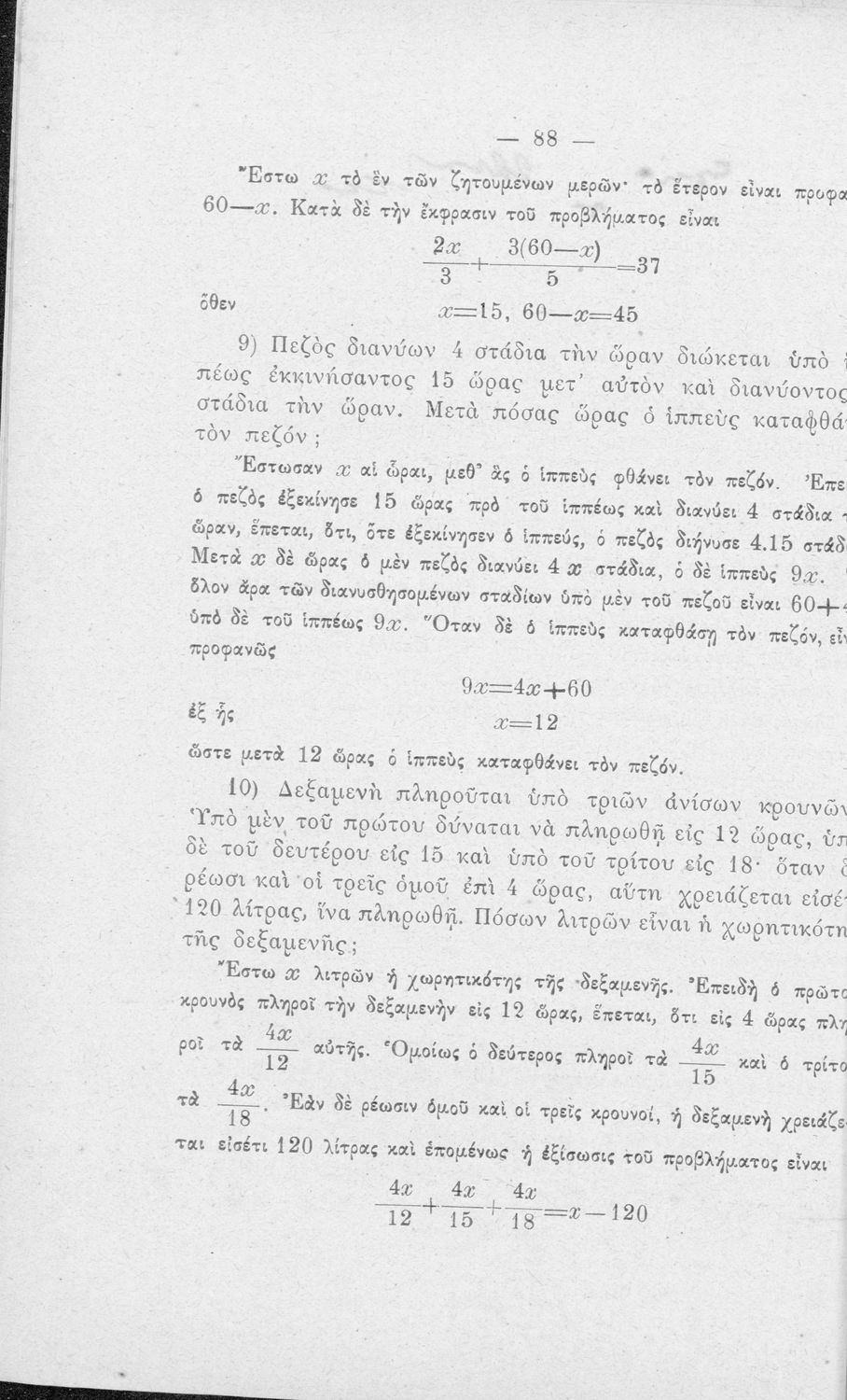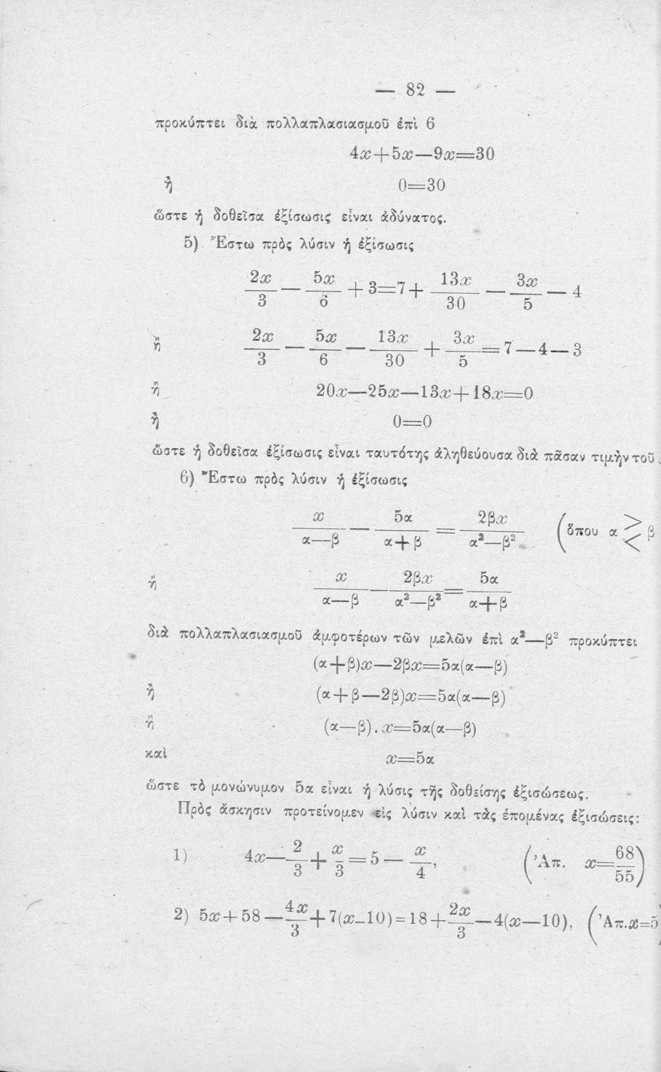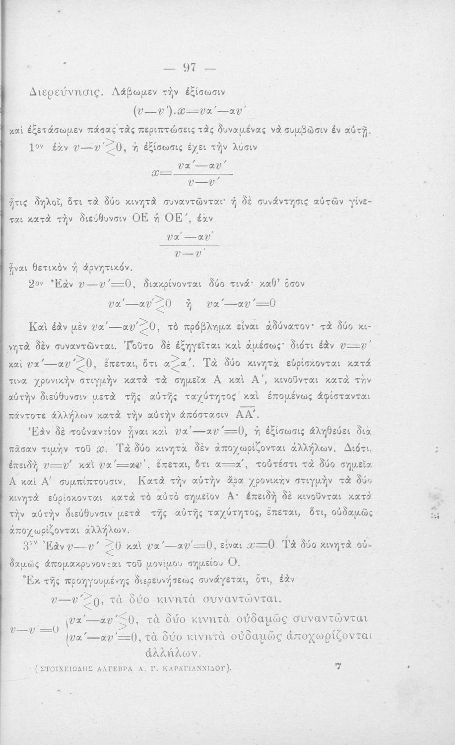 Σχολικό εγχειρίδιο Άλγεβρας Γυμνασίου που περιέχει θεωρία και ασκήσεις. Ο συγγραφέας ήταν υφηγητής στο Εθνικό Πανεπιστήμιο.