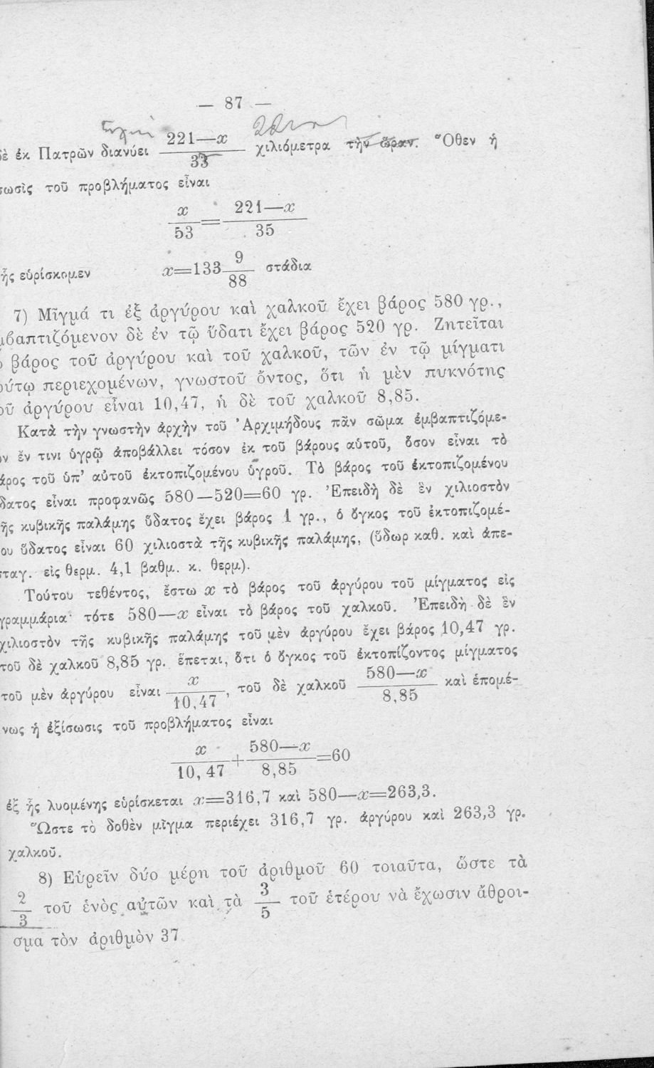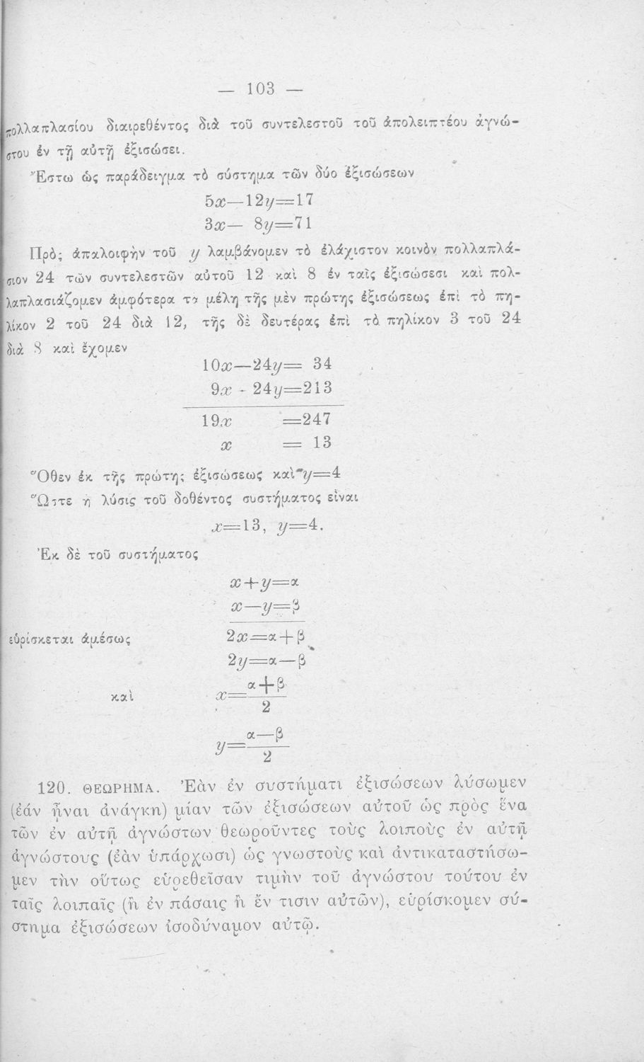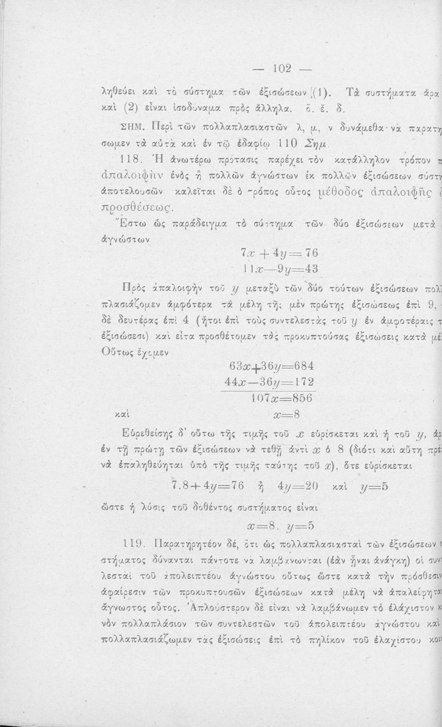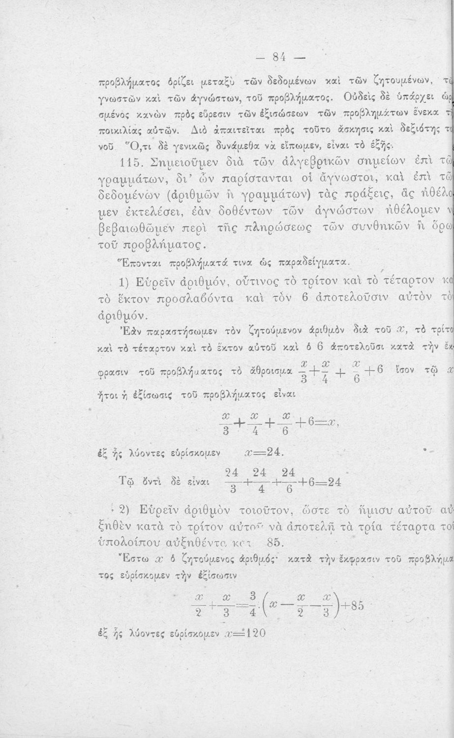 Σχολικό εγχειρίδιο Άλγεβρας Γυμνασίου που περιέχει θεωρία και ασκήσεις. Ο συγγραφέας ήταν υφηγητής στο Εθνικό Πανεπιστήμιο.