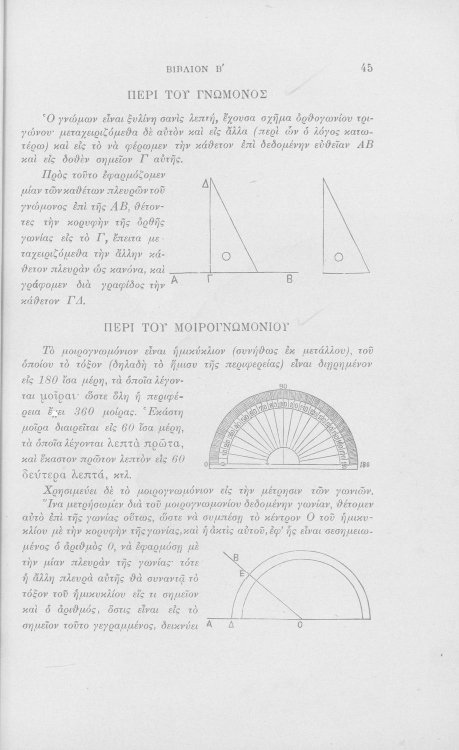 Σχολικό εγχειρίδιο Γεωμετρίας για τα Ελληνικά Σχολεία που είναι χωρισμένο σε θεωρήματα, ορισμούς και ασκήσεις και εστιάζει στην Επιπεδομετρία και τη Στερεομετρία.