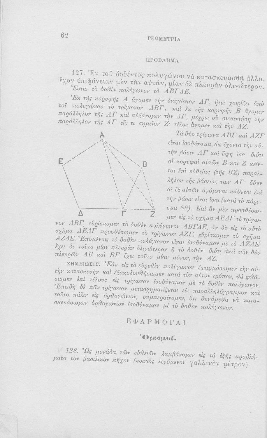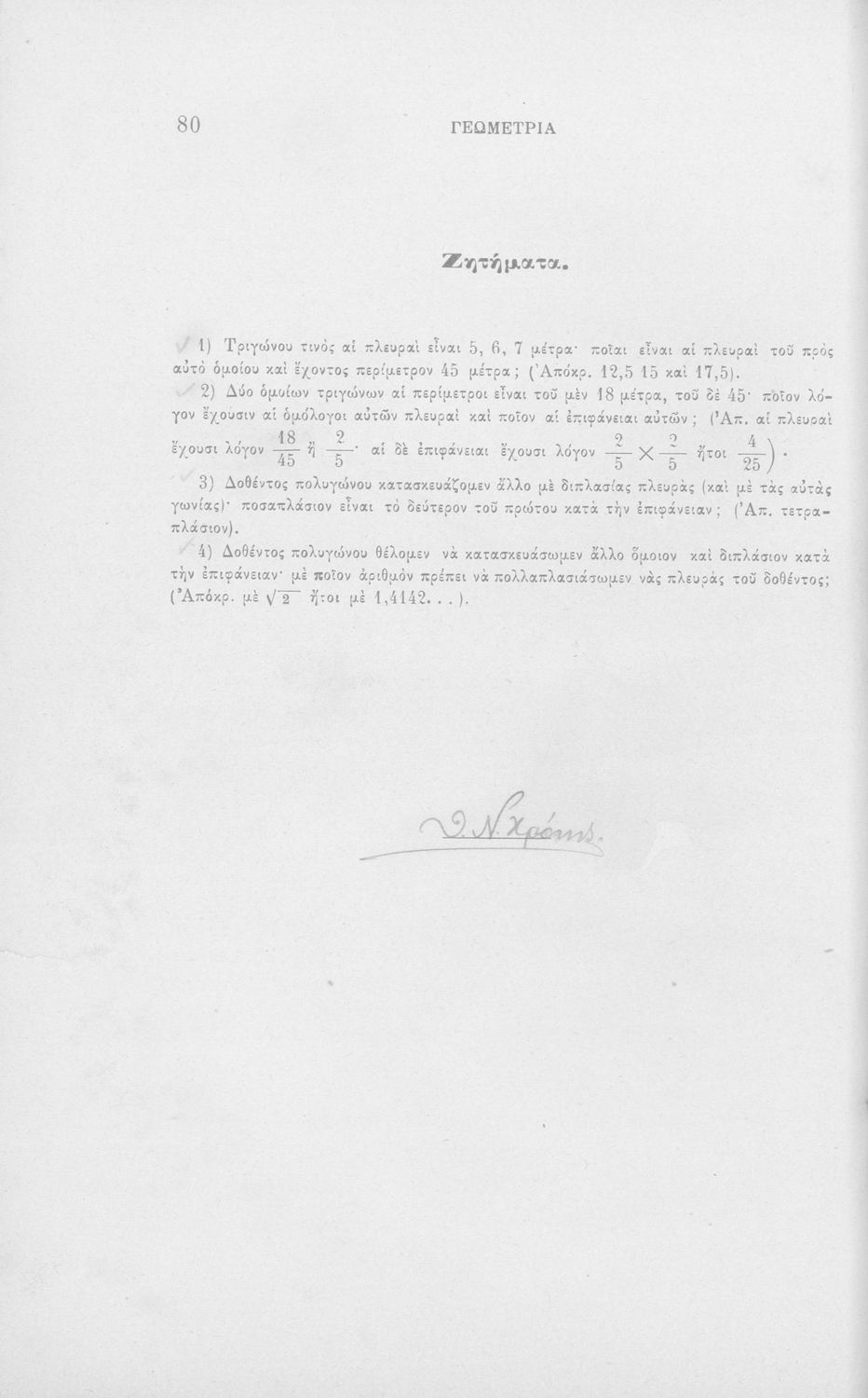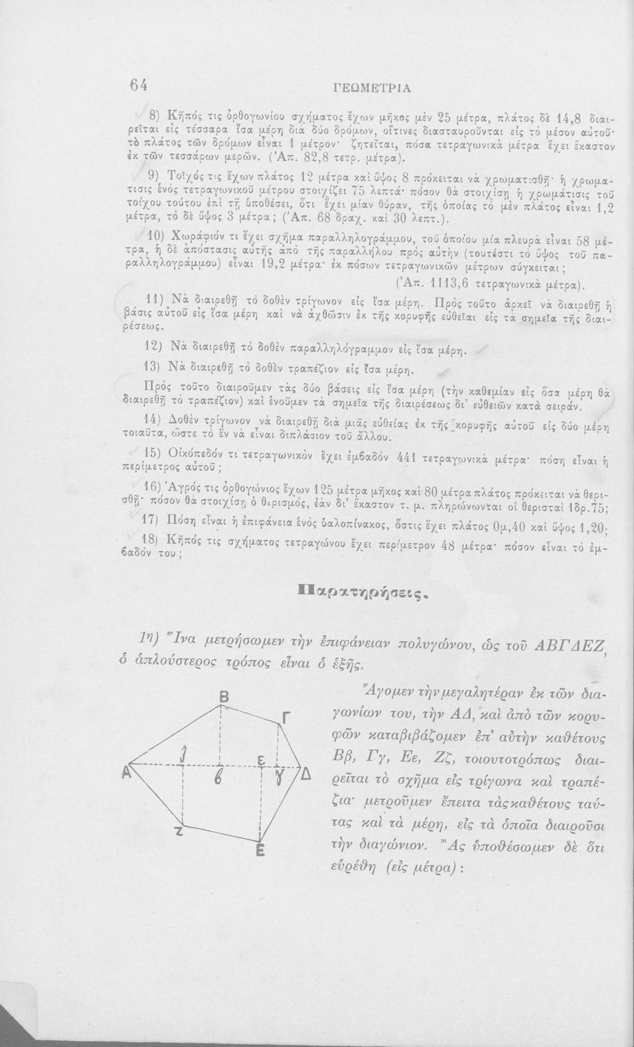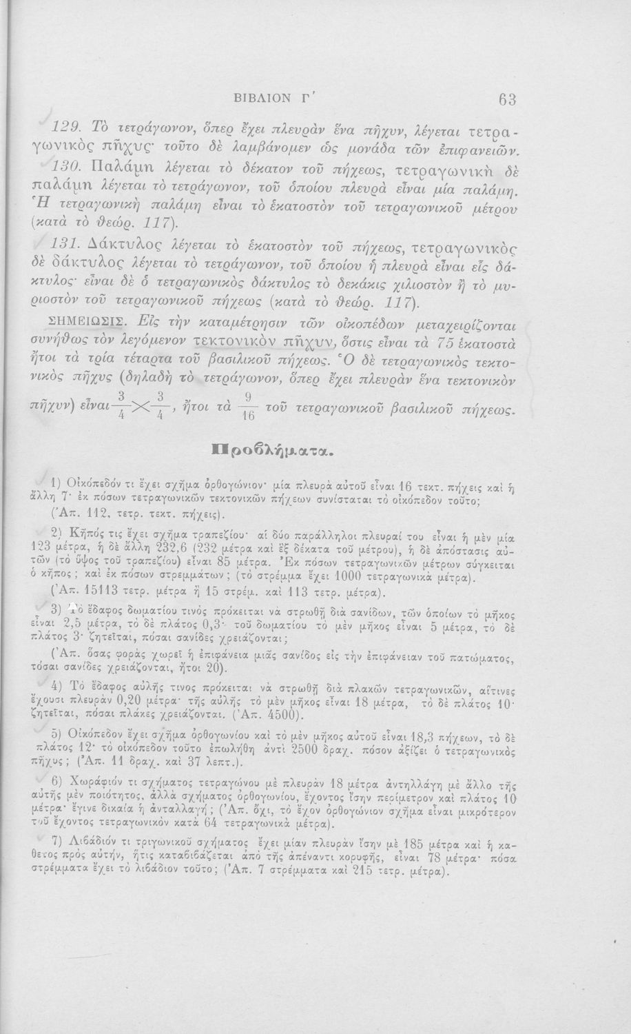 Σχολικό εγχειρίδιο Γεωμετρίας για τα Ελληνικά Σχολεία που είναι χωρισμένο σε θεωρήματα, ορισμούς και ασκήσεις και εστιάζει στην Επιπεδομετρία και τη Στερεομετρία.