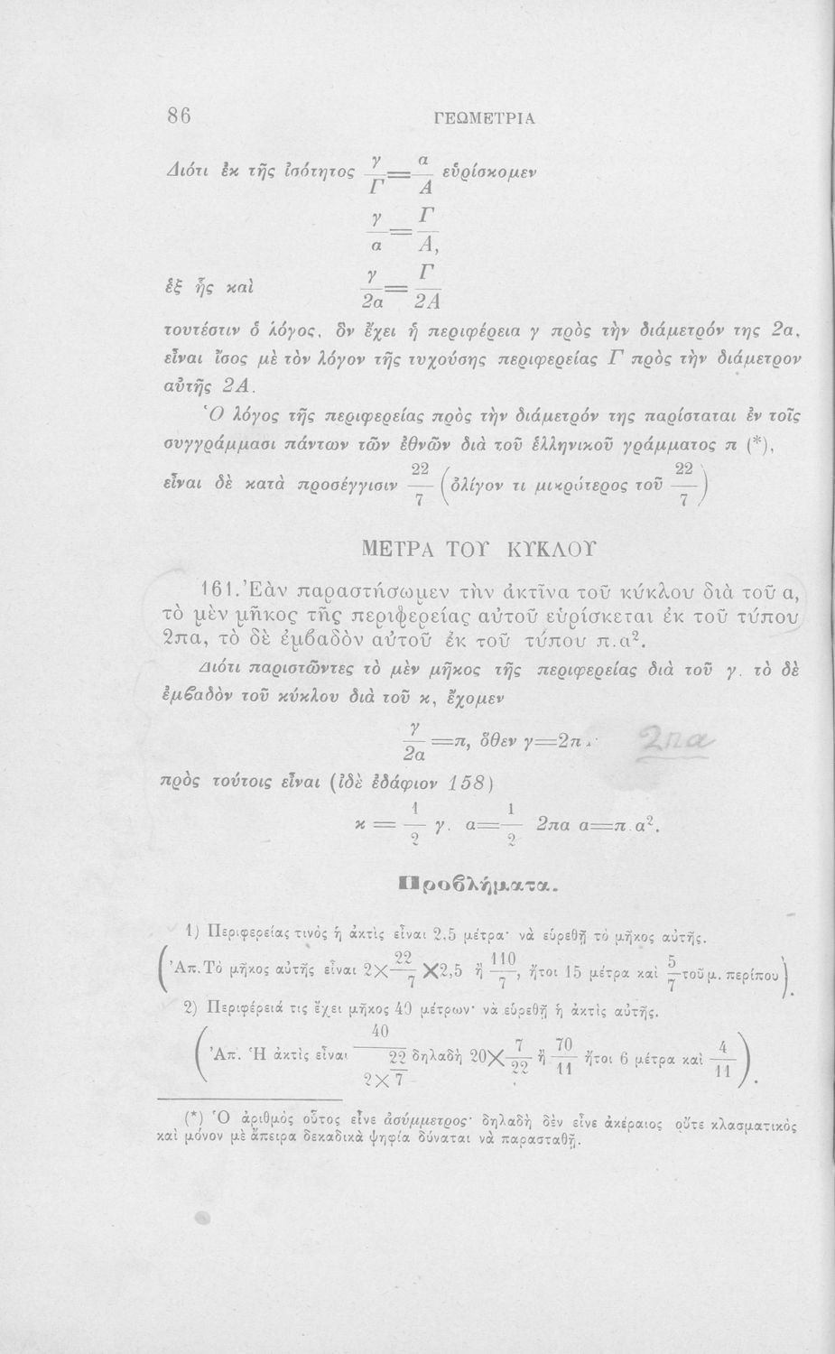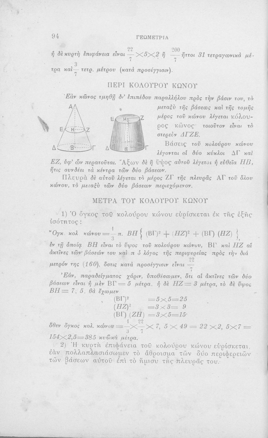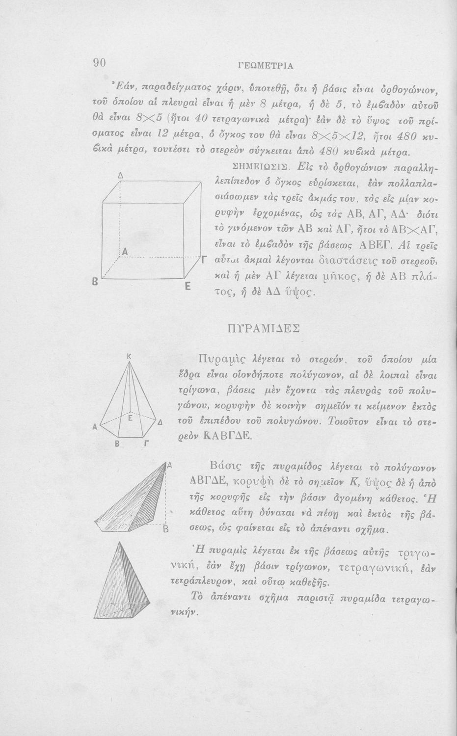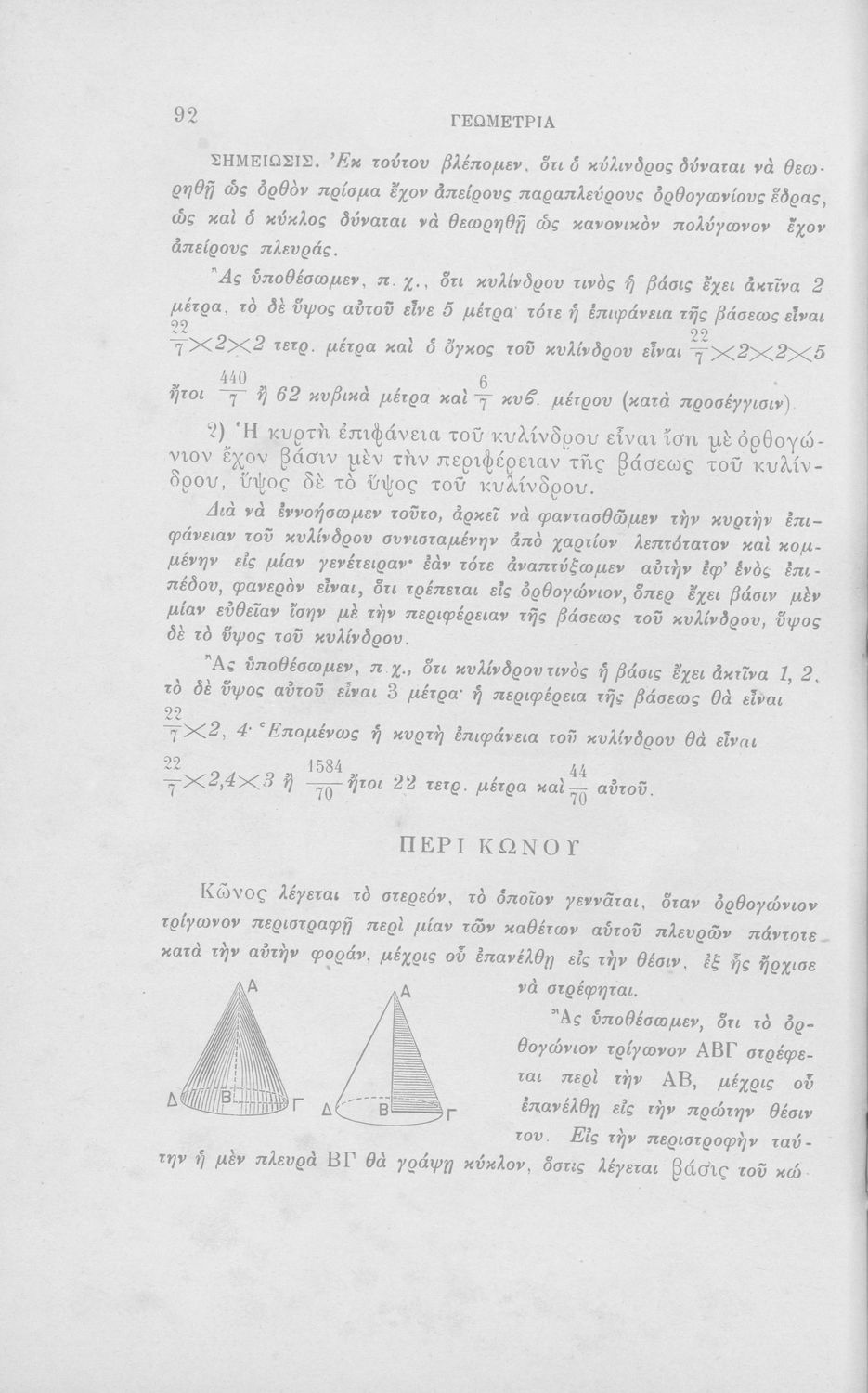 Σχολικό εγχειρίδιο Γεωμετρίας για τα Ελληνικά και Αστικά Σχολεία που περιέχει θεωρία και ασκήσεις και είναι χωρισμένο σε Επιπεδομετρία και Στερεομετρία.