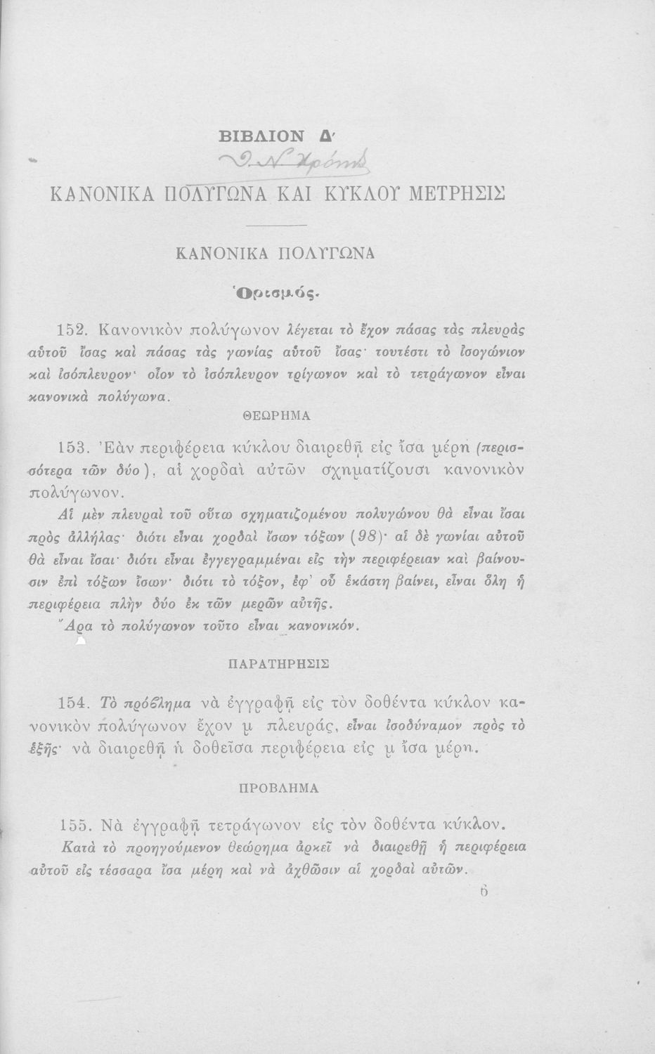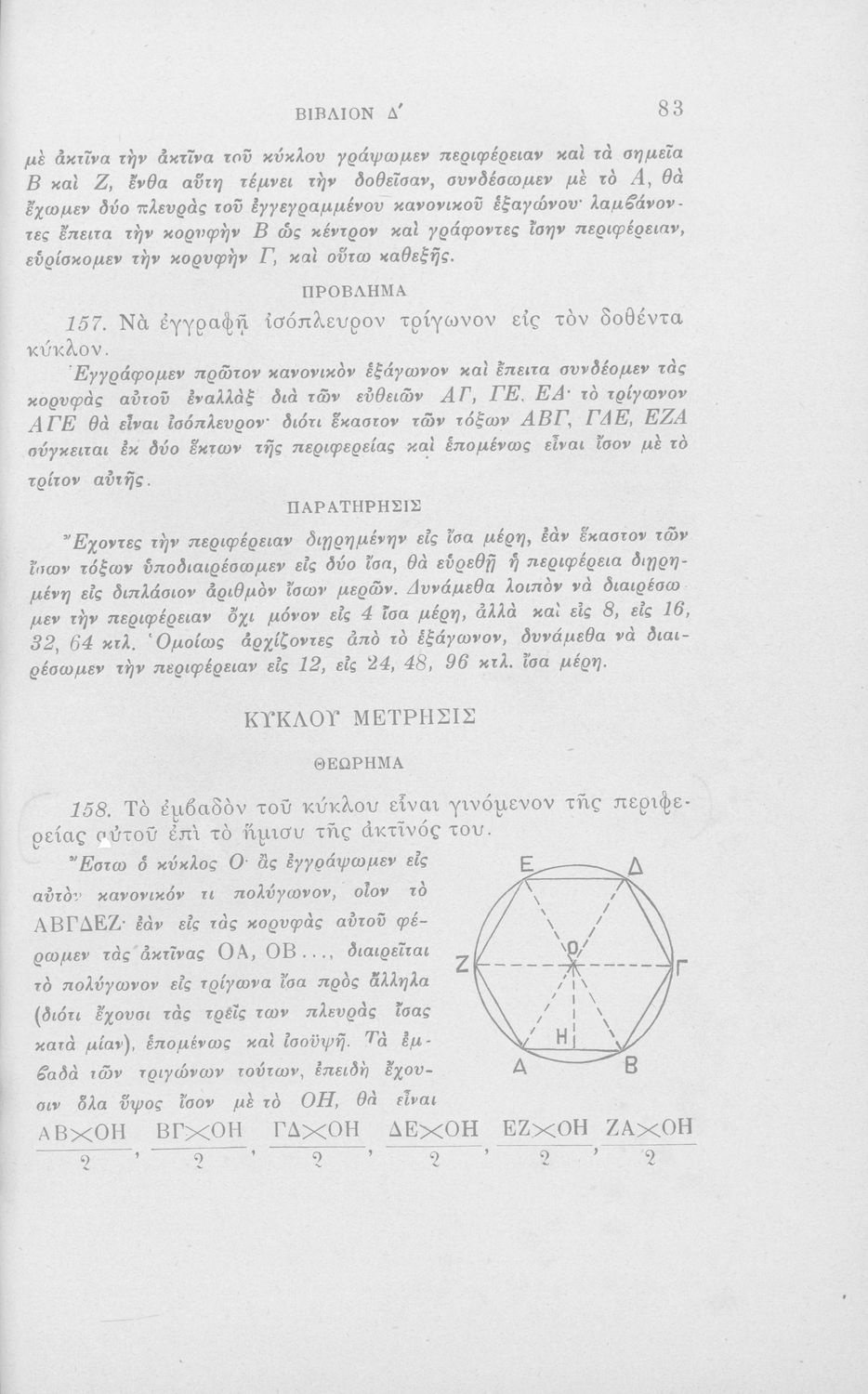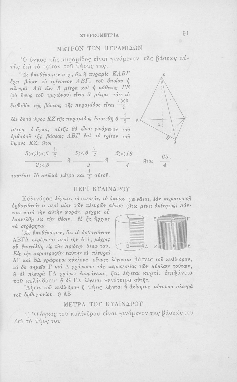 Σχολικό εγχειρίδιο Γεωμετρίας για τα Ελληνικά Σχολεία που είναι χωρισμένο σε θεωρήματα, ορισμούς και ασκήσεις και εστιάζει στην Επιπεδομετρία και τη Στερεομετρία.
