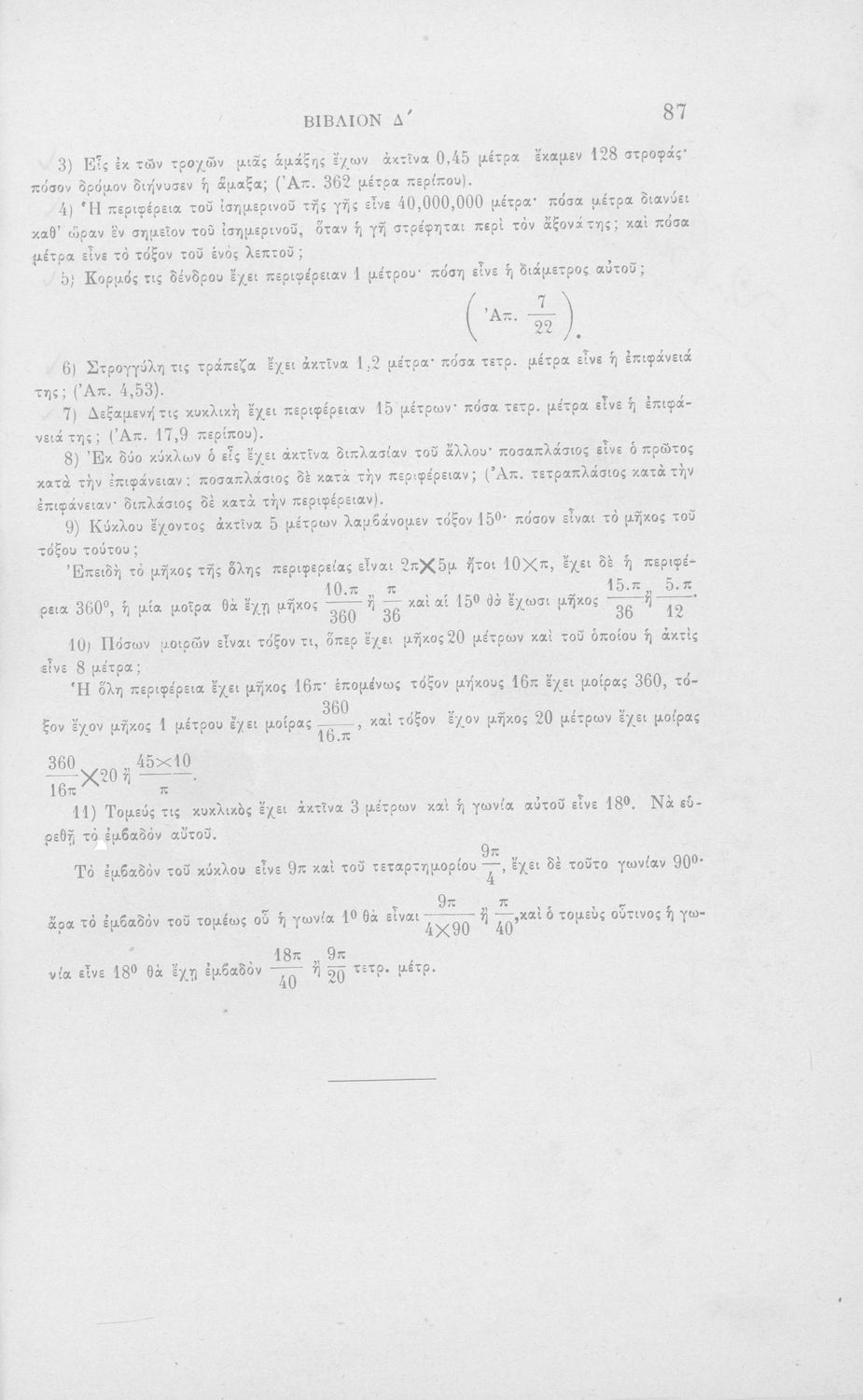 Μαθητικό βοήθημα Μαθηματικών για τους μαθητές των Ελληνικών Σχολείων και των Αστικών Σχολών που περιέχει τις λύσεις ασκήσεων αριθμητικής και γεωμετρίας που περιλαμβάνονται στα βιβλία του Ιωάννη Ν. Χατζηδάκη ...