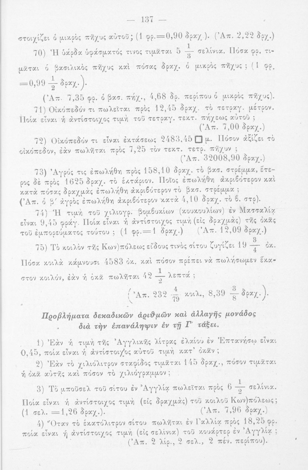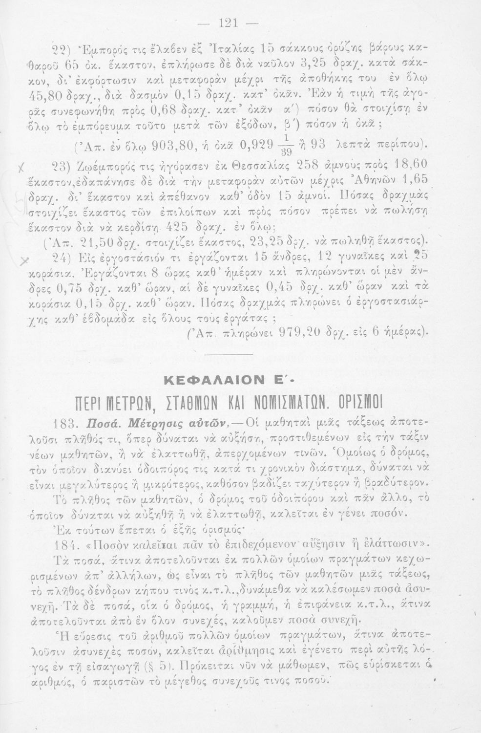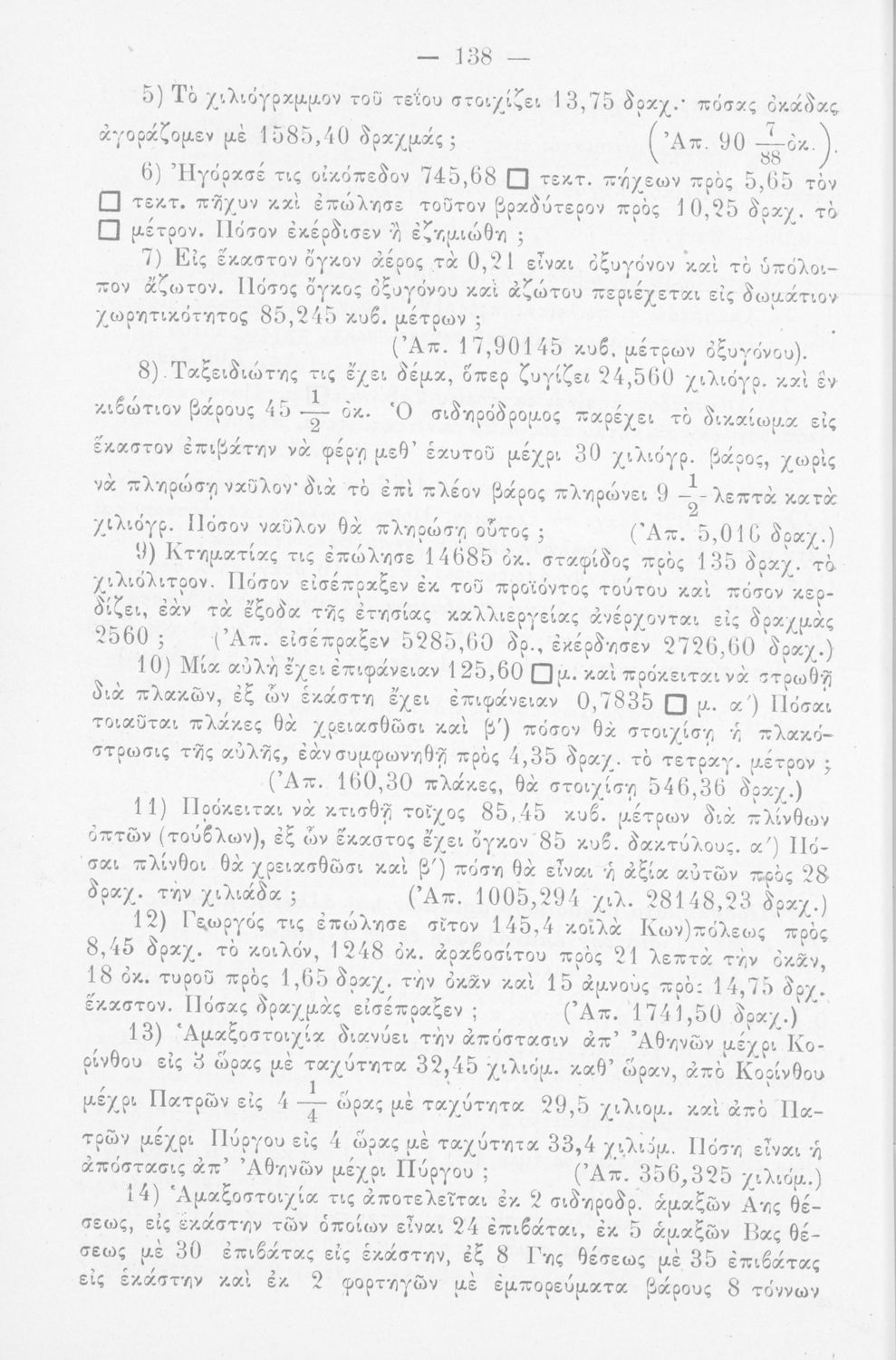 Σχολικό εγχειρίδιο Αριθμητικής για τα Ελληνικά σχολεία και Παρθεναγωγεία που περιέχει θεωρία και ασκήσεις.