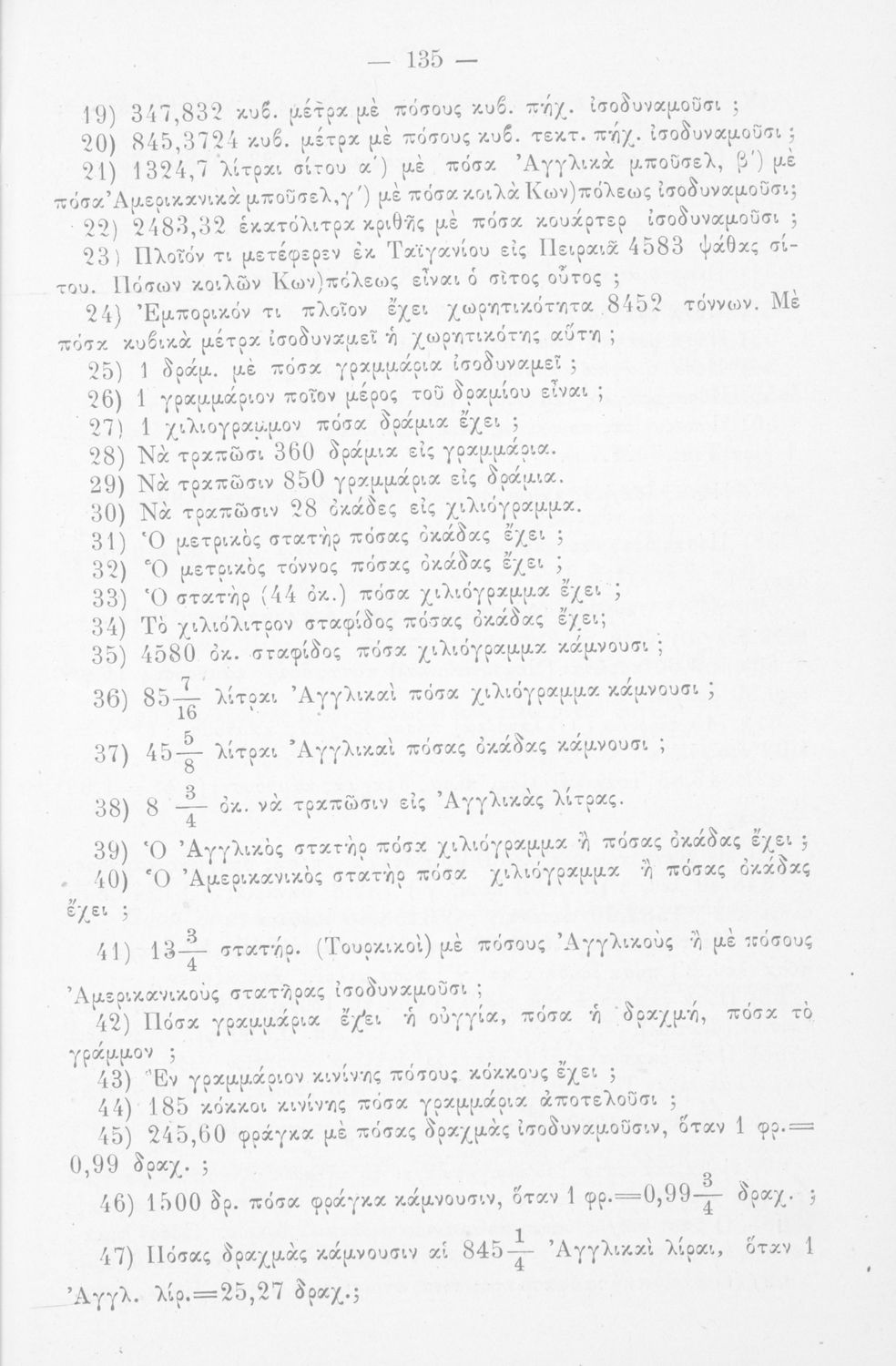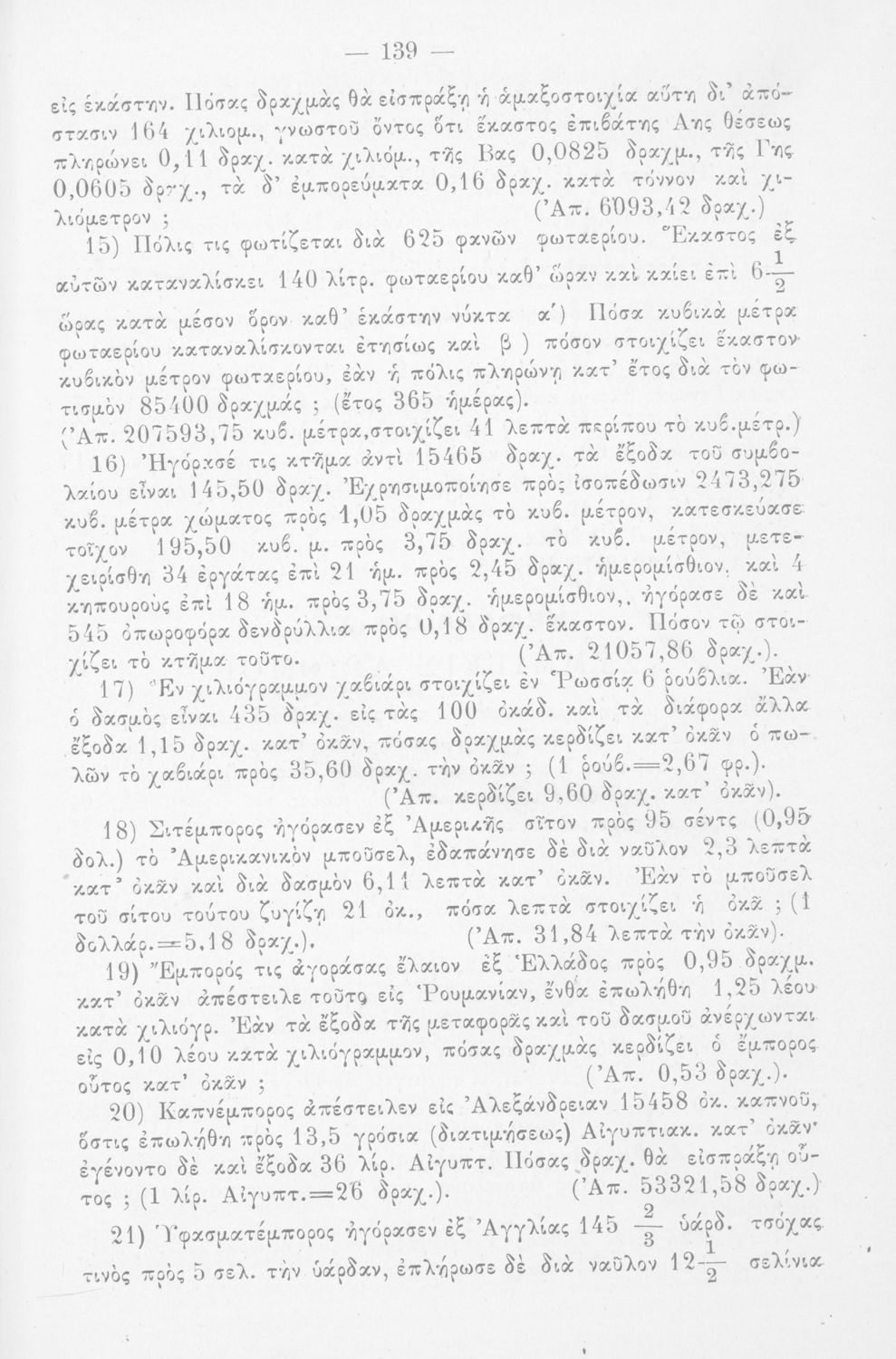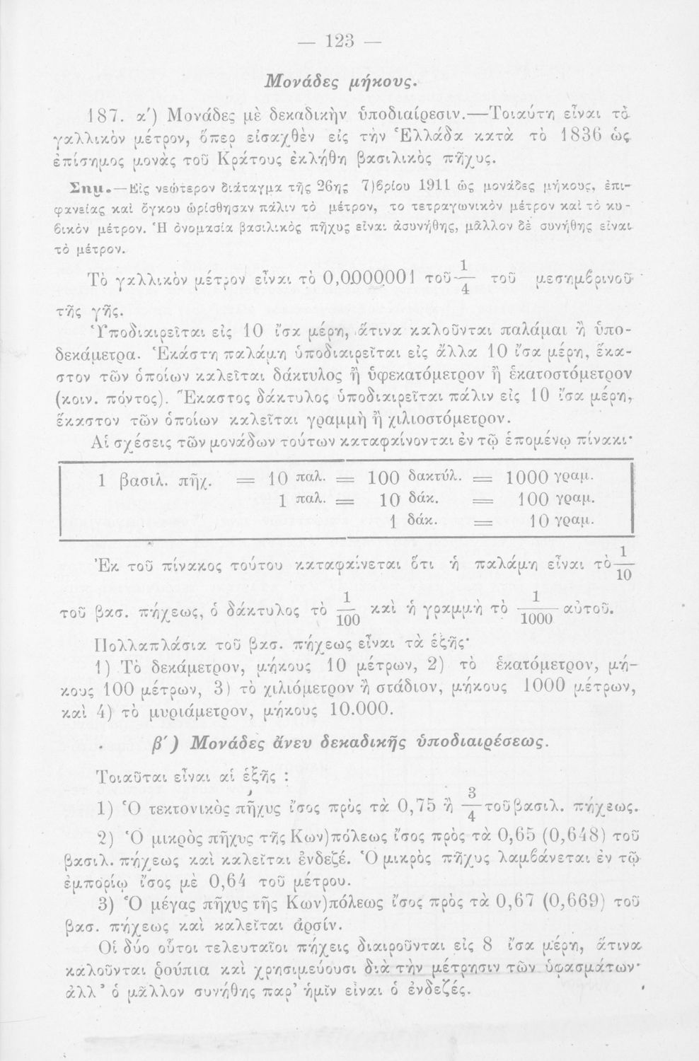 Σχολικό εγχειρίδιο Αριθμητικής για τα Ελληνικά και Αστικά Σχολεία και τα Παρθεναγωγεία που εστιάζει στις αριθμητικές πράξεις, τα κλάσματα, τους δεκαδικούς και συμμιγείς αριθμούς, και τις δυνάμεις. Περιέχει και