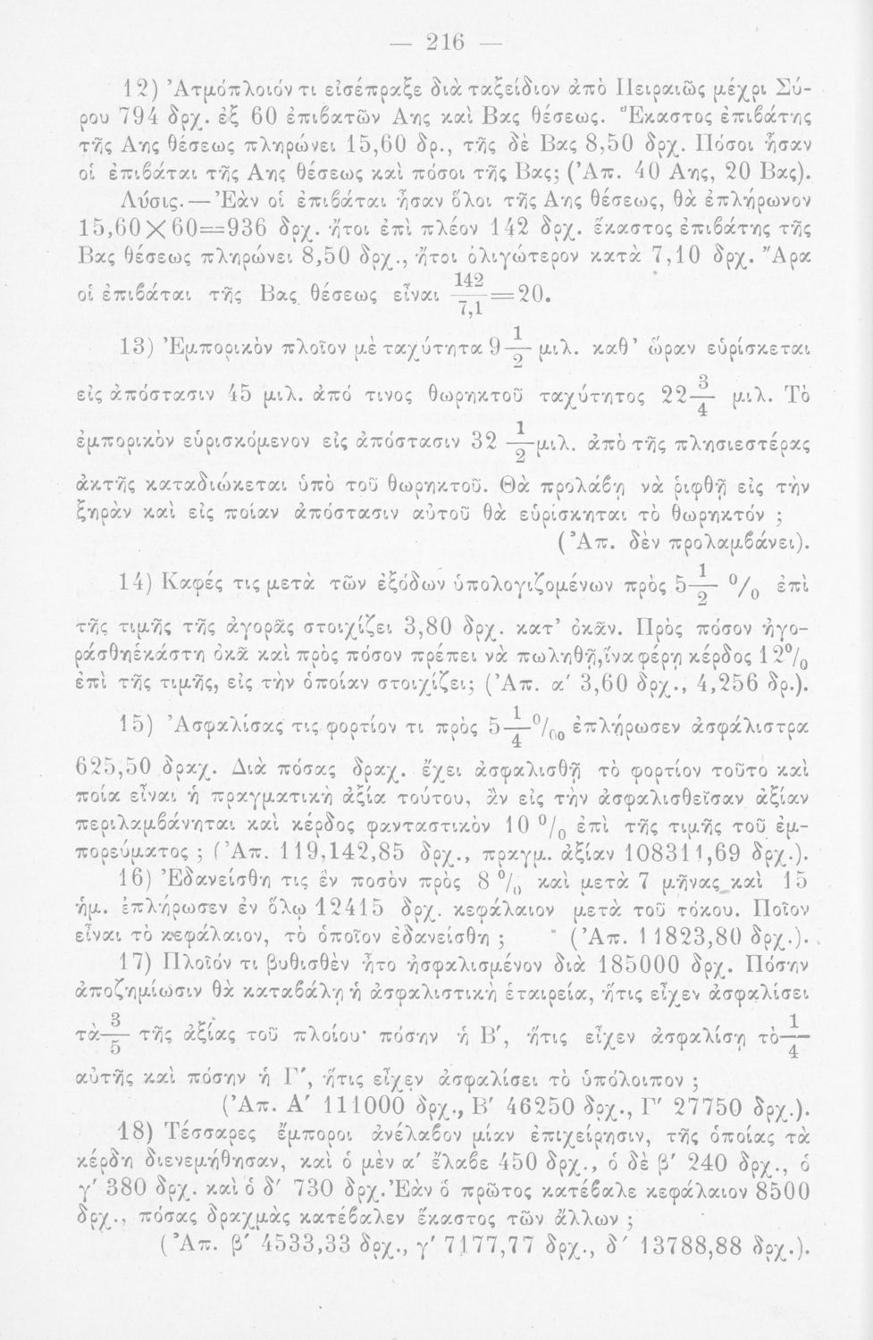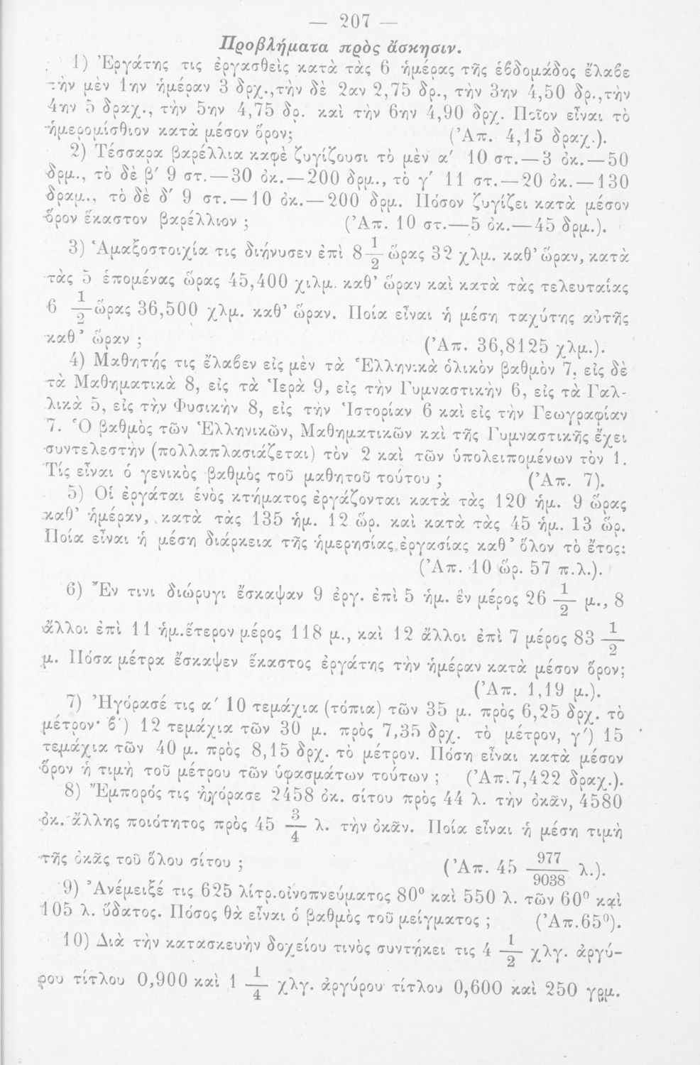Σχολικό εγχειρίδιο Αριθμητικής για τα Ελληνικά σχολεία και Παρθεναγωγεία που περιέχει θεωρία και ασκήσεις.