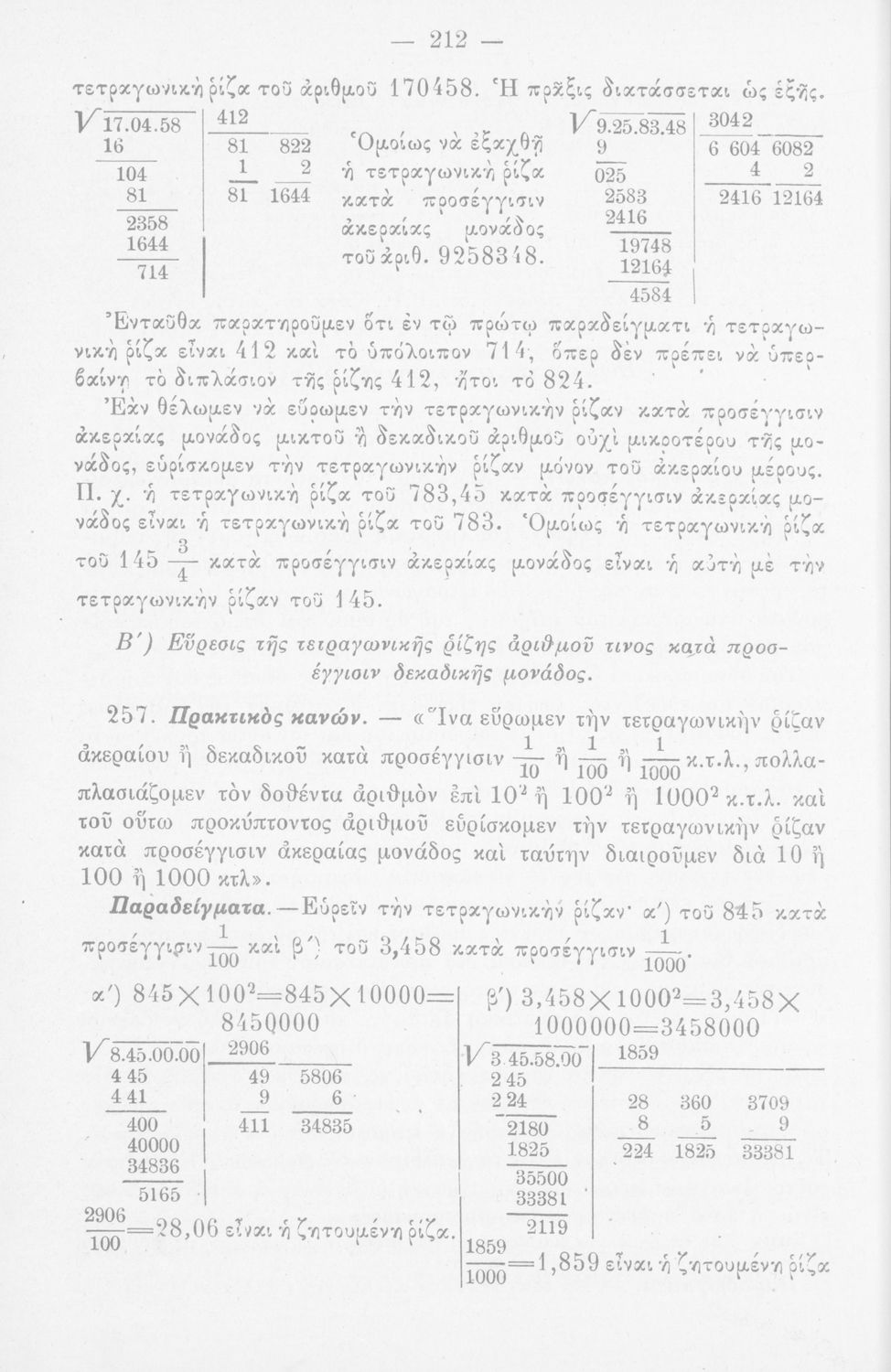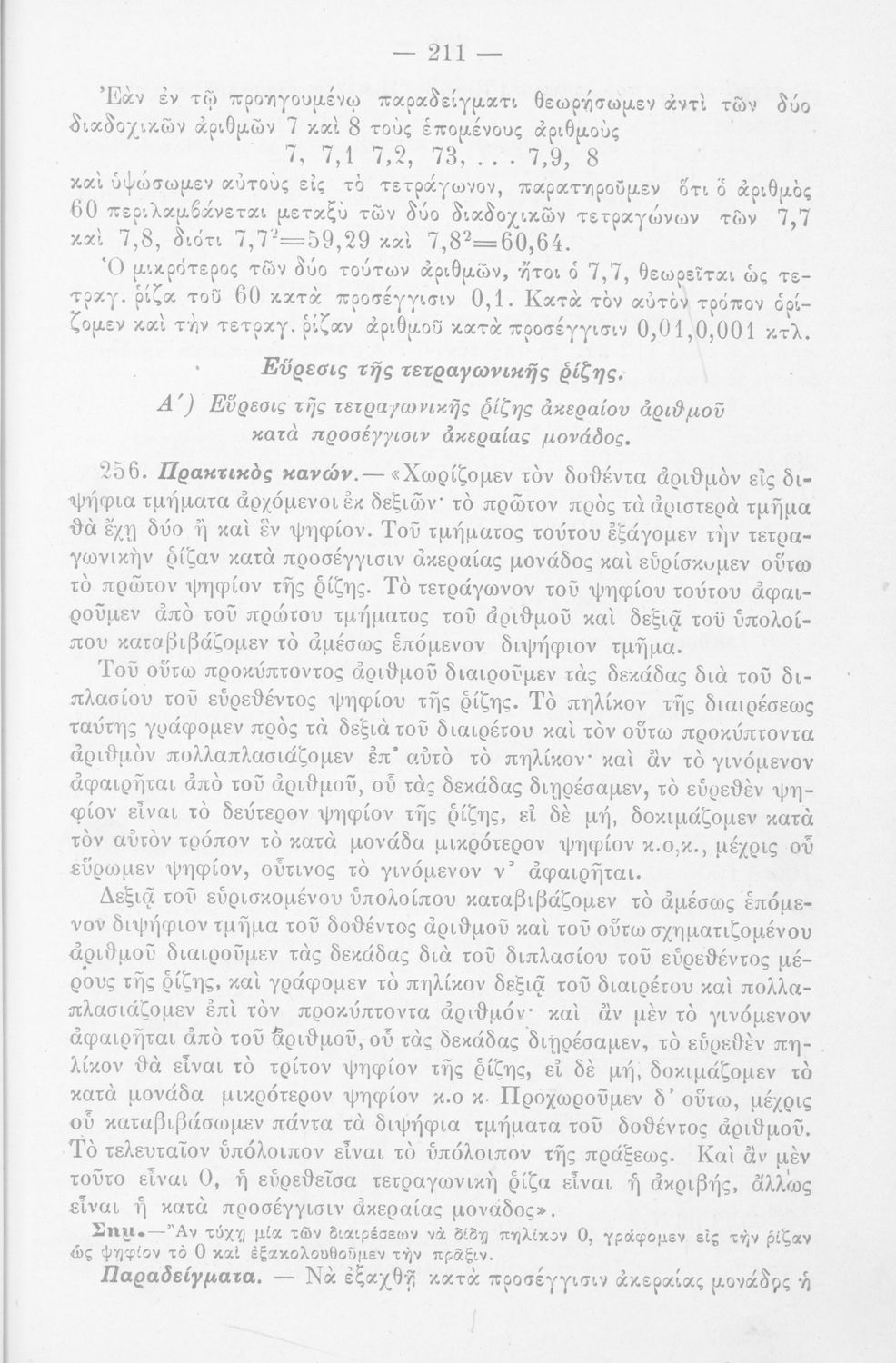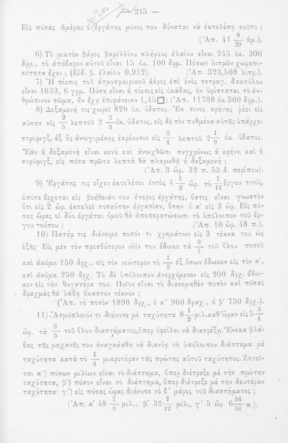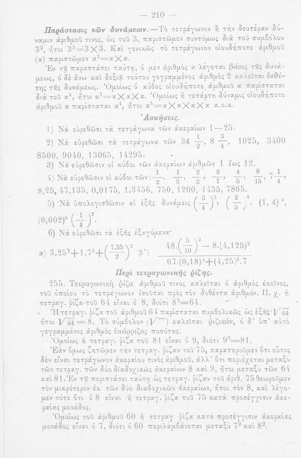 Σχολικό εγχειρίδιο Αριθμητικής για τα Ελληνικά και Αστικά Σχολεία και τα Παρθεναγωγεία που εστιάζει στις αριθμητικές πράξεις, τα κλάσματα, τους δεκαδικούς και συμμιγείς αριθμούς, και τις δυνάμεις. Περιέχει και