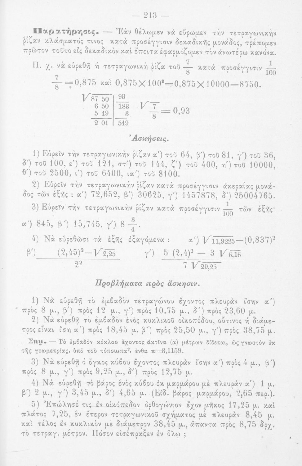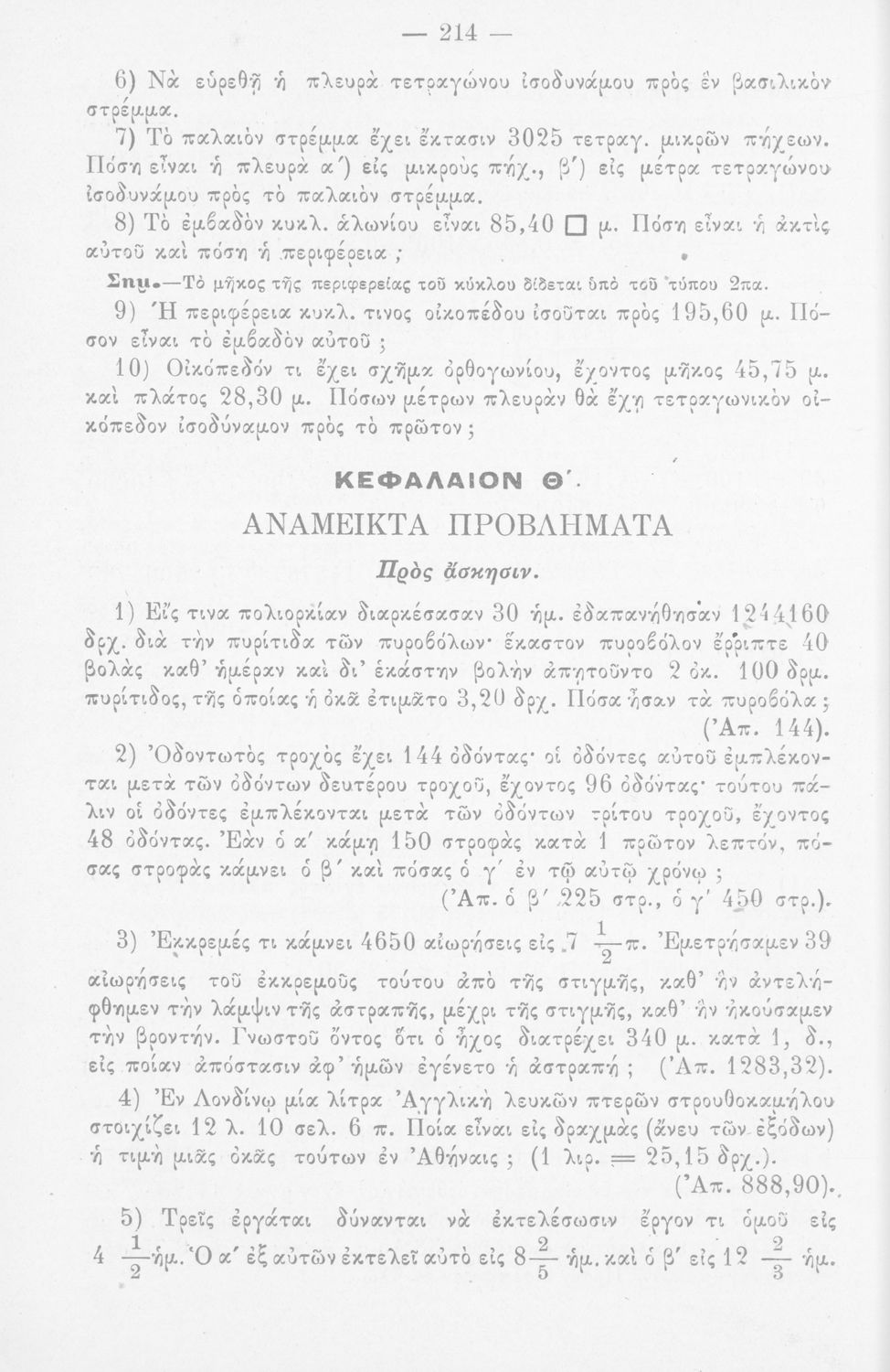 Σχολικό εγχειρίδιο Γεωμετρίας για την Α΄, Β΄ και Γ΄ τάξη των Ελληνικών και Αστικών Σχολείων και Παρθεναγωγείων που είναι χωρισμένο σε Επιπεδομετρία και Στερεομετρία και περιλαμβάνει θεωρία και ασκήσεις.