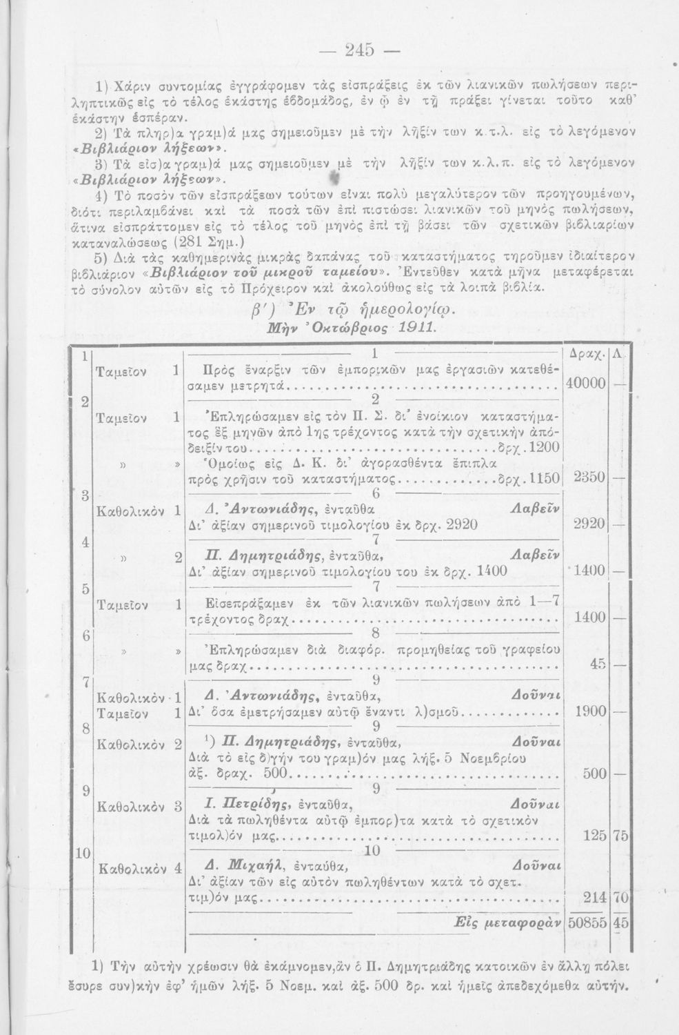 Βαθμίδα εκπαίδευσης: Δευτεροβάθμια Τάξη: Ελληνικό Σχολείο / Παρθεναγωγείο Μάθημα: Μαθηματικά Γλώσσα: Καθαρεύουσα Παρουσίαση περιεχομένου: Σχολικό εγχειρίδιο Αριθμητικής για τα Ελληνικά Σχολεία και Παρθεναγωγεία που περιέχει θεωρία και ασκήσεις και εστιάζει στις αριθμητικές πράξεις και τις ιδιότητές τους. Περιέχει και στοιχεία λογιστικής. |