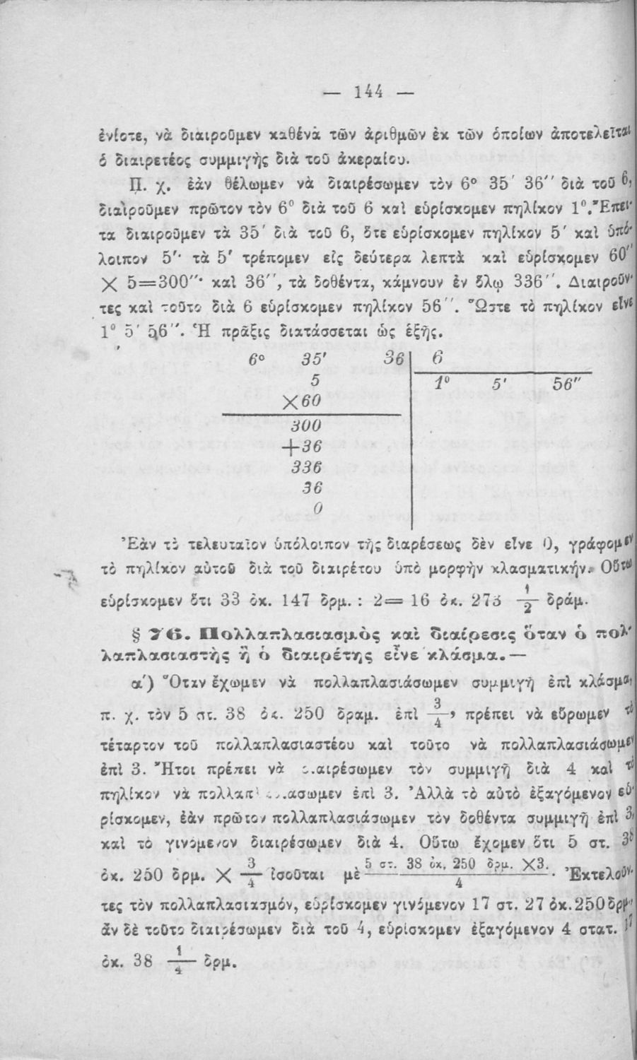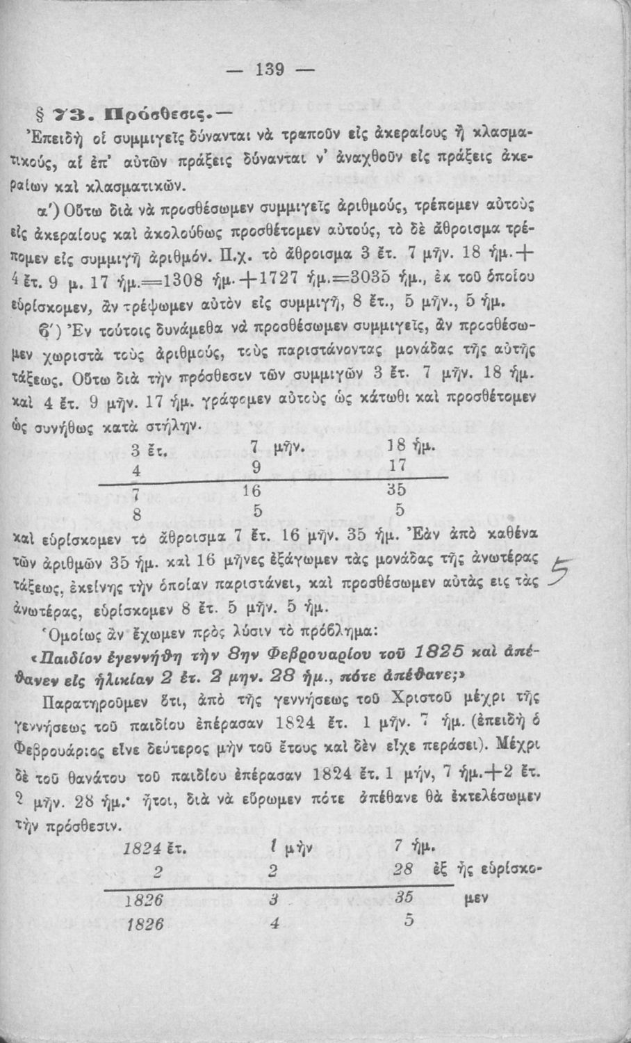Σχολικό εγχειρίδιο Αριθμητικής για τα Ελληνικά και Αστικά Σχολεία και τα Παρθεναγωγεία που εστιάζει στις αριθμητικές πράξεις, τα κλάσματα, τους δεκαδικούς και συμμιγείς αριθμούς, και τις δυνάμεις. Περιέχει και