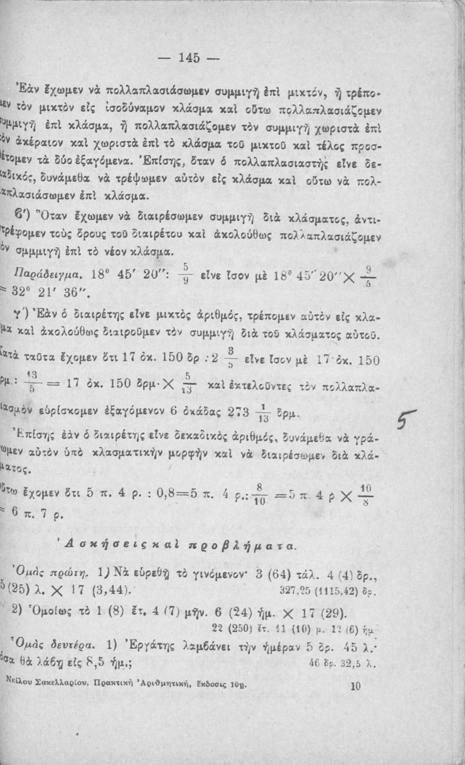Σχολικό εγχειρίδιο Αριθμητικής για τα Ελληνικά και Αστικά Σχολεία και τα Παρθεναγωγεία που εστιάζει στις αριθμητικές πράξεις, τα κλάσματα, τους δεκαδικούς και συμμιγείς αριθμούς, τα ανάλογα ποσά και τις ...