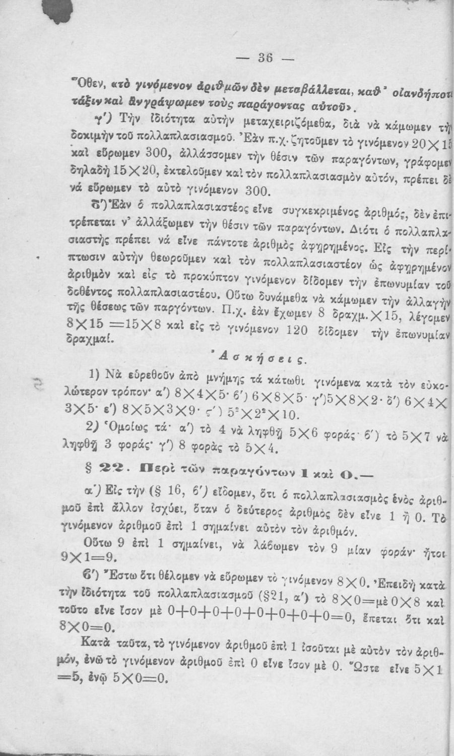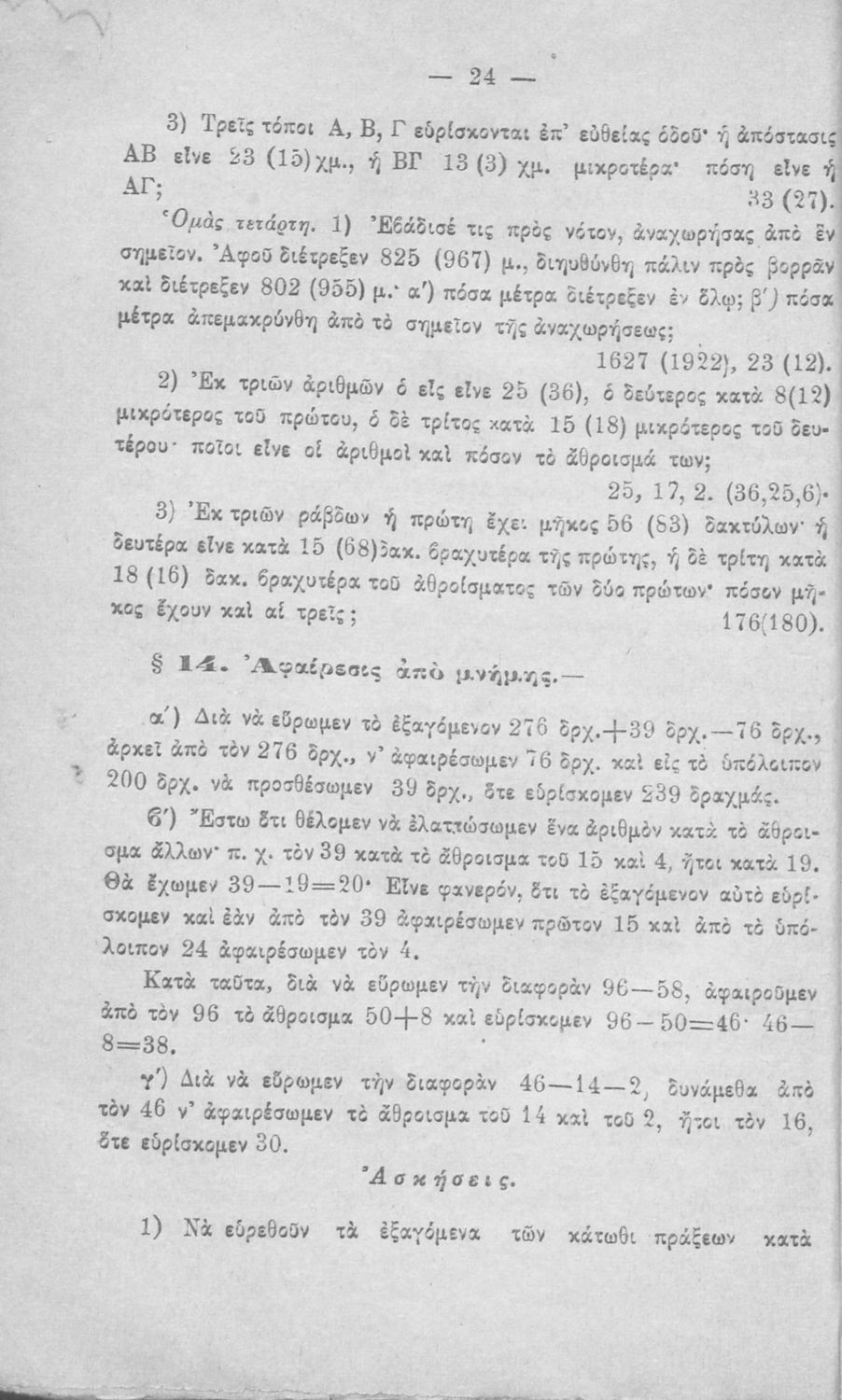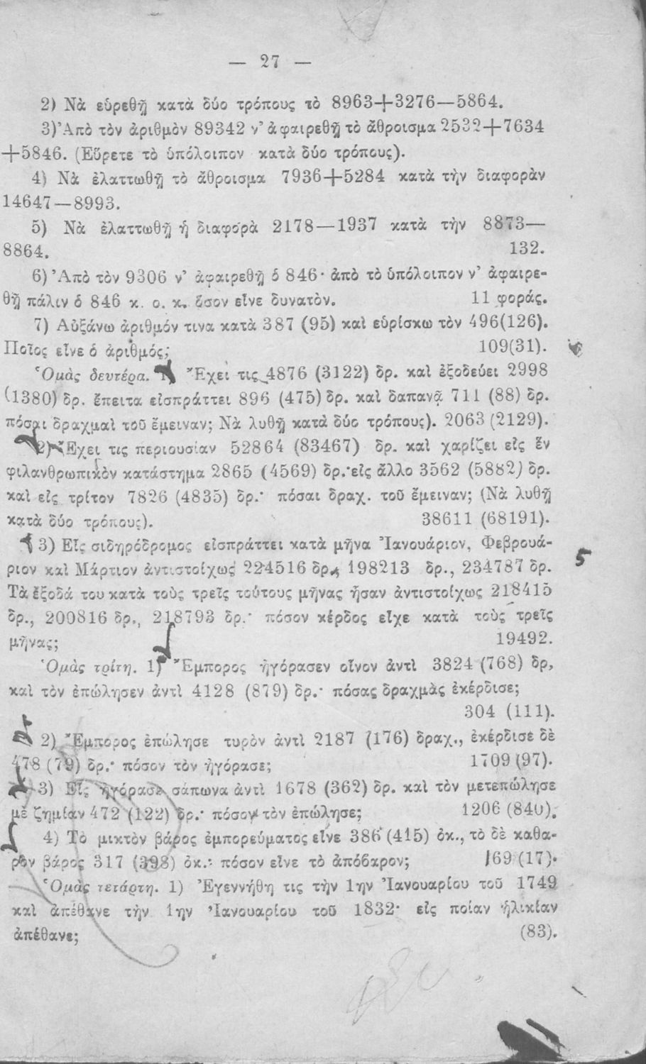 Σχολικό εγχειρίδιο Αριθμητικής για τα Ελληνικά και Αστικά Σχολεία και τα Παρθεναγωγεία που εστιάζει στις αριθμητικές πράξεις, τα κλάσματα, τους δεκαδικούς και συμμιγείς αριθμούς, και τις δυνάμεις. Περιέχει και