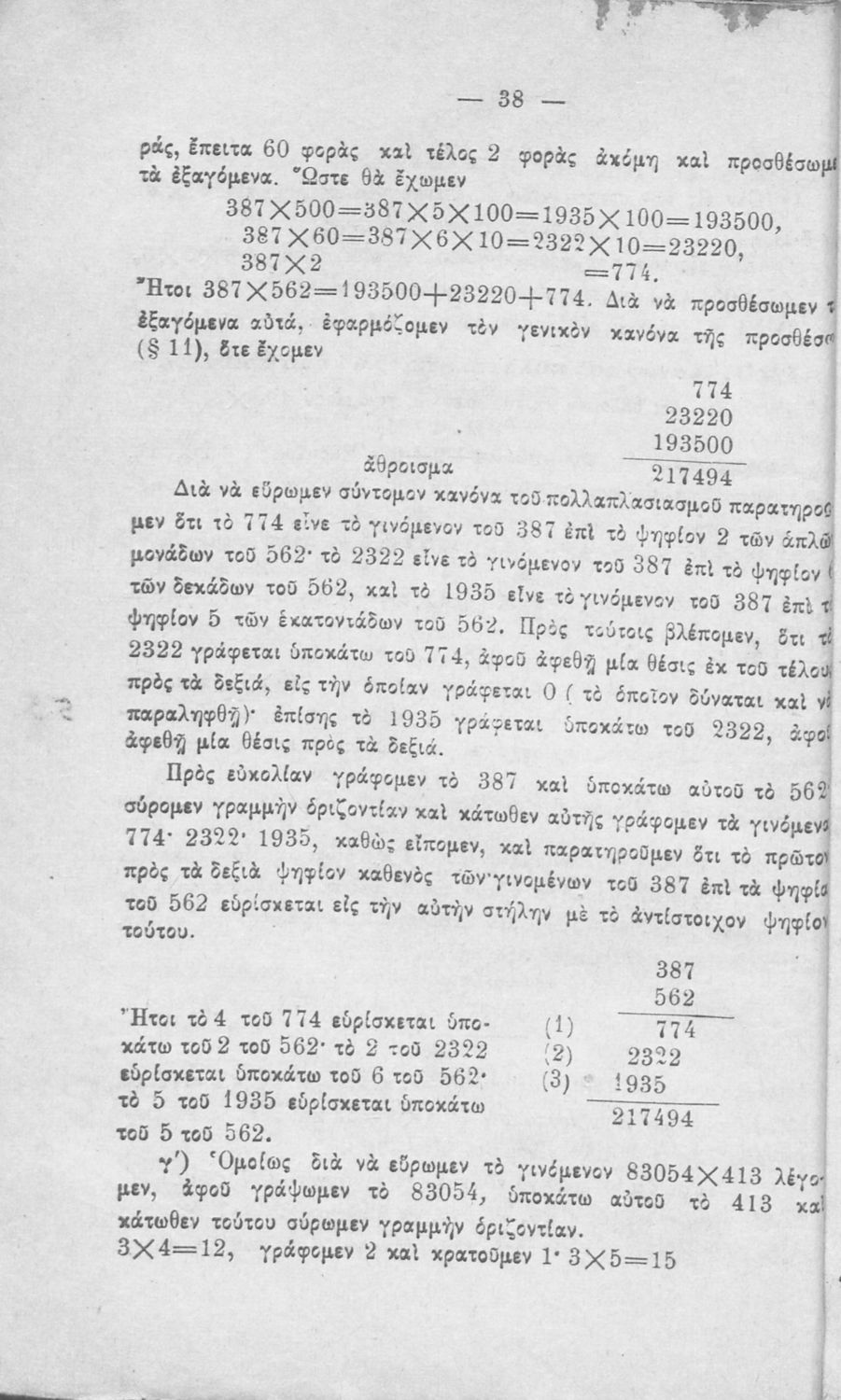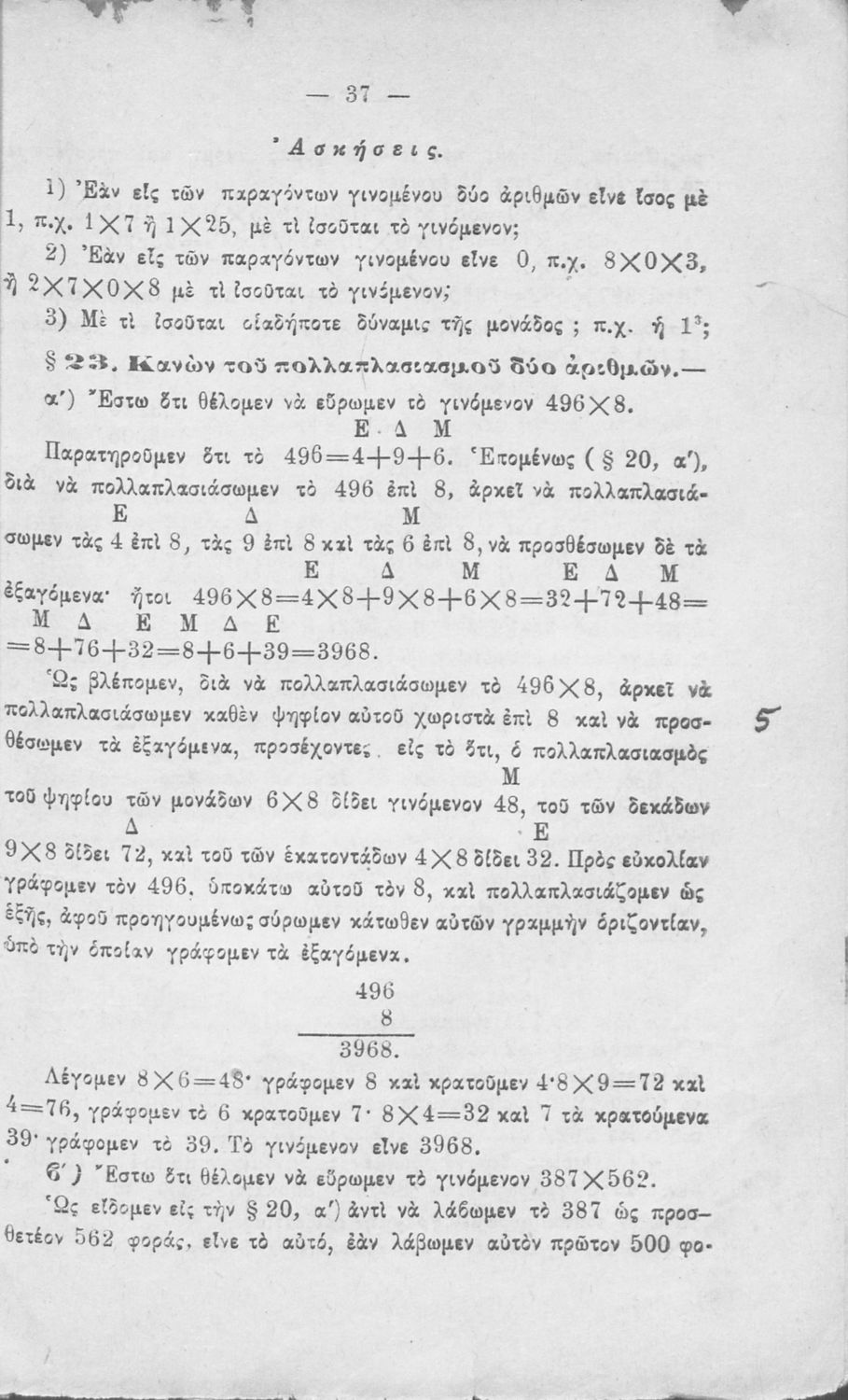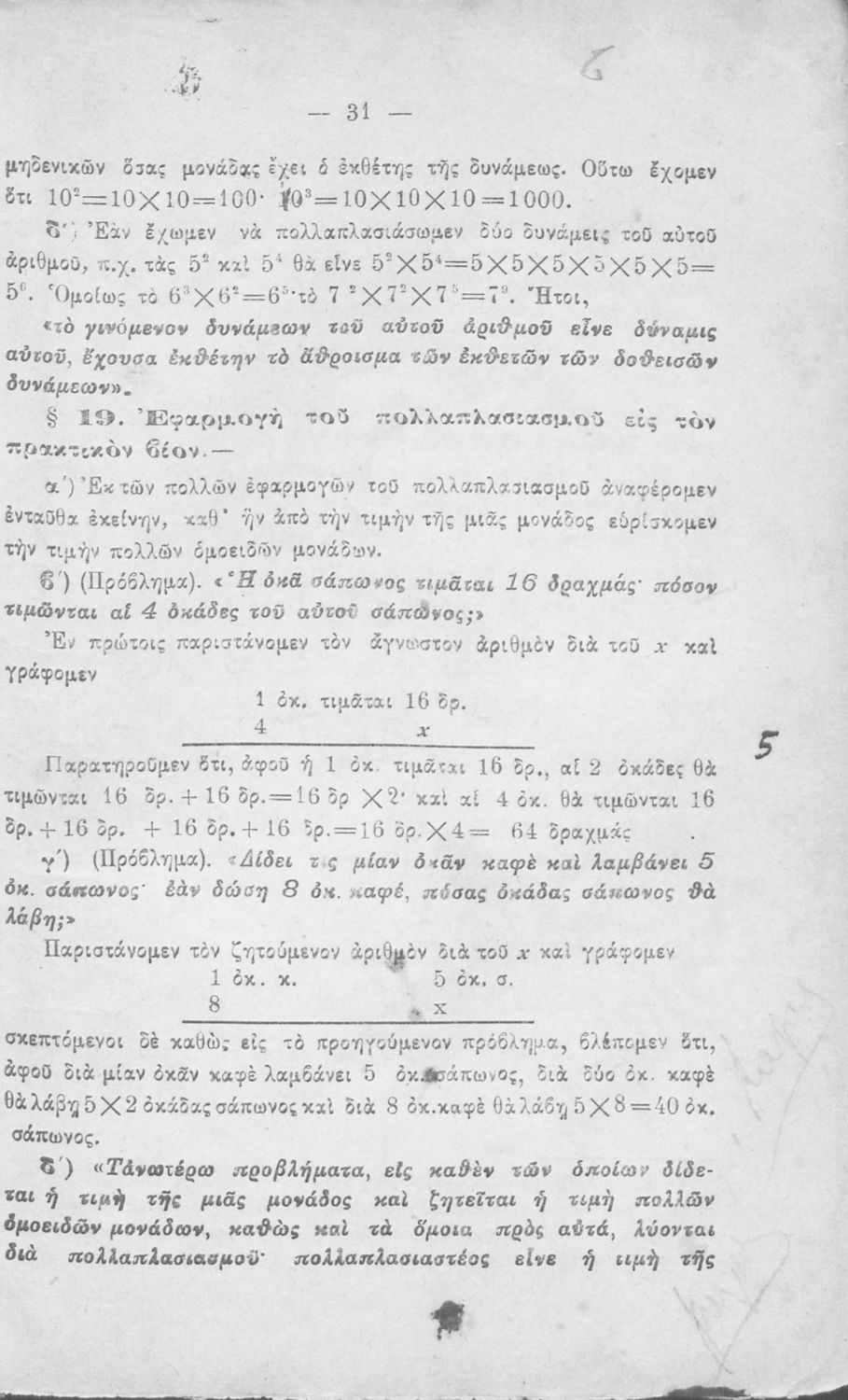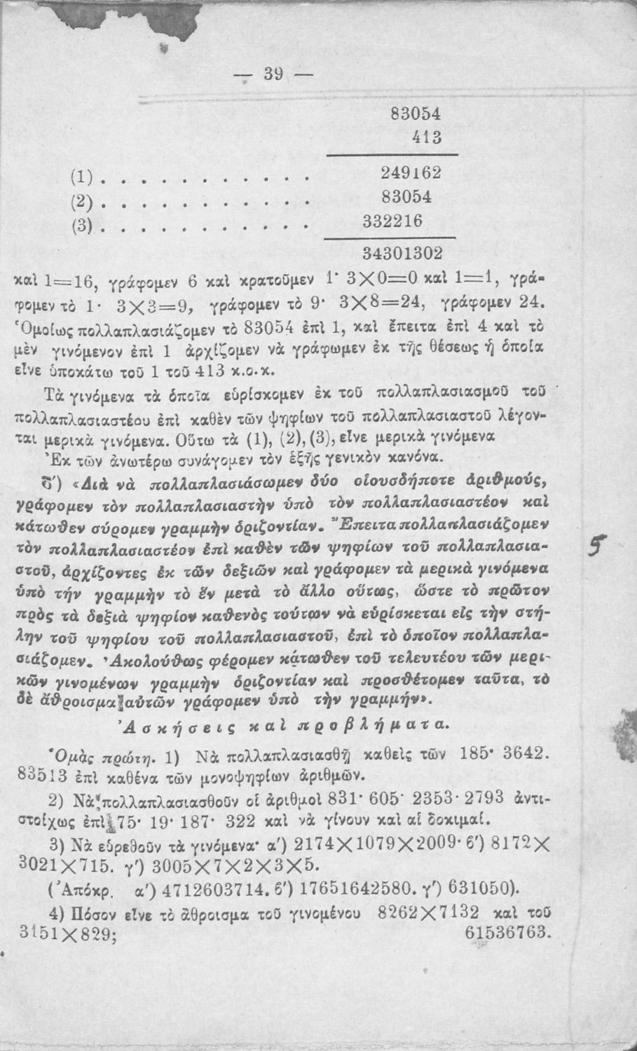Σχολικό εγχειρίδιο Αριθμητικής για τα Ελληνικά και Αστικά Σχολεία και τα Παρθεναγωγεία που εστιάζει στις αριθμητικές πράξεις, τα κλάσματα, τους δεκαδικούς και συμμιγείς αριθμούς, και τις δυνάμεις. Περιέχει και