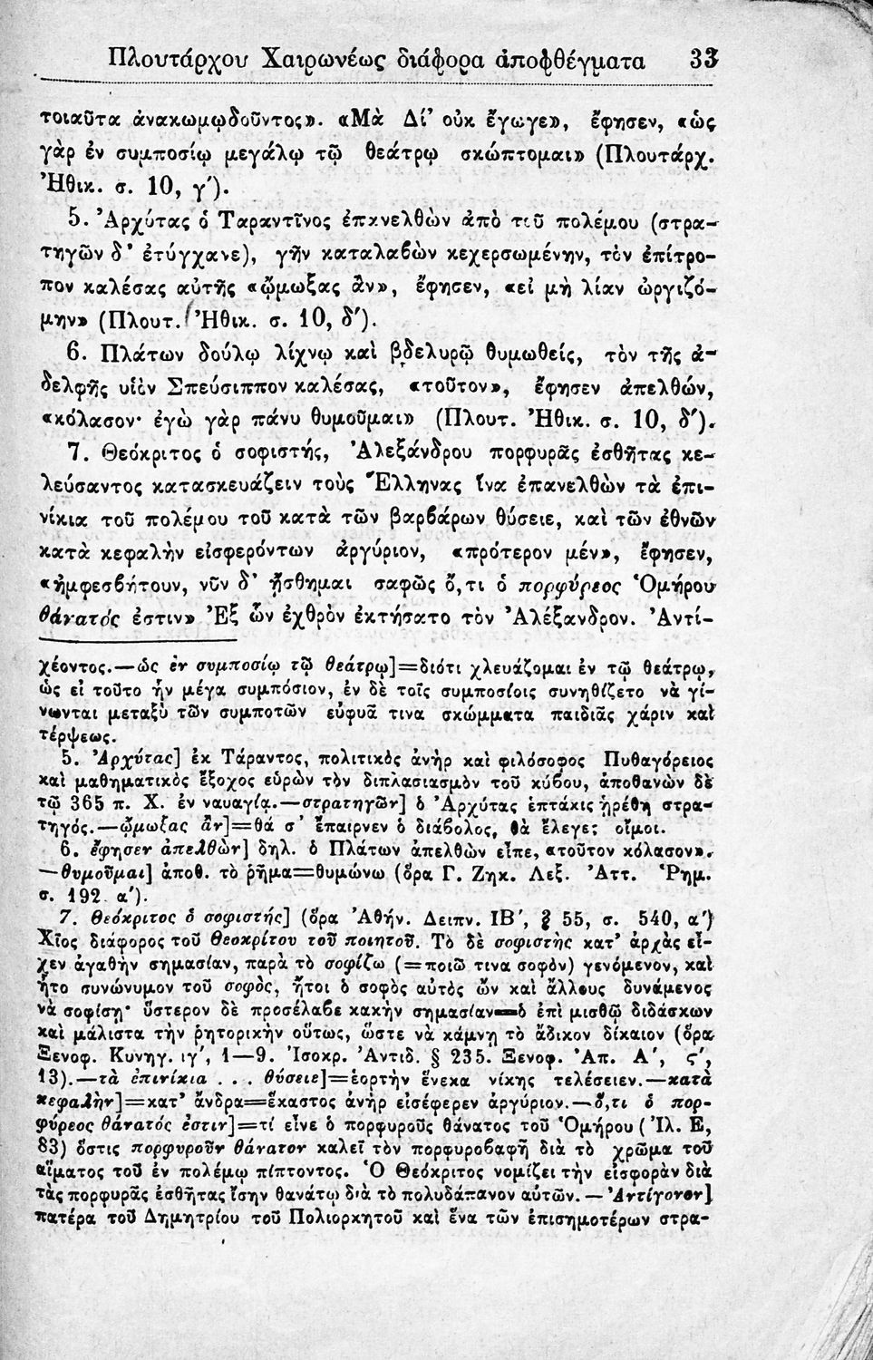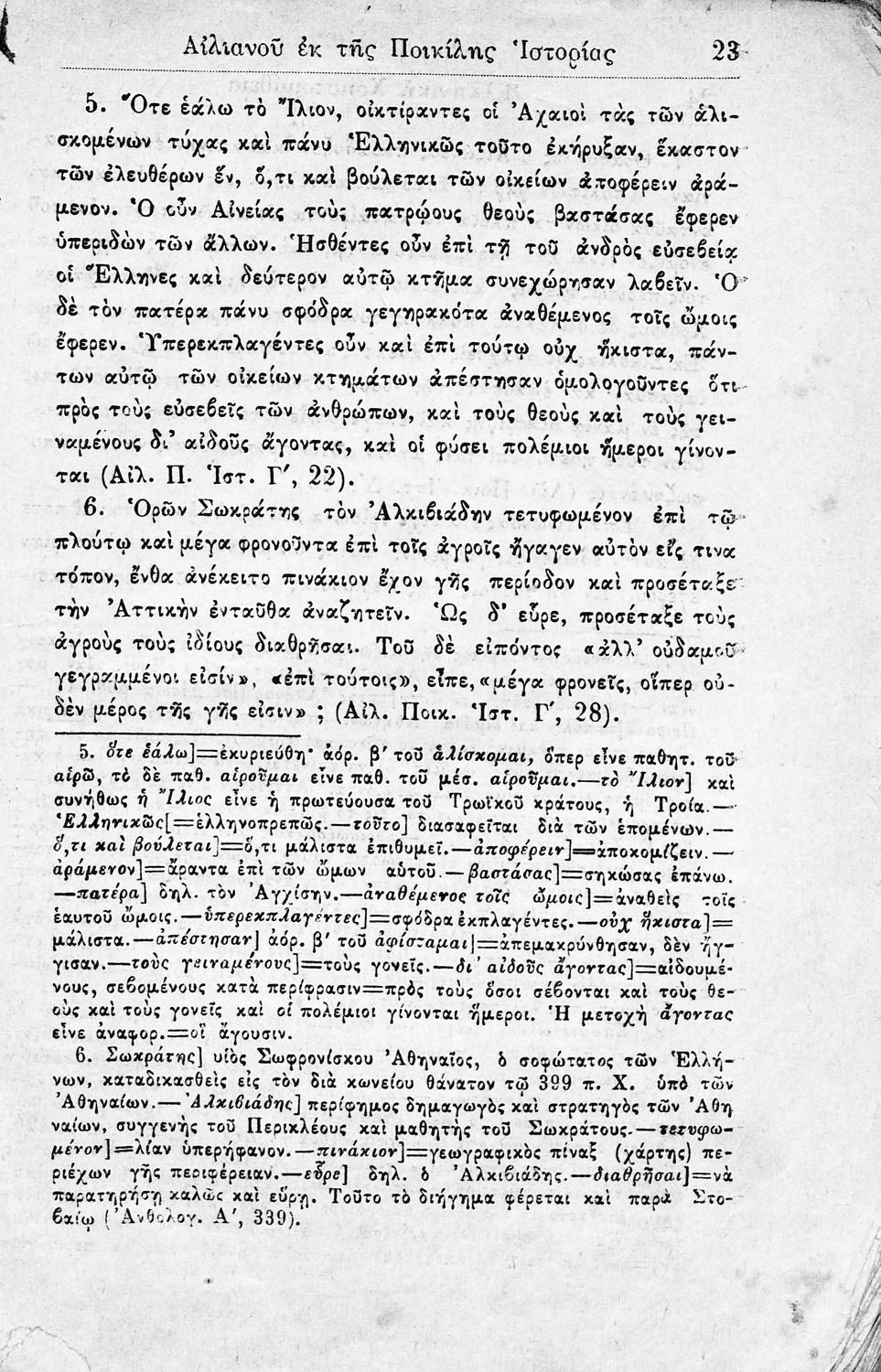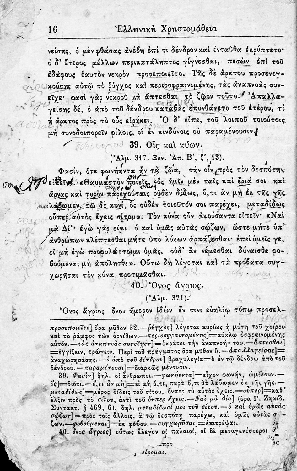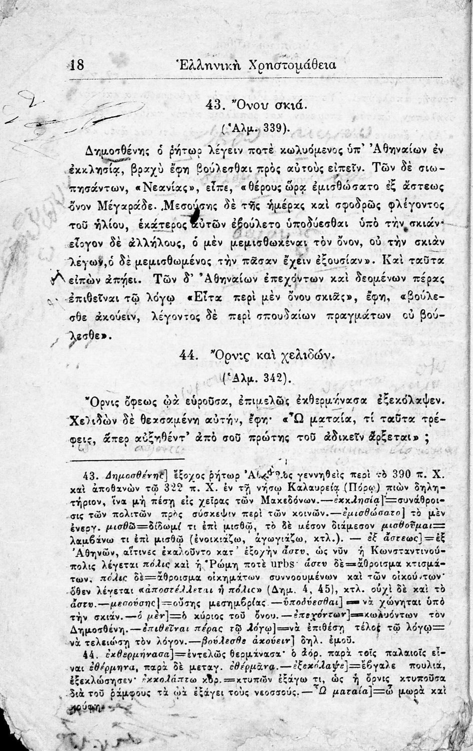 Σχολικό εγχειρίδιο Αρχαίων Ελληνικών για τα Ελληνικά Σχολεία και τα Γυμνάσια που περιλαμβάνει αποσπάσματα από έργα αρχαίων Ελλήνων συγγραφέων και ερμηνευτικές και πραγματολογικές σημειώσεις.