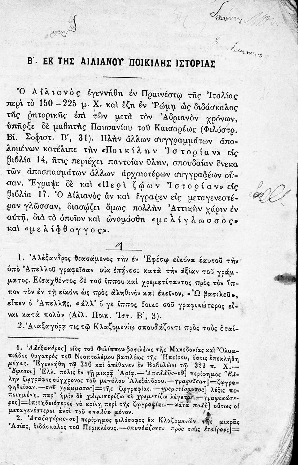 Τίτλος: Ελληνική χρηστομάθεια μετά ερμηνευτικών, ιστορικών, γεωγραφικών κ.τ.λ. σχολίων προς χρήσιν των Ελληνικών Σχολείων και Παρθεναγωγείων Τόμος Α΄