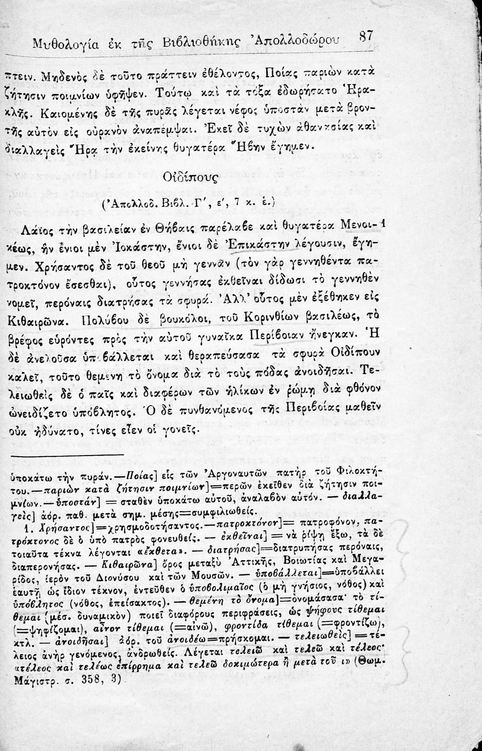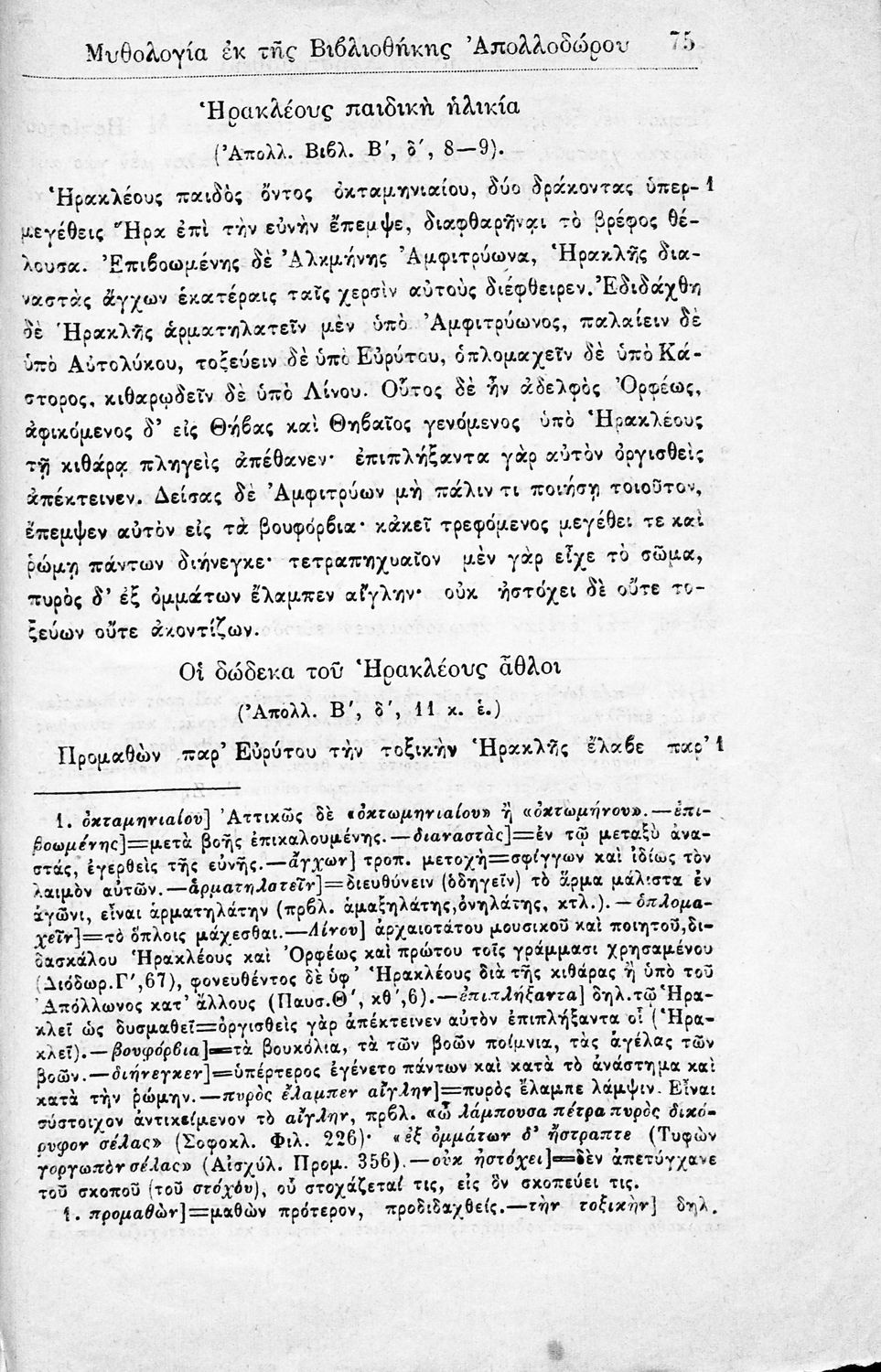 Σχολικό εγχειρίδιο Αρχαίων Ελληνικών για τα Ελληνικά Σχολεία και τα Γυμνάσια που περιλαμβάνει αποσπάσματα από έργα αρχαίων Ελλήνων συγγραφέων και ερμηνευτικές και πραγματολογικές σημειώσεις.
