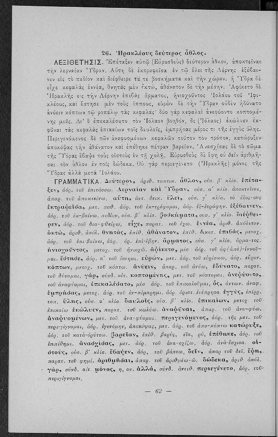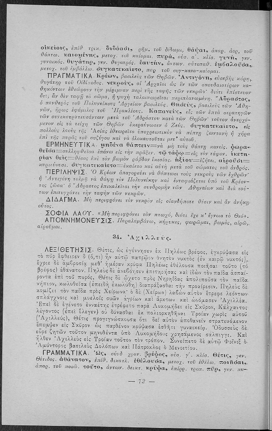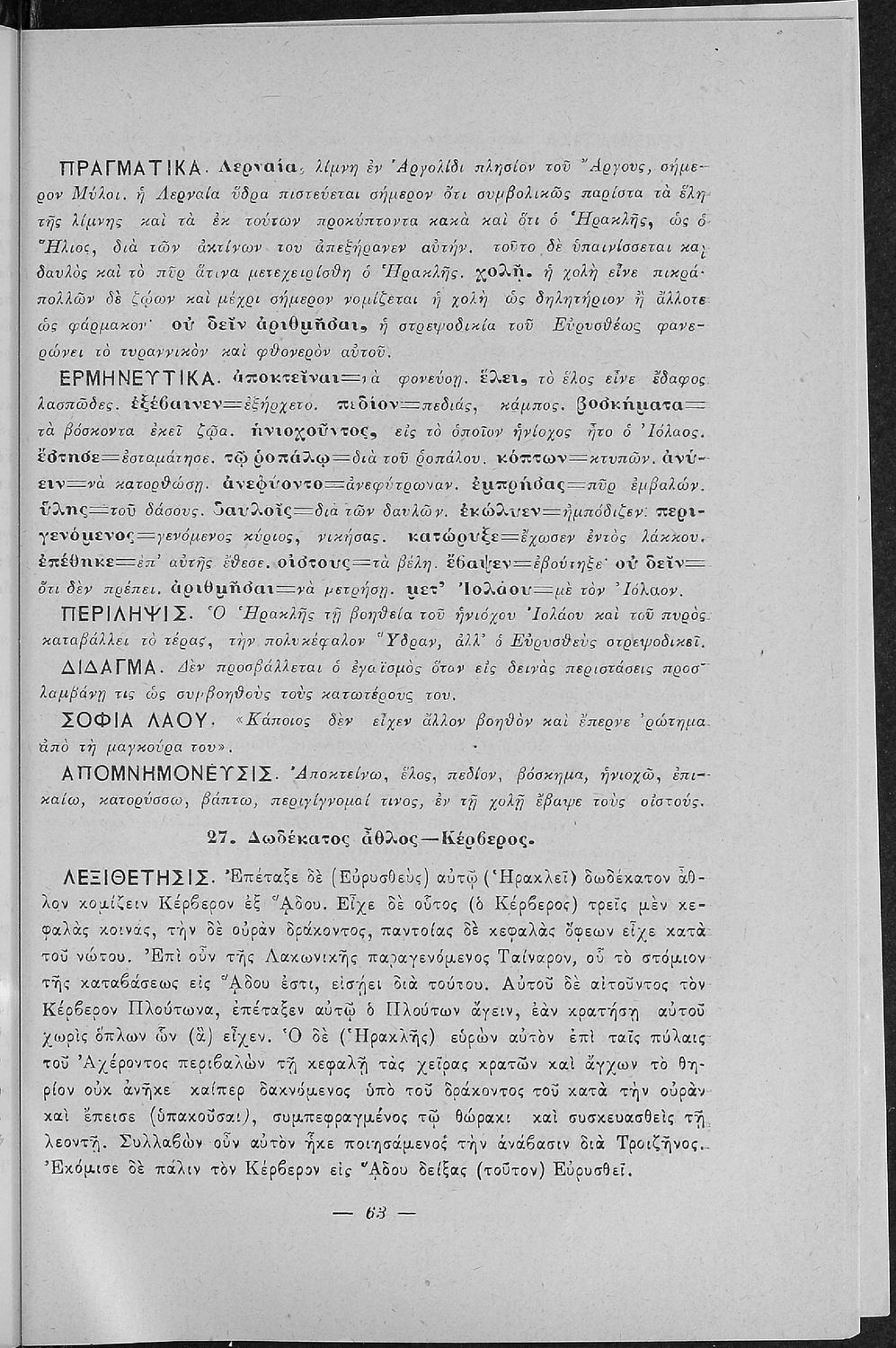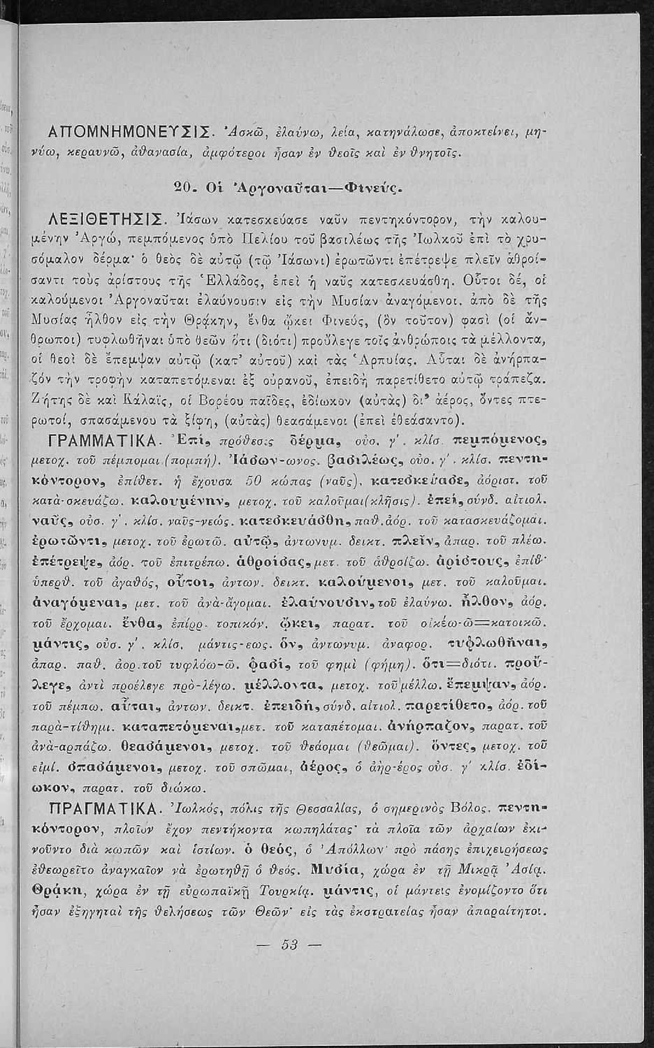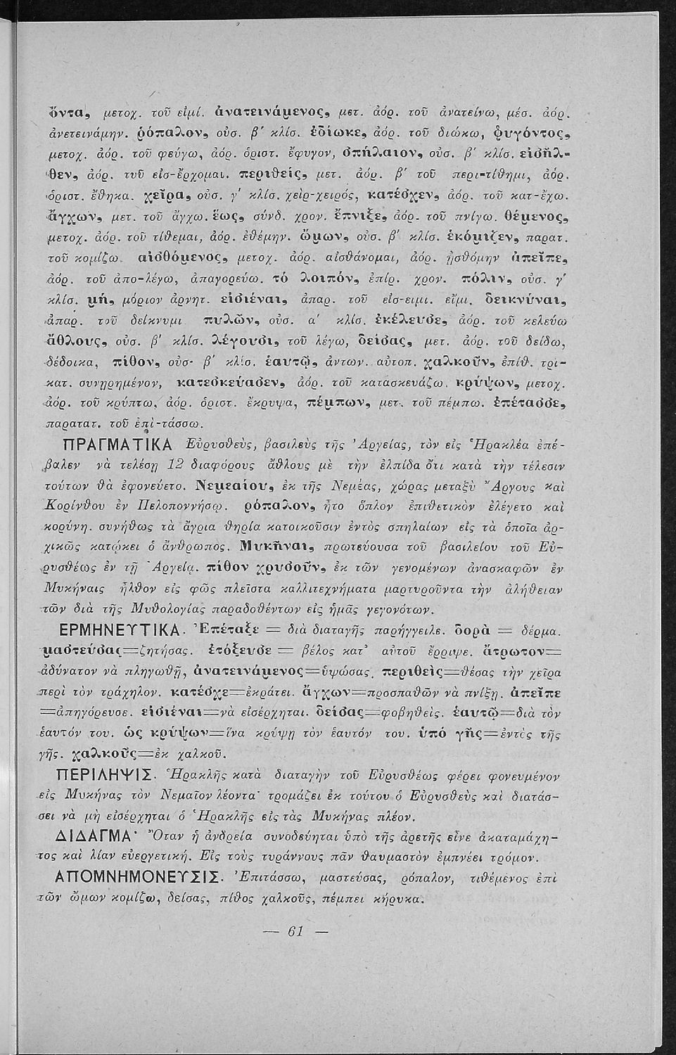 Σχολικό εγχειρίδιο Αρχαίων Ελληνικών για τις Α' Ελληνικού Σχολείου και Παρθεναγωγείου και την Ε΄ Δημοτικού που περιέχει κείμενα στην αρχαία ελληνική εμπνευσμένα από την ελληνική μυθολογία, και γραμματικές, πραγματολογικές και ερμηνευτικές σημειώσεις. Περιλαμβάνει προεισαγωγικές ασκήσεις για να κατανοήσει ο μαθητής την σχέση και τη διαφορά μεταξύ της αρχαίας και νέας ελληνικής. Κάθε κείμενο περιλαμβάνει την περίληψη του στην καθαρεύουσα και ένα δίδαγμα.