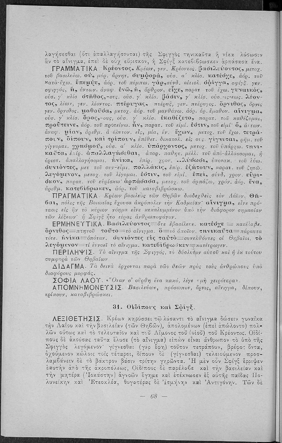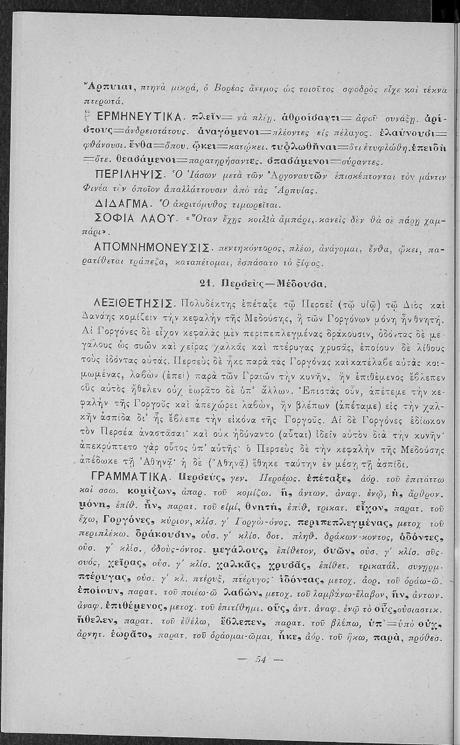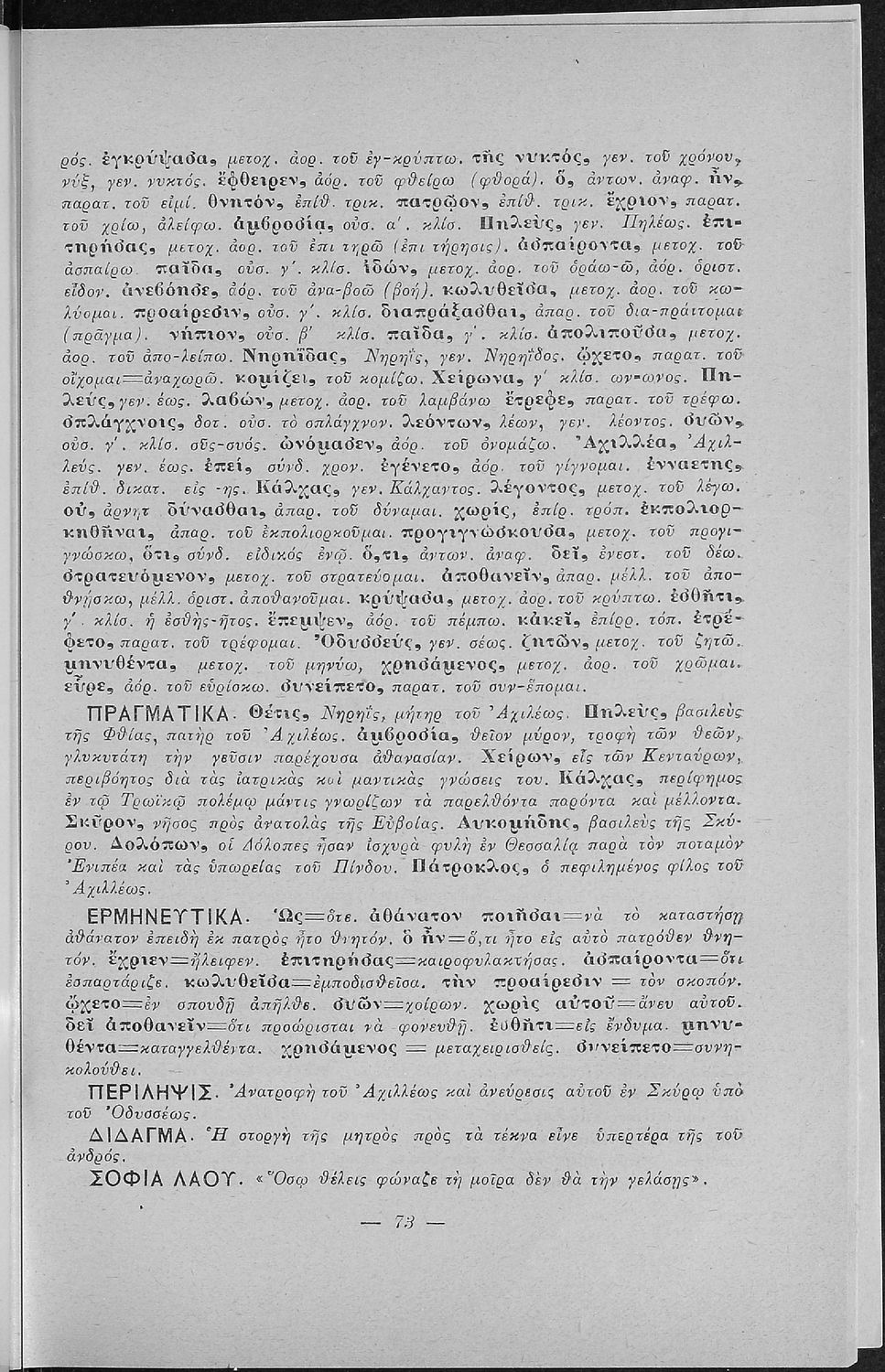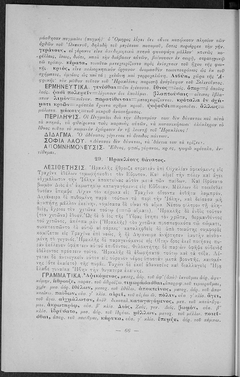 Σχολικό εγχειρίδιο Αρχαίων Ελληνικών για τις Α' Ελληνικού Σχολείου και Παρθεναγωγείου και την Ε΄ Δημοτικού που περιέχει κείμενα στην αρχαία ελληνική εμπνευσμένα από την ελληνική μυθολογία, και γραμματικές, πραγματολογικές και ερμηνευτικές σημειώσεις. Περιλαμβάνει προεισαγωγικές ασκήσεις για να κατανοήσει ο μαθητής την σχέση και τη διαφορά μεταξύ της αρχαίας και νέας ελληνικής. Κάθε κείμενο περιλαμβάνει την περίληψη του στην καθαρεύουσα και ένα δίδαγμα.