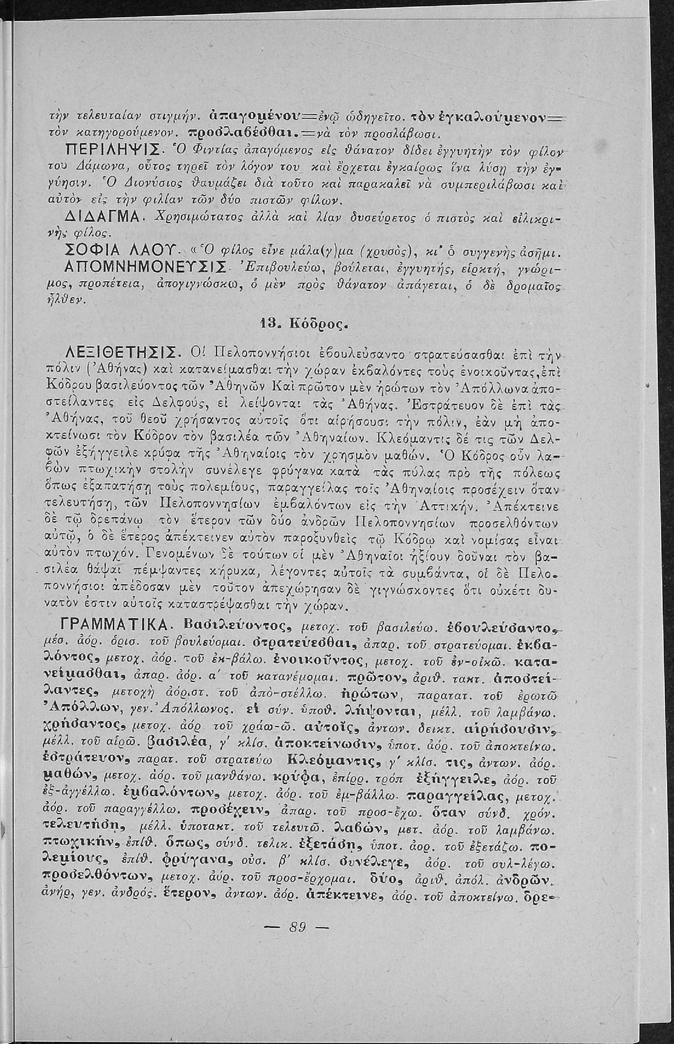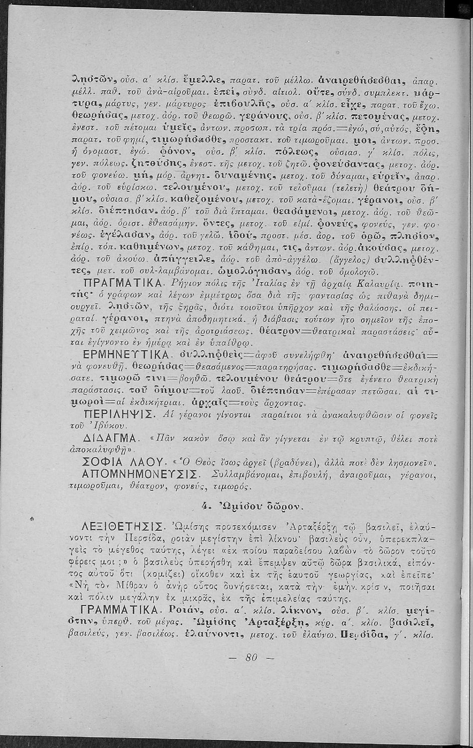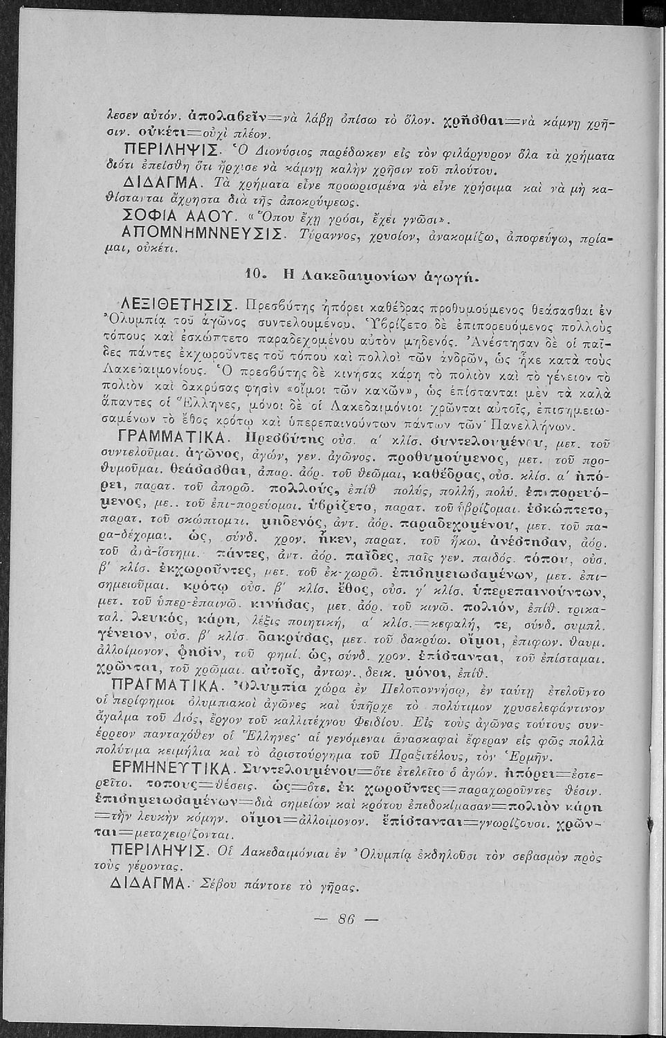 Σχολικό εγχειρίδιο Αρχαίων Ελληνικών για τις Α' Ελληνικού Σχολείου και Παρθεναγωγείου και την Ε΄ Δημοτικού που περιέχει κείμενα στην αρχαία ελληνική εμπνευσμένα από την ελληνική μυθολογία, και γραμματικές, πραγματολογικές και ερμηνευτικές σημειώσεις. Περιλαμβάνει προεισαγωγικές ασκήσεις για να κατανοήσει ο μαθητής την σχέση και τη διαφορά μεταξύ της αρχαίας και νέας ελληνικής. Κάθε κείμενο περιλαμβάνει την περίληψη του στην καθαρεύουσα και ένα δίδαγμα.