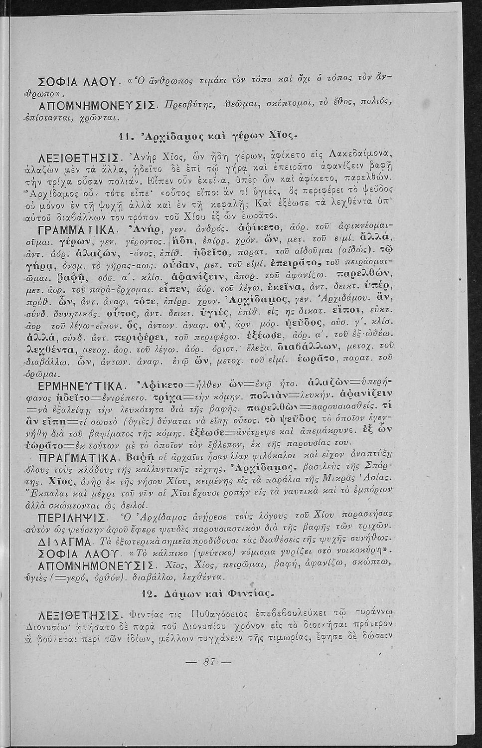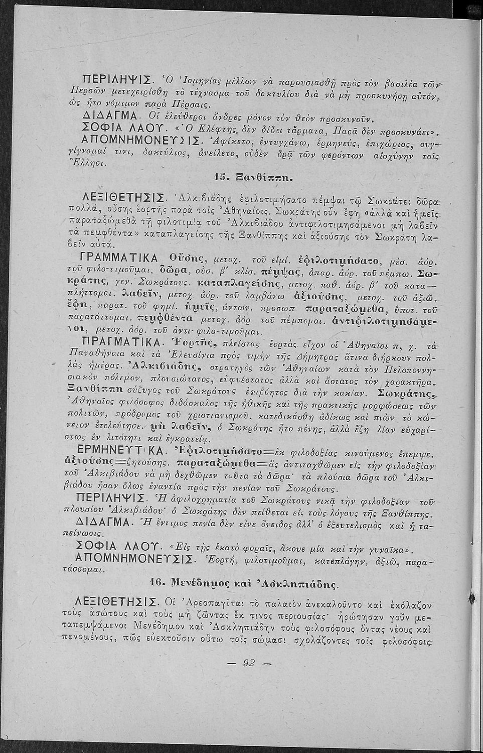 LDR 01873 2200193 4500 035 ## _a01-18471 040 ## _aΙνστιτούτο Εκπαιδευτικής Πολιτικής 041 ## _ael 100 ## _aΙωάννης Ν. Πρωτόπαπας 110 ## _a18471 245 0# _aΕλληνική Χρηστομάθεια δια την πρώτην τάξιν των Ελληνικών Σχολείων, την Ισόβαθμον των Παρθεναγωγείων και την Ε΄ τάξιν των πλήρων Δημοτικών Σχολείων 260 ## _aΑθήνα _bΔ. Δημητράκου _c1909 300 ## _a104 _bΕικόνες (ασπρόμαυρες), Σκίτσα (ασπρόμαυρα) _c21 520 ## _aΣχολικό εγχειρίδιο Αρχαίων Ελληνικών για τις Α' Ελληνικού Σχολείου και Παρθεναγωγείου και την Ε΄ Δημοτικού που περιέχει κείμενα στην αρχαία ελληνική εμπνευσμένα από την ελληνική μυθολογία, και γραμματικές, πραγματολογικές και ερμηνευτικές σημειώσεις. Περιλαμβάνει προεισαγωγικές ασκήσεις για να κατανοήσει ο μαθητής την σχέση και τη διαφορά μεταξύ της αρχαίας και νέας ελληνικής. Κάθε κείμενο περιλαμβάνει την περίληψη του στην καθαρεύουσα και ένα δίδαγμα. 521 ## _aΑ΄ Ελληνικού Σχολείου / Παρθεναγωγείο / Ε' Δημοτικού 522 ## _aΕλλάδα 546 ## _aΚαθαρεύουσα 563 ## _aΣκληρό Εξώφυλλο 650 #4 _aΑποφθέγματα _aΔιηγήματα _aΜύθοι Αισώπου _aΜυθολογία