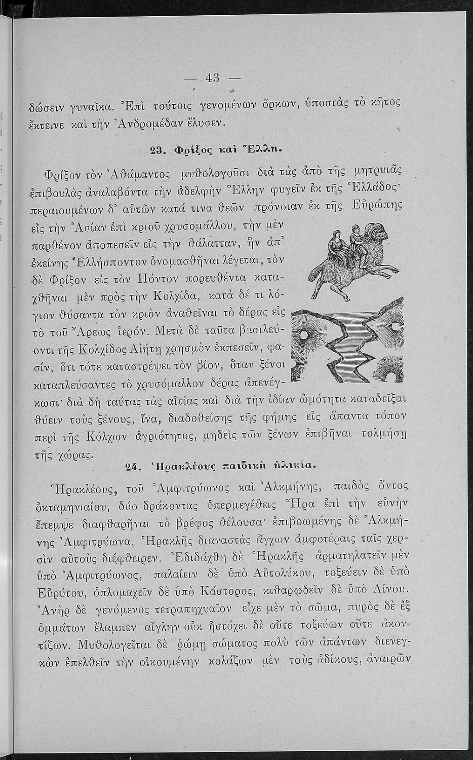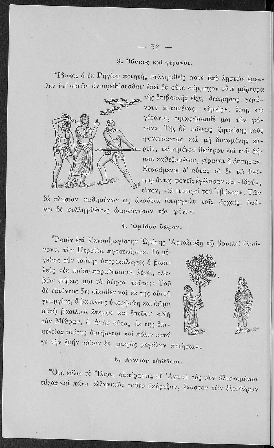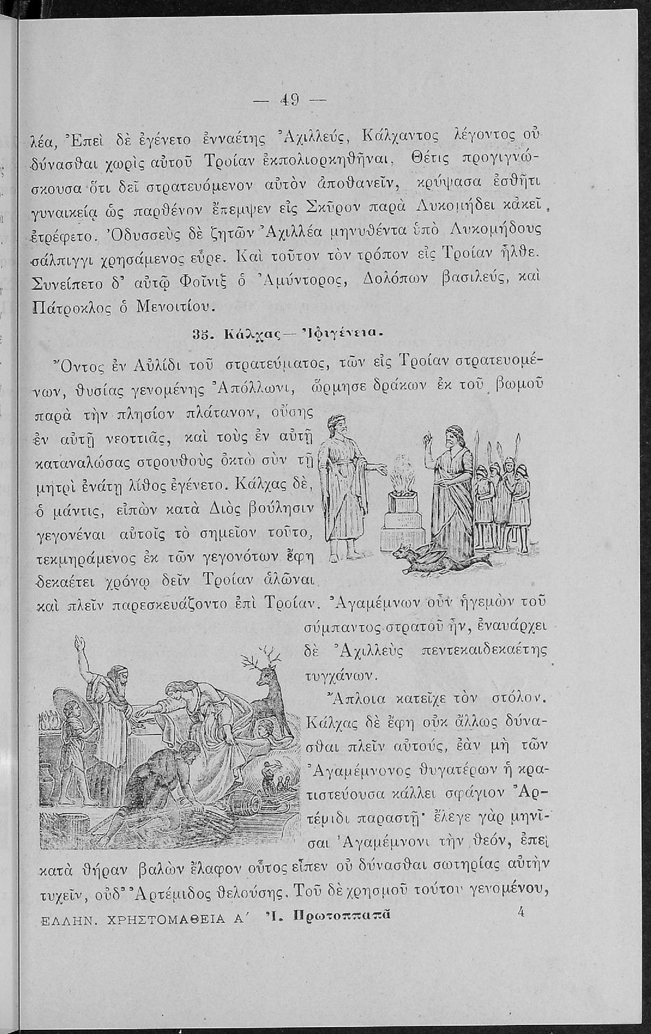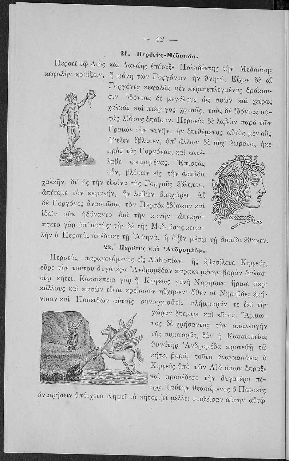 Σχολικό εγχειρίδιο Αρχαίων Ελληνικών για τις Α' Ελληνικού Σχολείου και Παρθεναγωγείου και την Ε΄ Δημοτικού που περιέχει κείμενα στην αρχαία ελληνική εμπνευσμένα από την ελληνική μυθολογία, και γραμματικές, πραγματολογικές και ερμηνευτικές σημειώσεις. Περιλαμβάνει προεισαγωγικές ασκήσεις για να κατανοήσει ο μαθητής την σχέση και τη διαφορά μεταξύ της αρχαίας και νέας ελληνικής. Κάθε κείμενο περιλαμβάνει την περίληψη του στην καθαρεύουσα και ένα δίδαγμα.