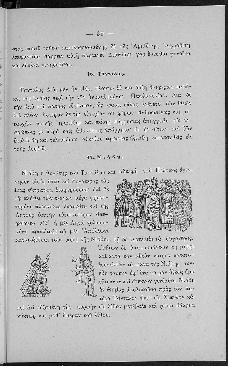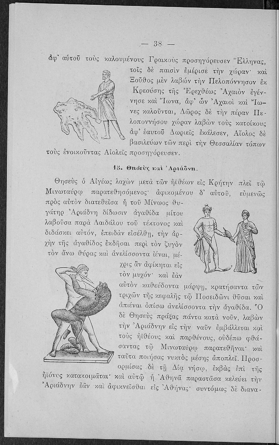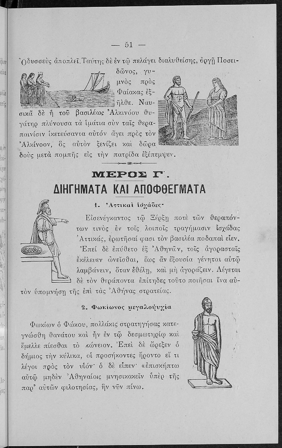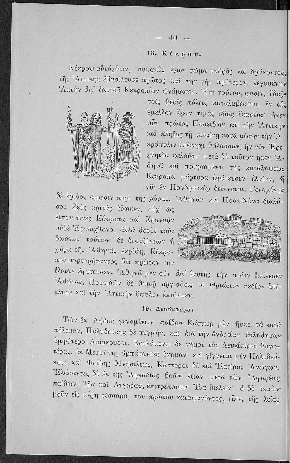 Σχολικό εγχειρίδιο Αρχαίων Ελληνικών για τις Α' Ελληνικού Σχολείου και Παρθεναγωγείου και την Ε΄ Δημοτικού που περιέχει κείμενα στην αρχαία ελληνική εμπνευσμένα από την ελληνική μυθολογία, και γραμματικές, πραγματολογικές και ερμηνευτικές σημειώσεις. Περιλαμβάνει προεισαγωγικές ασκήσεις για να κατανοήσει ο μαθητής την σχέση και τη διαφορά μεταξύ της αρχαίας και νέας ελληνικής. Κάθε κείμενο περιλαμβάνει την περίληψη του στην καθαρεύουσα και ένα δίδαγμα.