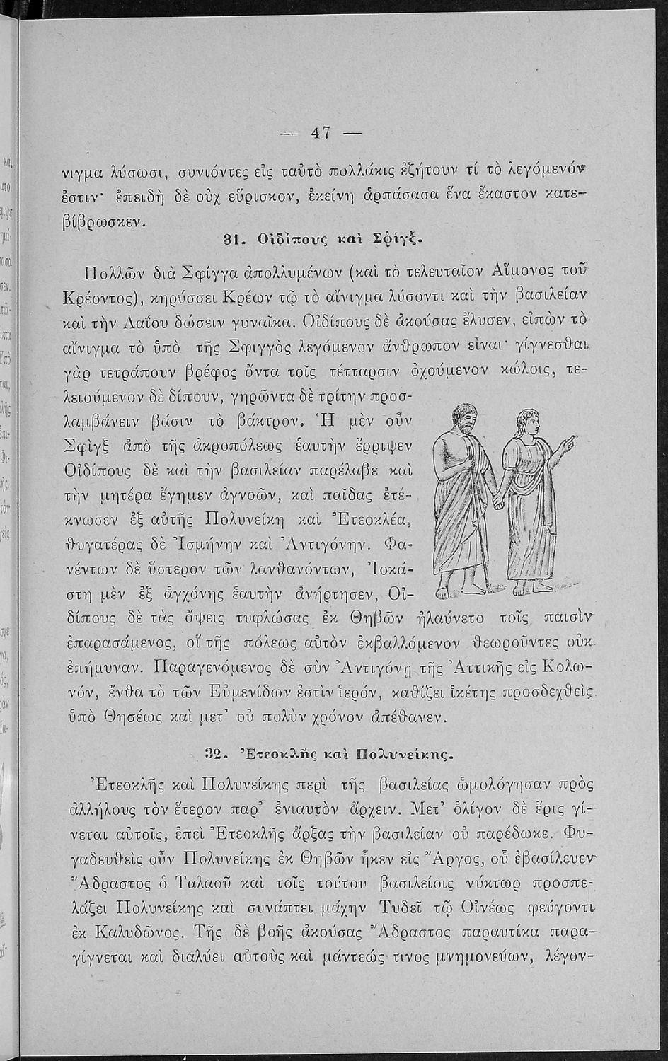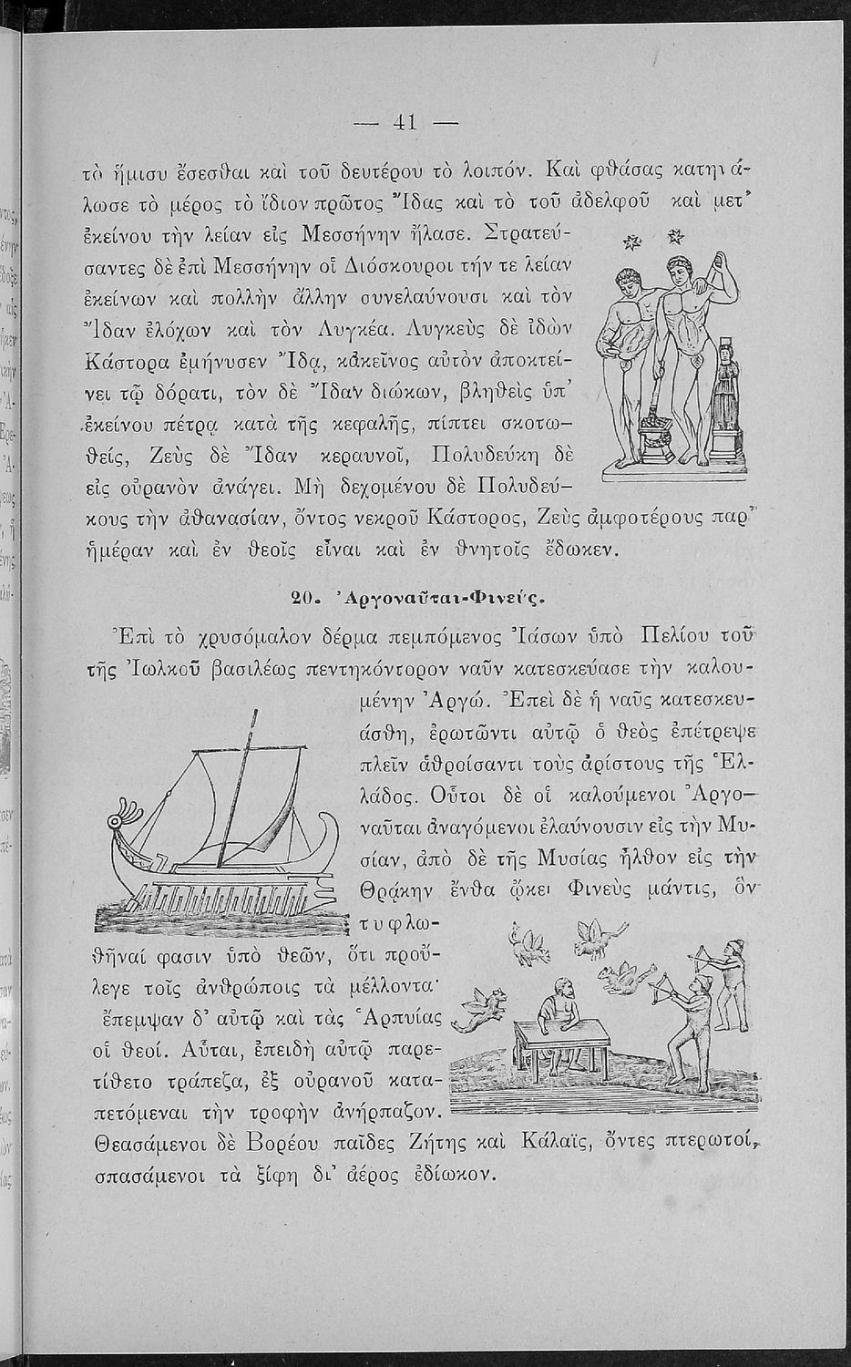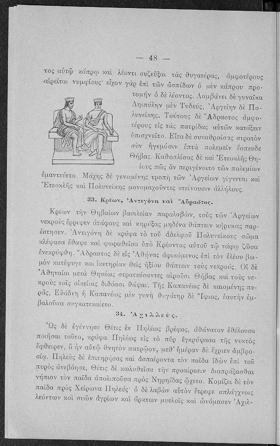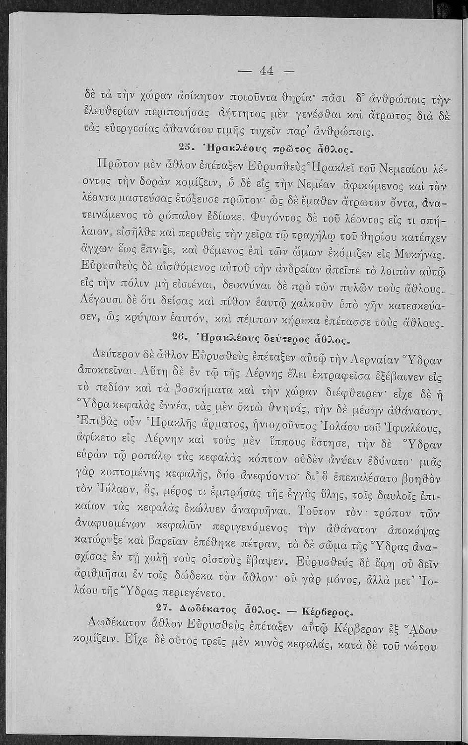 Σχολικό εγχειρίδιο Αρχαίων Ελληνικών για τις Α' Ελληνικού Σχολείου και Παρθεναγωγείου και την Ε΄ Δημοτικού που περιέχει κείμενα στην αρχαία ελληνική εμπνευσμένα από την ελληνική μυθολογία, και γραμματικές, πραγματολογικές και ερμηνευτικές σημειώσεις. Περιλαμβάνει προεισαγωγικές ασκήσεις για να κατανοήσει ο μαθητής την σχέση και τη διαφορά μεταξύ της αρχαίας και νέας ελληνικής. Κάθε κείμενο περιλαμβάνει την περίληψη του στην καθαρεύουσα και ένα δίδαγμα.